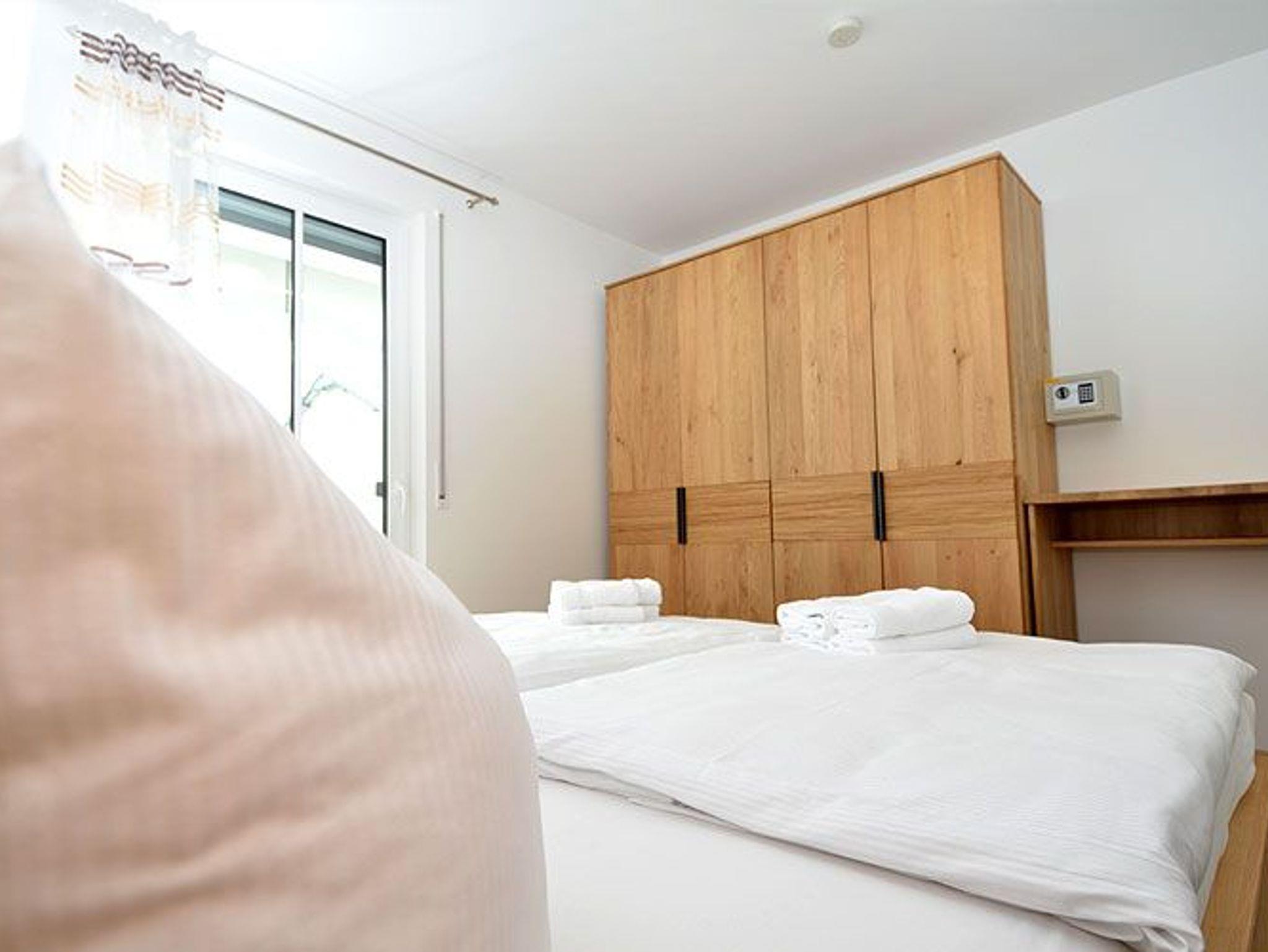 Im Schlafzimmer finden Sie ein großes komfortables Doppelbett (1,80 x 2,00 m) für einen erholsamen Schlaf sowie einen geräumigen Kleiderschrank für Ihre Urlaubsgarderobe, einen Safe für Ihre Wertsachen und einen weiteren Fernseher vor.