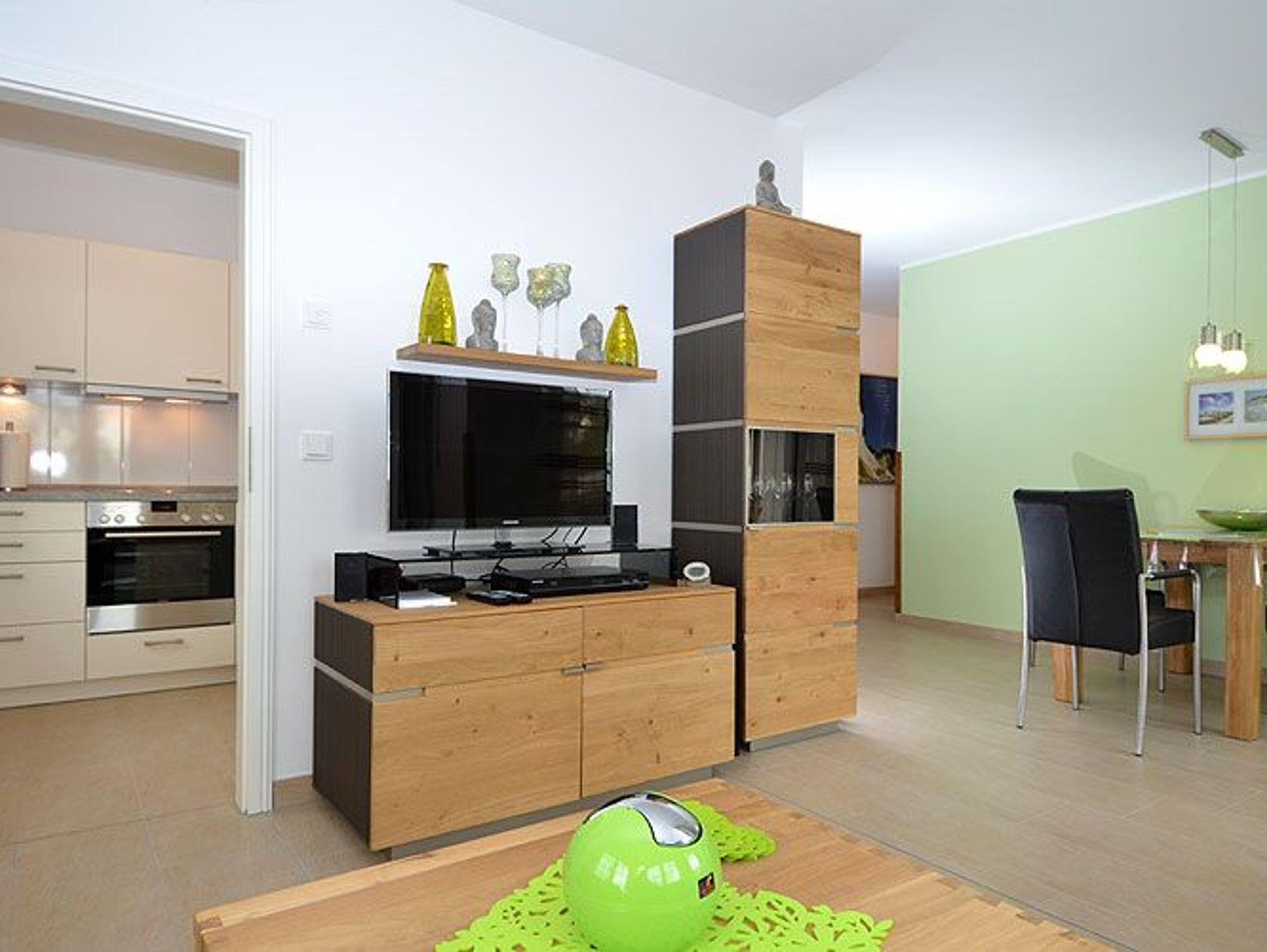 Vom Eingangsbereich gelangen Sie durch die großzügige Diele in den modern eingerichteten Wohn- und Essbereich, der mit einem LED-Fernseher, einer Heimkinoanlage mit DVD-Player, Blu-Ray-Player, CD und Radio ausgestattet ist. W-LAN ist kostenfrei verfügbar.