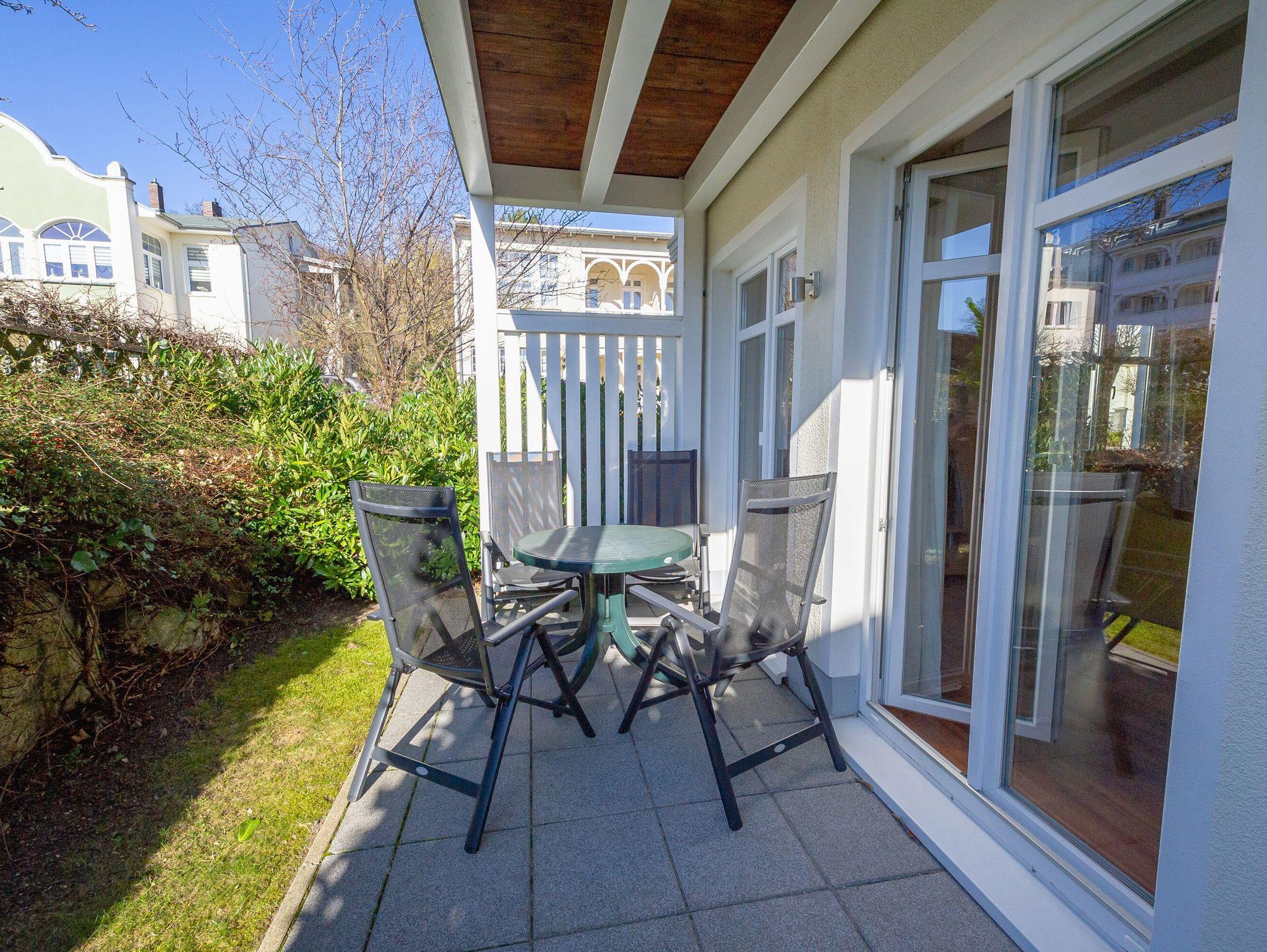 Modernes 3-Raum-Appartement in Sellin mit eigener Sauna und möblierter Terrasse.