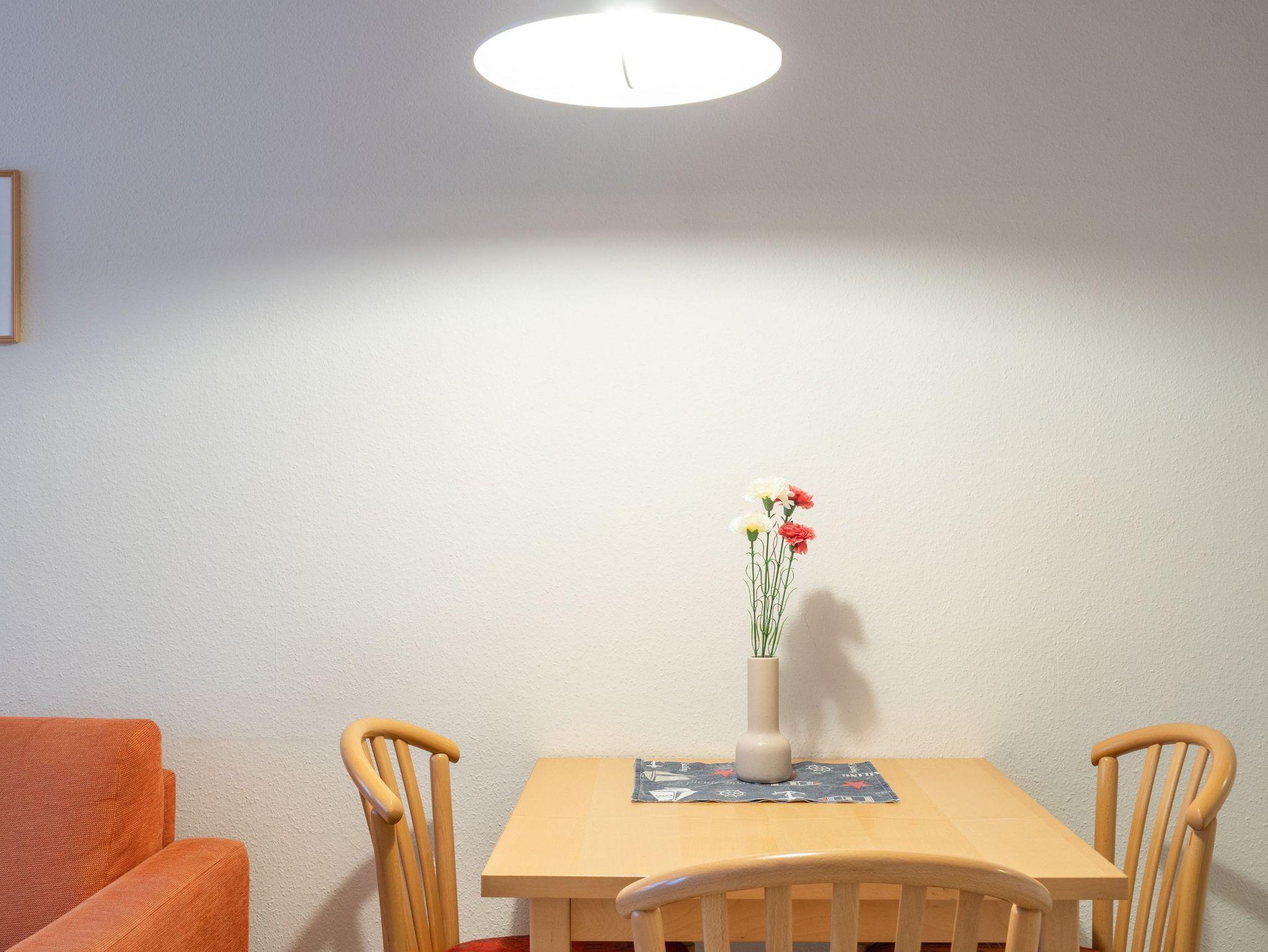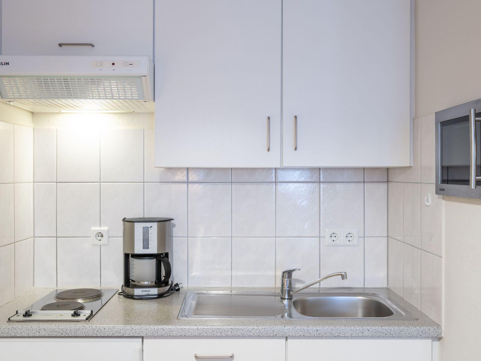 Die Ferienwohnung verfügt über kostenfreies WLAN und die Erstausstattung an Bettwäsche ist inklusive. Das Schlafzimmer mit Verdunklung verfügt über ein Doppelbett, im Wohnzimmer befindet sich zusätzlich eine Doppelschlafcouch. Darüber hinaus verfügt die Ferienwohnung über ein Bad mit Dusche/WC, Föhn sowie einem Kosmetikspiegel. Die voll ausgestattete, offene Küche mit Mikrowelle, Kaffeemaschine und Toaster lässt keine Wünsche offen. Ein Fernseher inkl. 3 Sky-Sender rundet die Einrichtung ab. Nach einem erlebnisreichen Urlaubstag können Sie auf dem Balkon in Nordwestlage Platz nehmen. Der Ausblick und die Sitzgruppe sorgen hier für ein wunderbares Urlaubsgefühl. Im Nichtraucher-Apartment ist ein mitreisendes Haustier gestattet.