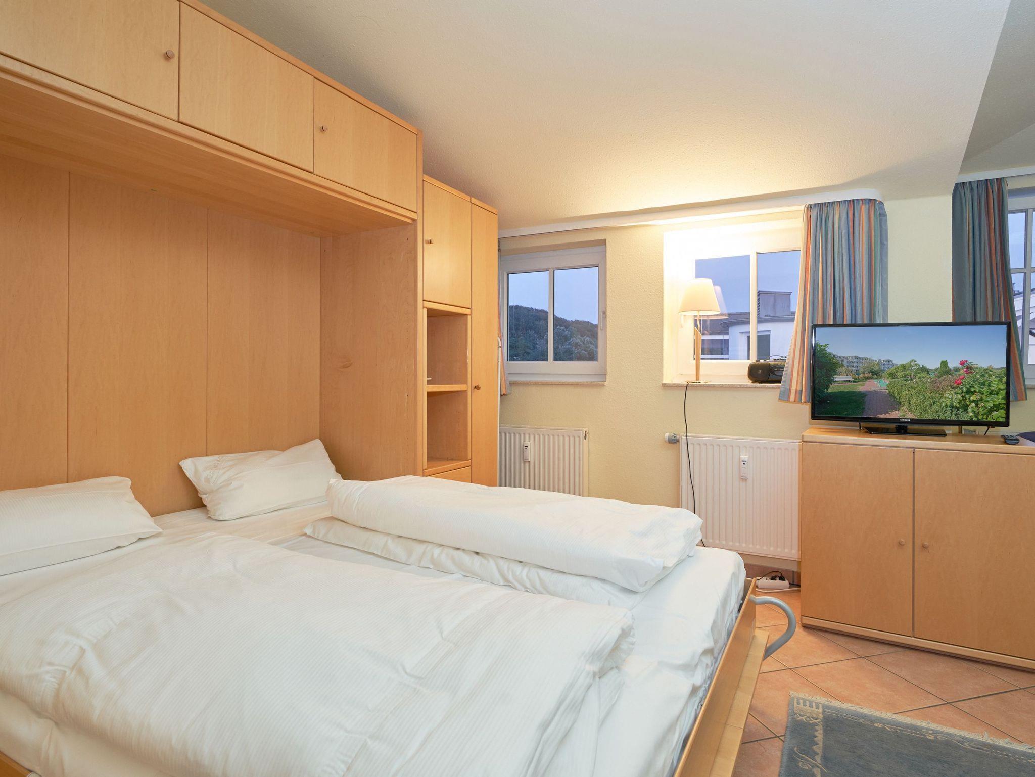 Die Ferienwohnung verfügt über kostenfreies WLAN und die Erstausstattung an Bettwäsche ist inklusive. Der kombinierte Wohn-/Schlafbereich mit Verdunklung verfügt über ein Schrankbett. Darüber hinaus verfügt die Ferienwohnung über ein Bad mit Dusche/WC. Die voll ausgestattete Pantry mit Kaffeemaschine und Toaster lässt keine Wünsche offen. Ein Fernseher inkl. 3 Sky-Sender rundet die gute Einrichtung ab. Im Nichtraucher-Apartment ist ein mitreisendes Haustier gestattet.