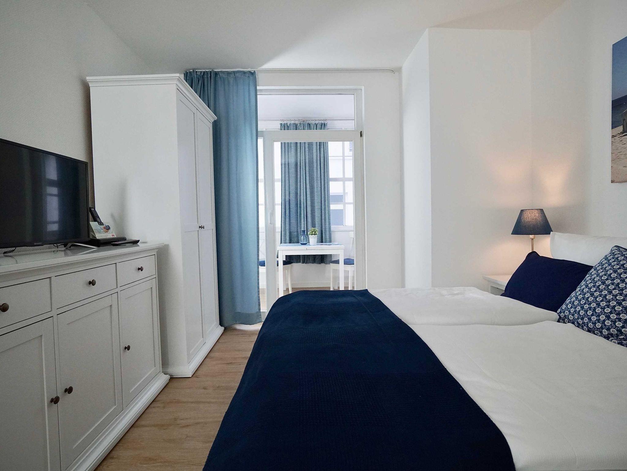 Das gemütliche Appartement Granitz (H) bietet Ihnen auf 30 - 34m² Platz für 2 Personen. Vom bequemen Doppelbett aus haben Sie einen direkten Blick auf den Flachbildfernseher. Entspannen können Sie in diesem Appartement sehr bequem auch im Wintergarten. Hier können Sie gemütlich frühstücken oder den Abend bei einem Gläschen Wein verbringen. Der WLAN-Zugang und ein SodaStream steht Ihnen kostenfrei zur Verfügung. In der modernen Pantryküche finden Sie neben einem Kühlschrank, Kaffeemaschine und Wasserkocher sogar ein 2-Platten-Cerankochfeld, um kleine Mahlzeiten zuzubereiten. Im modern gefliesten Badezimmer finden Sie neben WC und Waschbecken auch eine Dusche. Ein Babybett (bis zwei Jahre) kann bei Bedarf aufgestellt werden. Ein Fön gehört ebenfalls zur Ausstattung. Dieses Appartement liegt im Erdgeschoss, 1. oder 2. Obergeschoss mit Südost- bzw. Südwest-Ausrichtung.