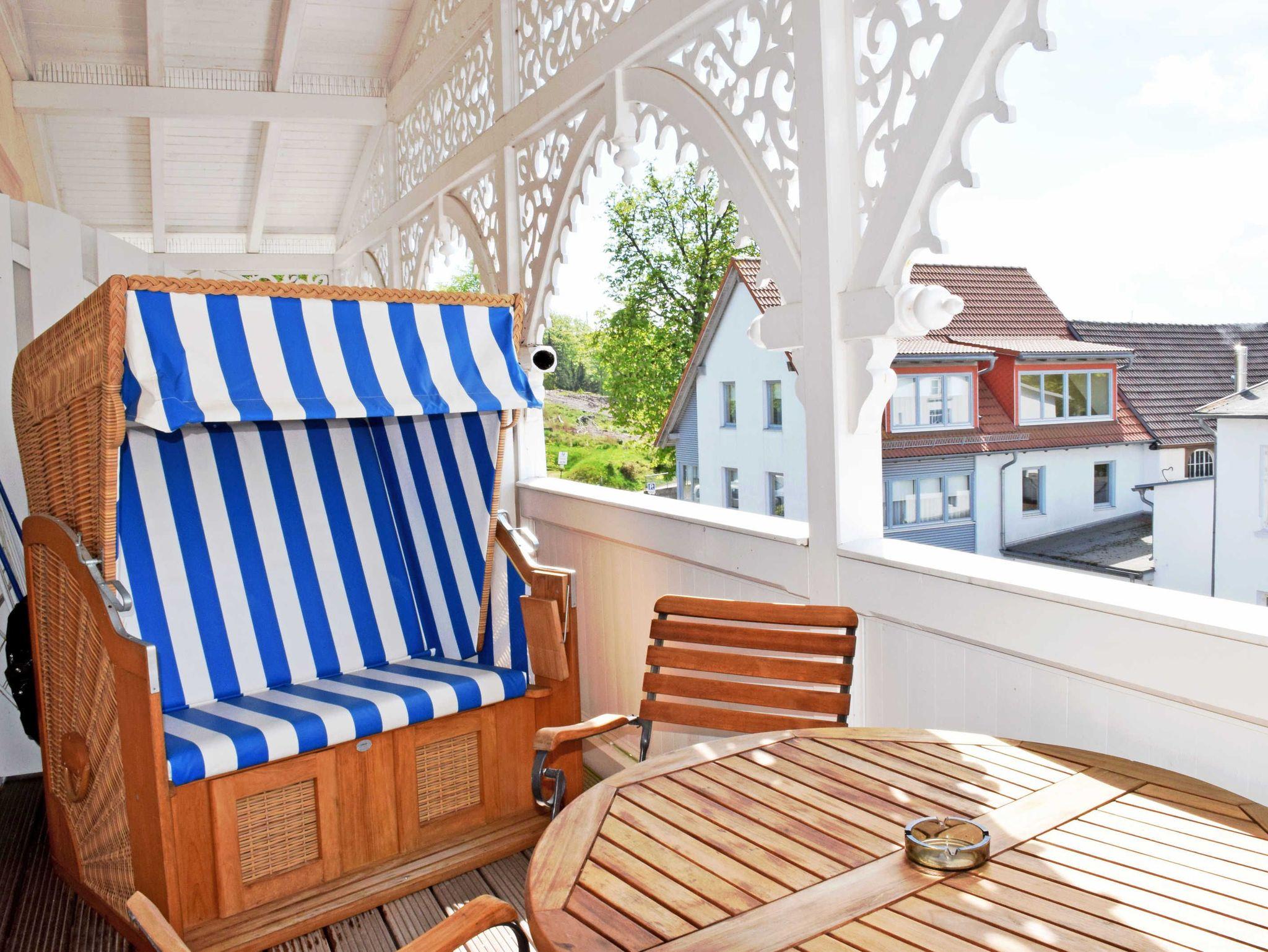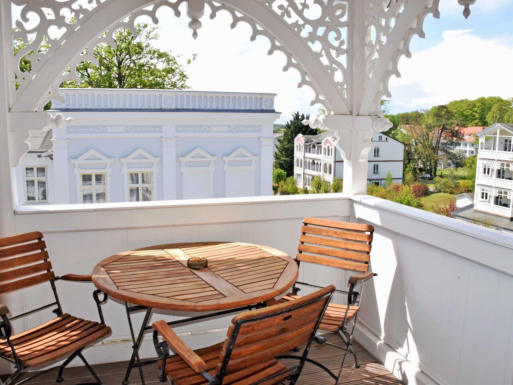 Die Ferienwohnung 20 in der Villa Sonneck bietet Balkon, Strandkorb und traumhaften Blick auf Sellins Wilhelmstraße.