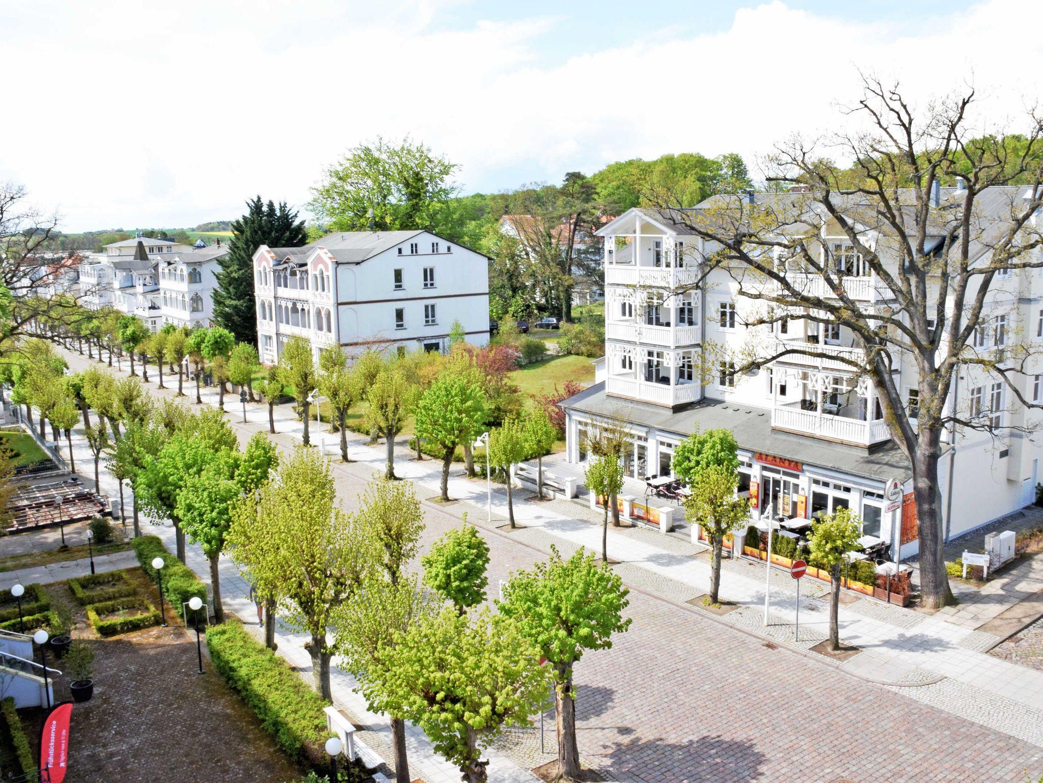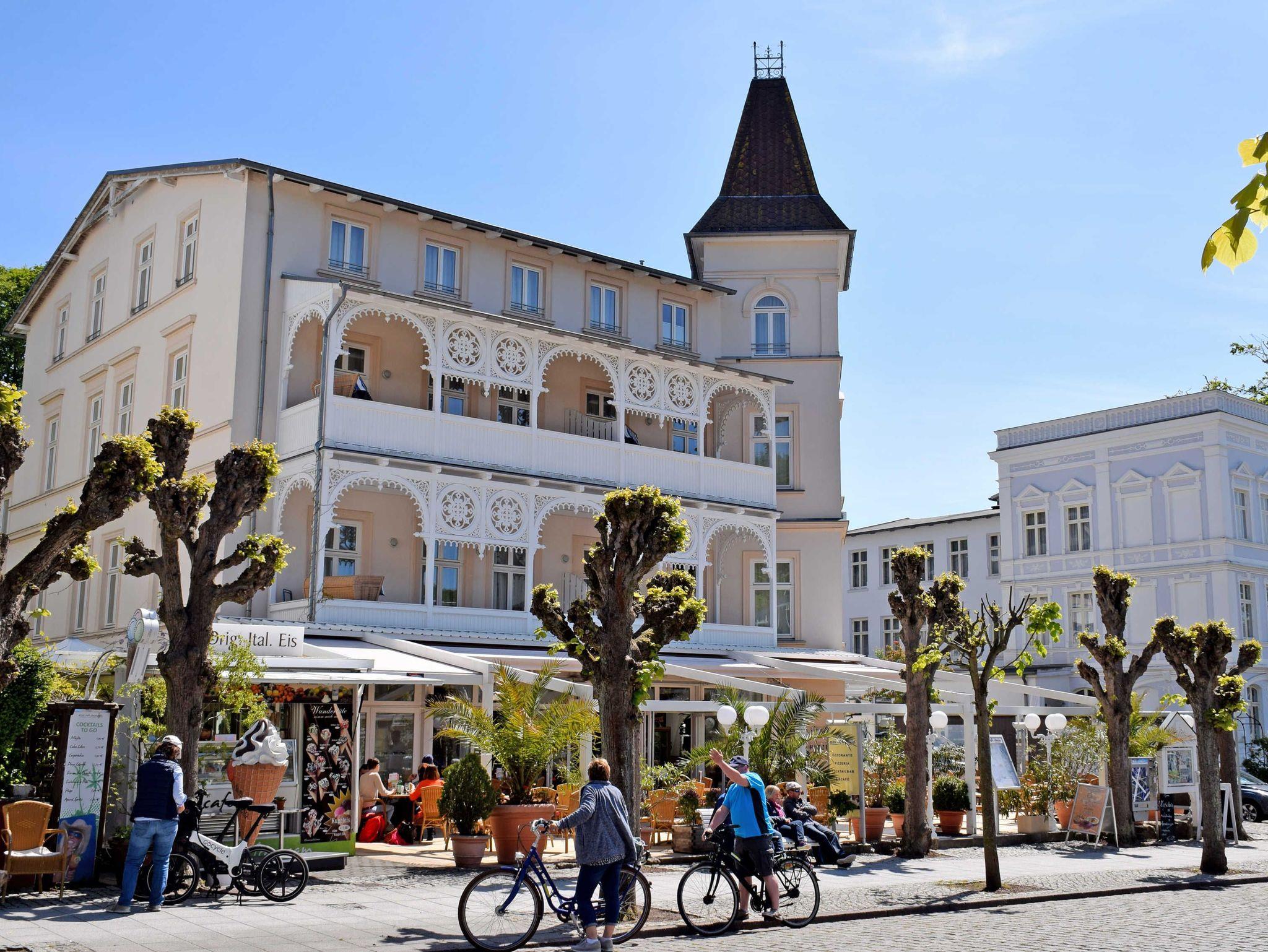 Das Ortzentrum des Ostseebades erreichen Sie in ca. 100m und der Kleinbahnhof für den „Rasenden Roland“ nach ca. 800m. Im Zentrum laden diverse Geschäfte, Läden, viele Restaurants zum Verweilen ein.
