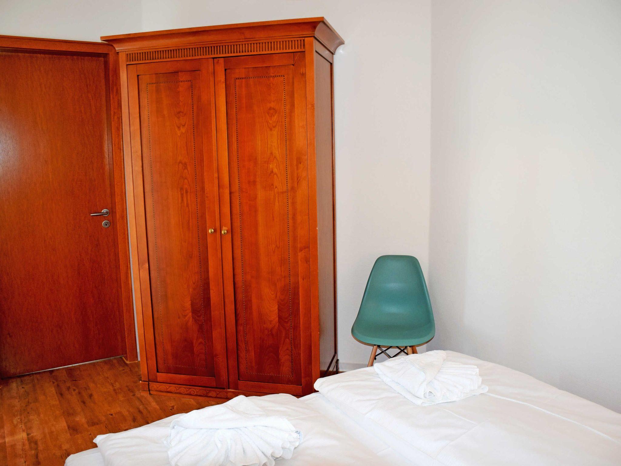 Das erste Schlafzimmer ist mit einem bequemen Doppelbett mit Nachttischen und Leselampen sowie einem Kleiderschrank ausgestattet. Im zweiten Schlafzimmer stehen zwei bequeme Einzelbetten mit Nachttischen und Leselampen sowie ein Kleiderschrank.