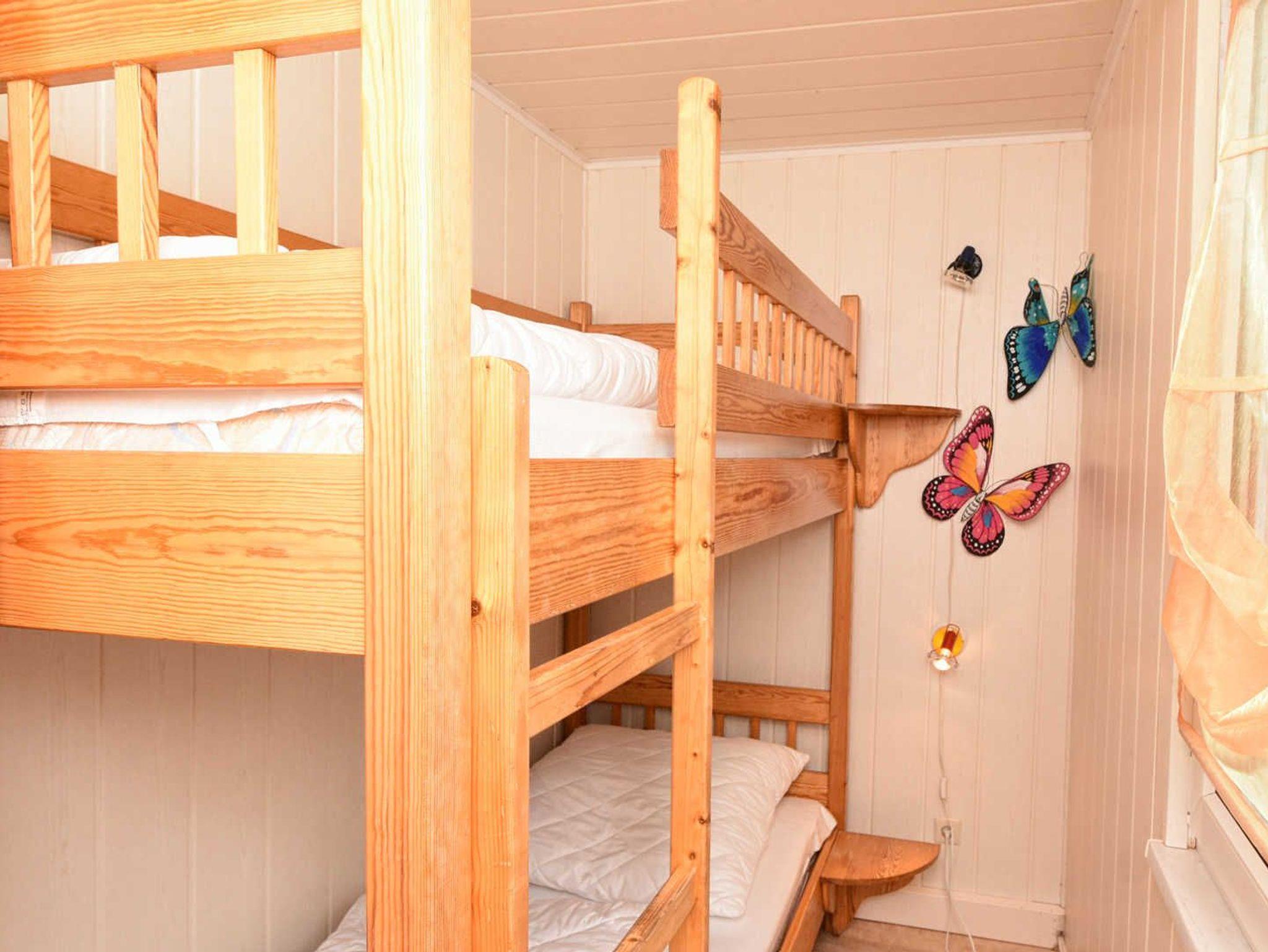 Er ist ausgestattet mit einem Schlafzimmer (Doppelbett), einem Kinderschlafzimmer (Doppelstockbett), einem Wohnbereich mit TV / Radio / WLAN, einer Wohnküche mit Mikrowelle, Wasserkocher, Kaffeemaschine, Kühlschrank, Herd, Toaster, Geschirr und Besteck. Im Eingangsbereich steht eine Esstisch mit Stühlen. Im Bad befindet sich eine Dusche, Waschbecken und WC. Auf der Terrasse befinden sich Gartenmöbel und Sitzauflagen. Ein Grill steht zur Verfügung. Grillen ist nur auf dem vorgesehenen Grillplatz erlaubt.