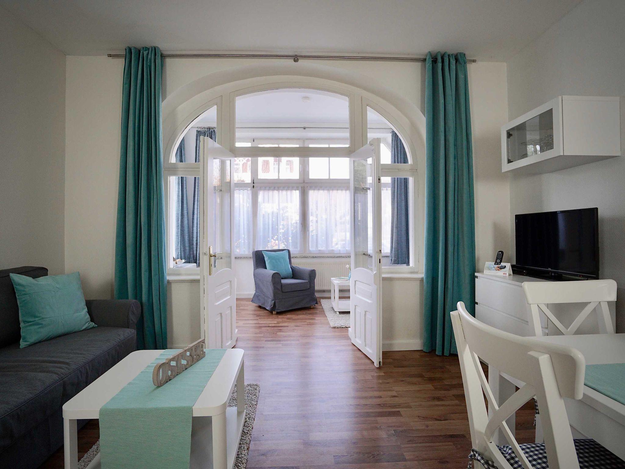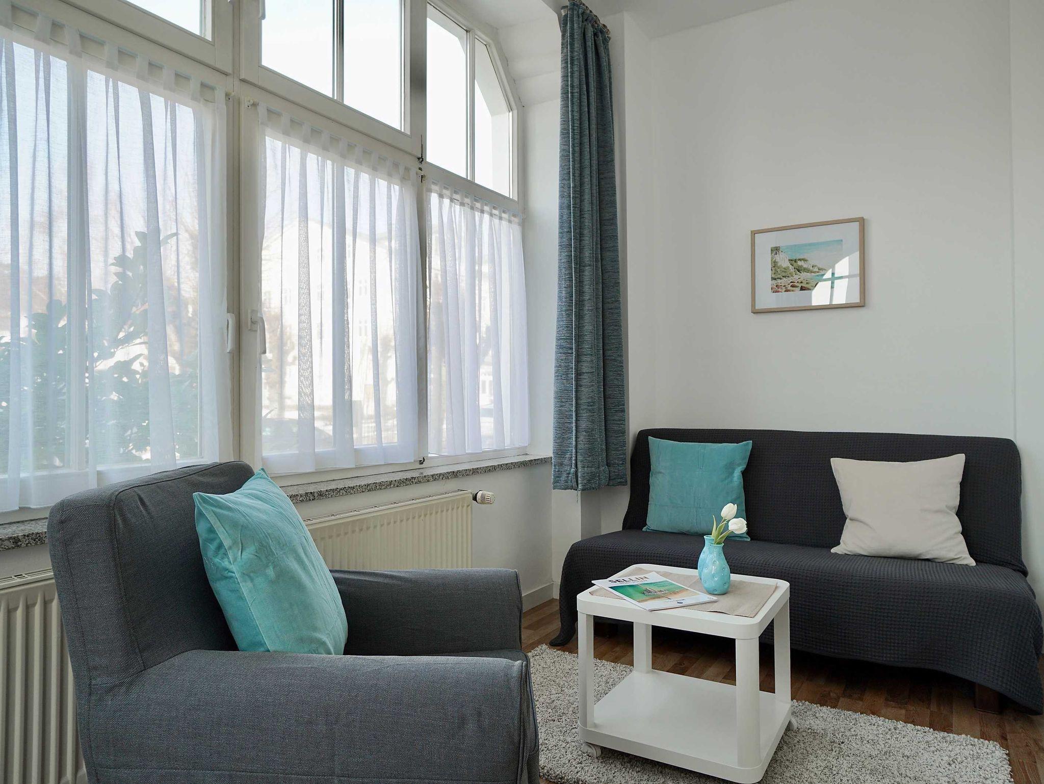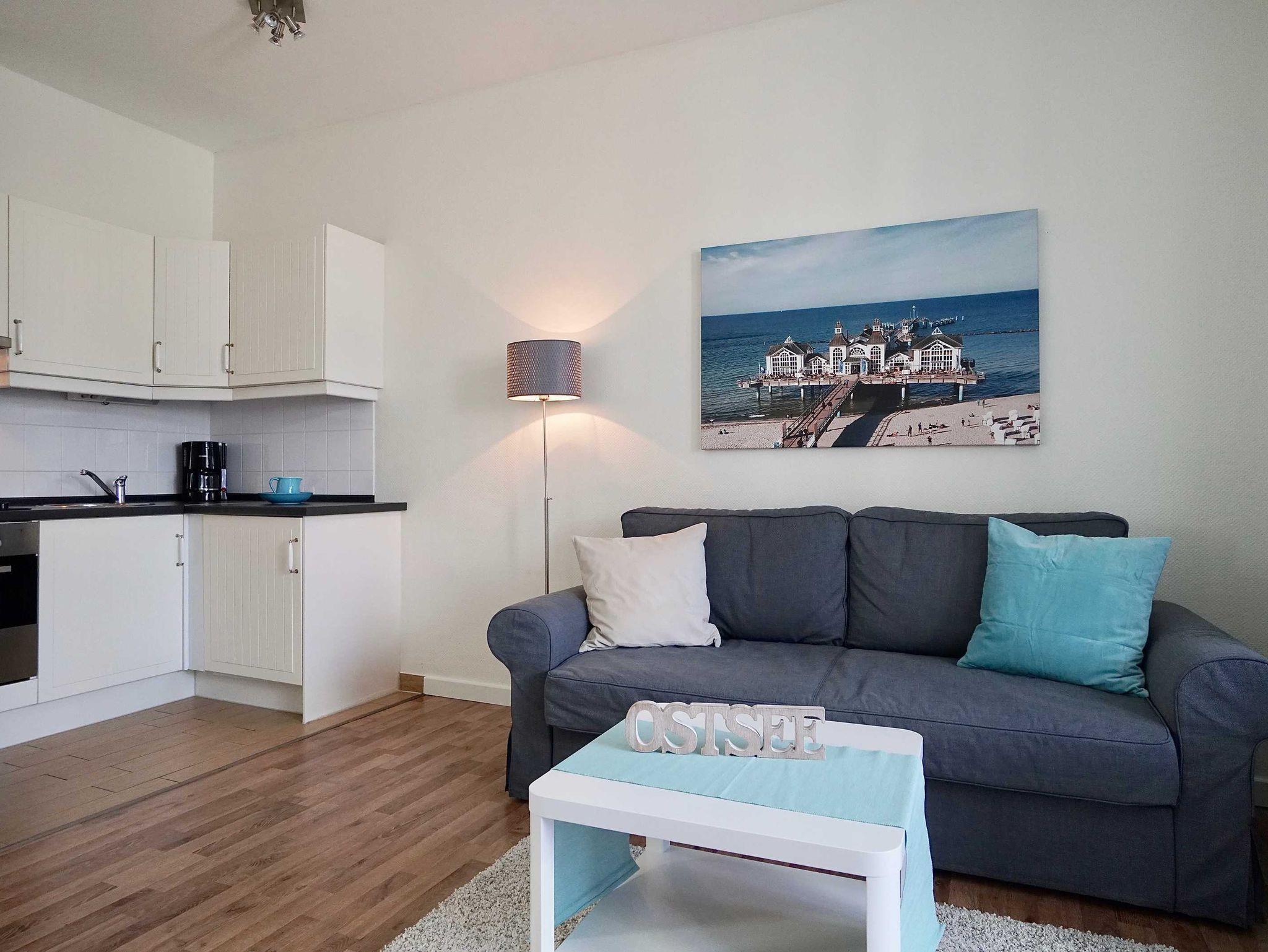 Gemütliches Appartement Jasmund im Haus Arkona, ruhig an Sellins Hauptpromenade, mit Sauna und WLAN.