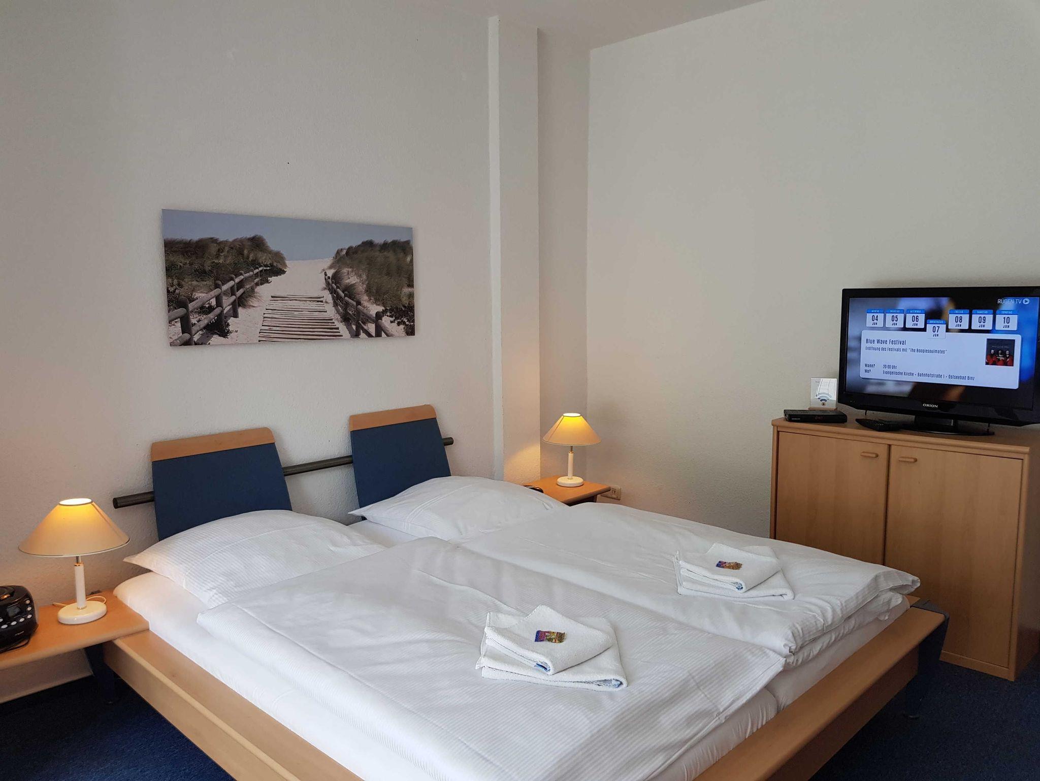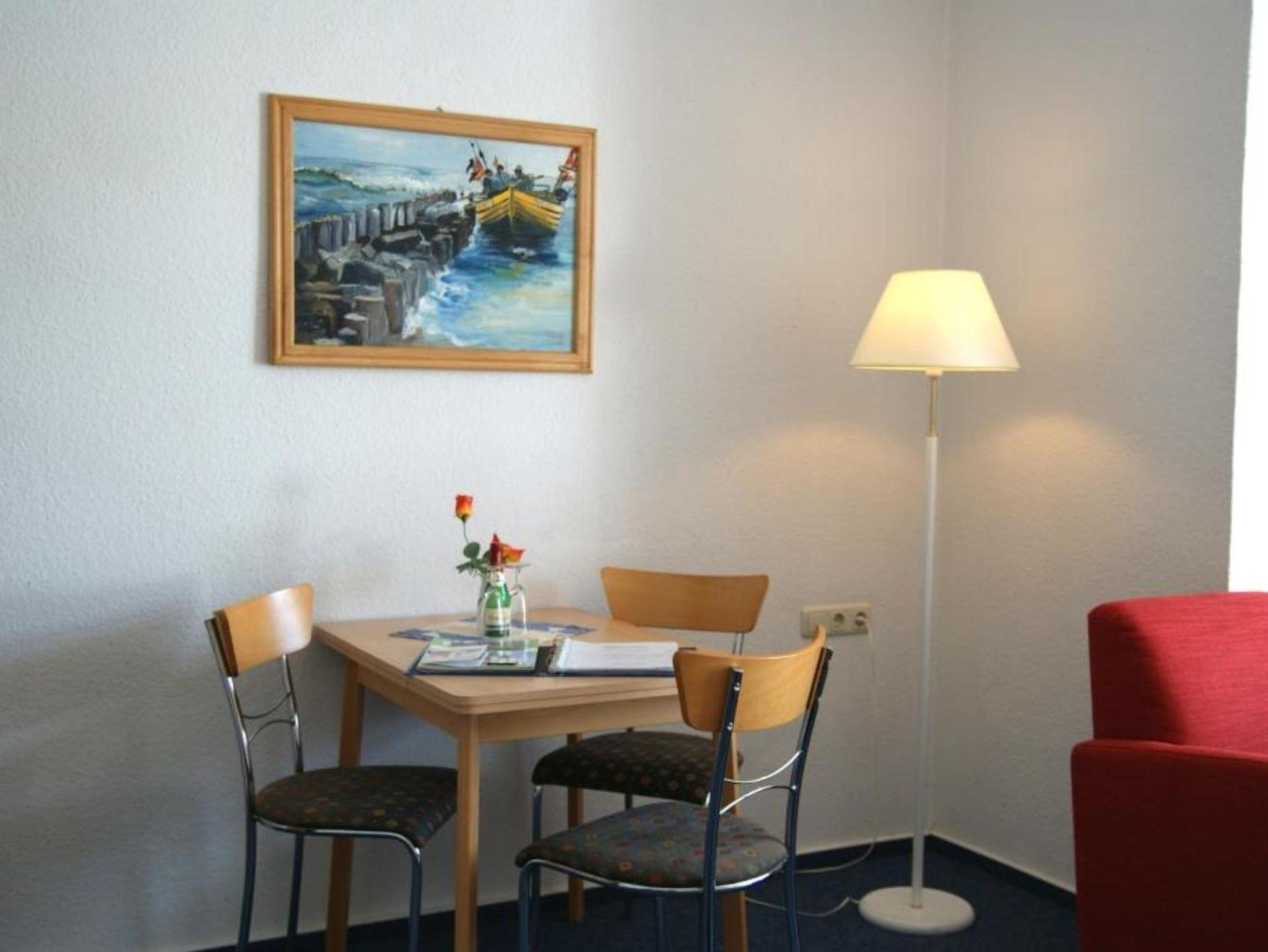 Das 1 Raumappartement hat einen Wohn-Schlafraum mit Doppelbett für 2 Pers.und einer ausziehbaren Couch, Kabel-TV,CD Stereoanlage ,Esstisch, gut ausgestattete Küchenzeile mit Geschirrspüler, Kaffeemaschine, Toaster und Microwelle. Babybett ( ohne Wäsche )und Hochstuhl für die kleinen stellen wir gegen Gebühr zur Verfügung ( bitte vorbestellen ) .
