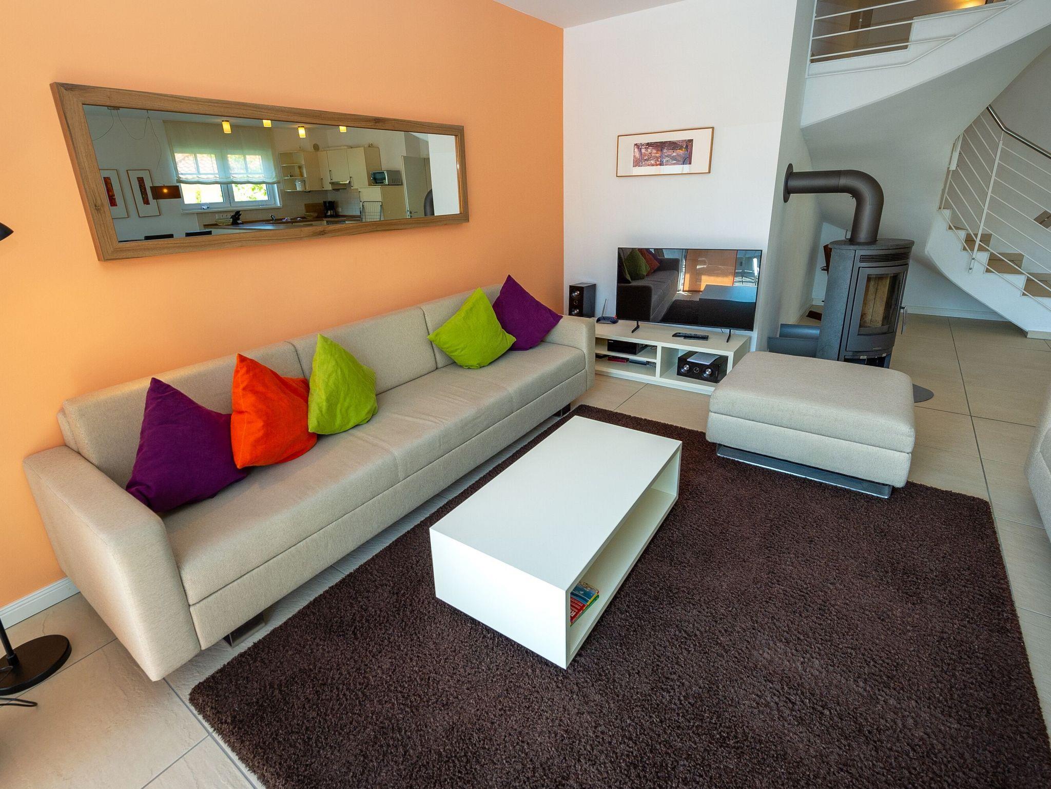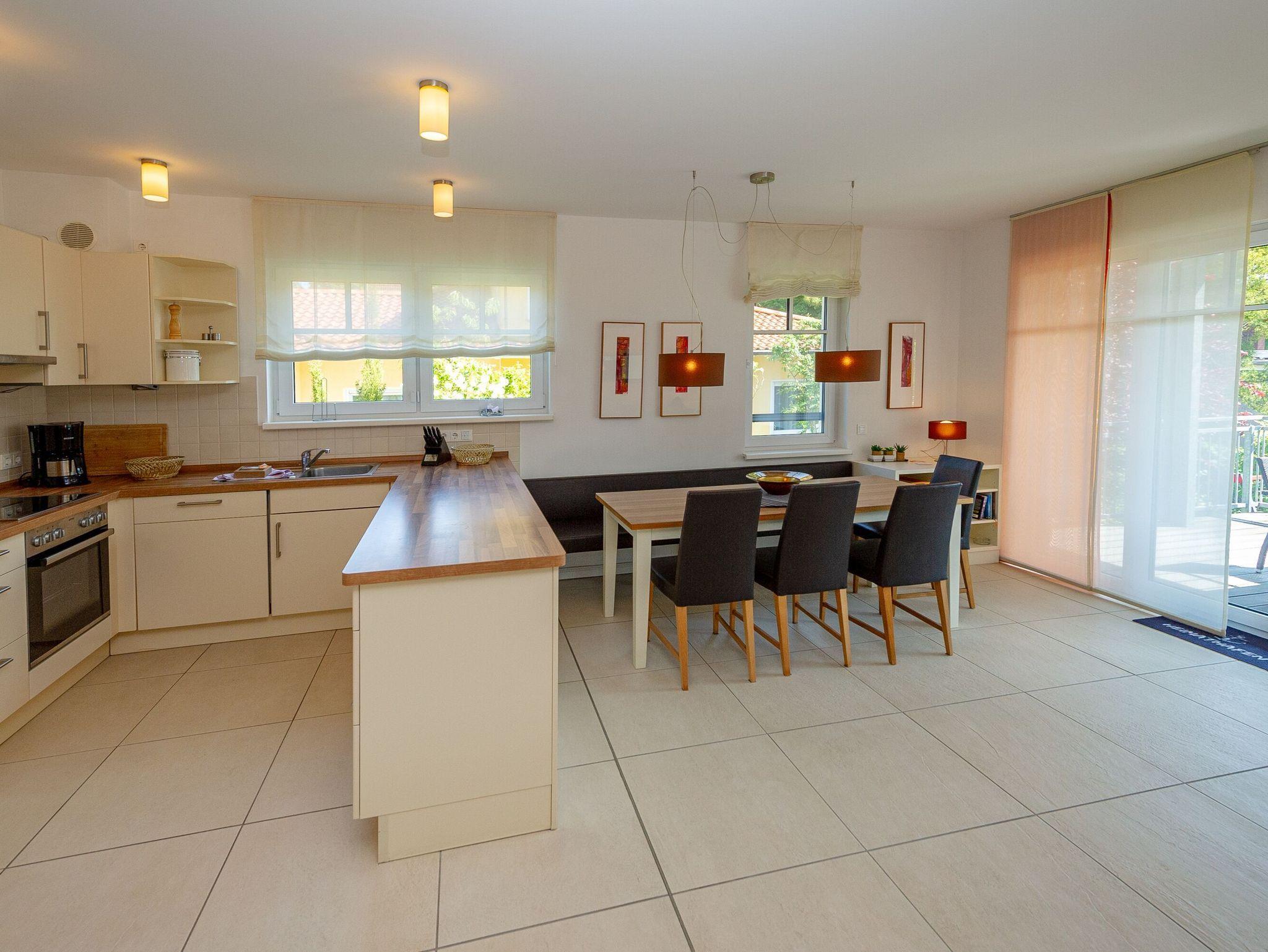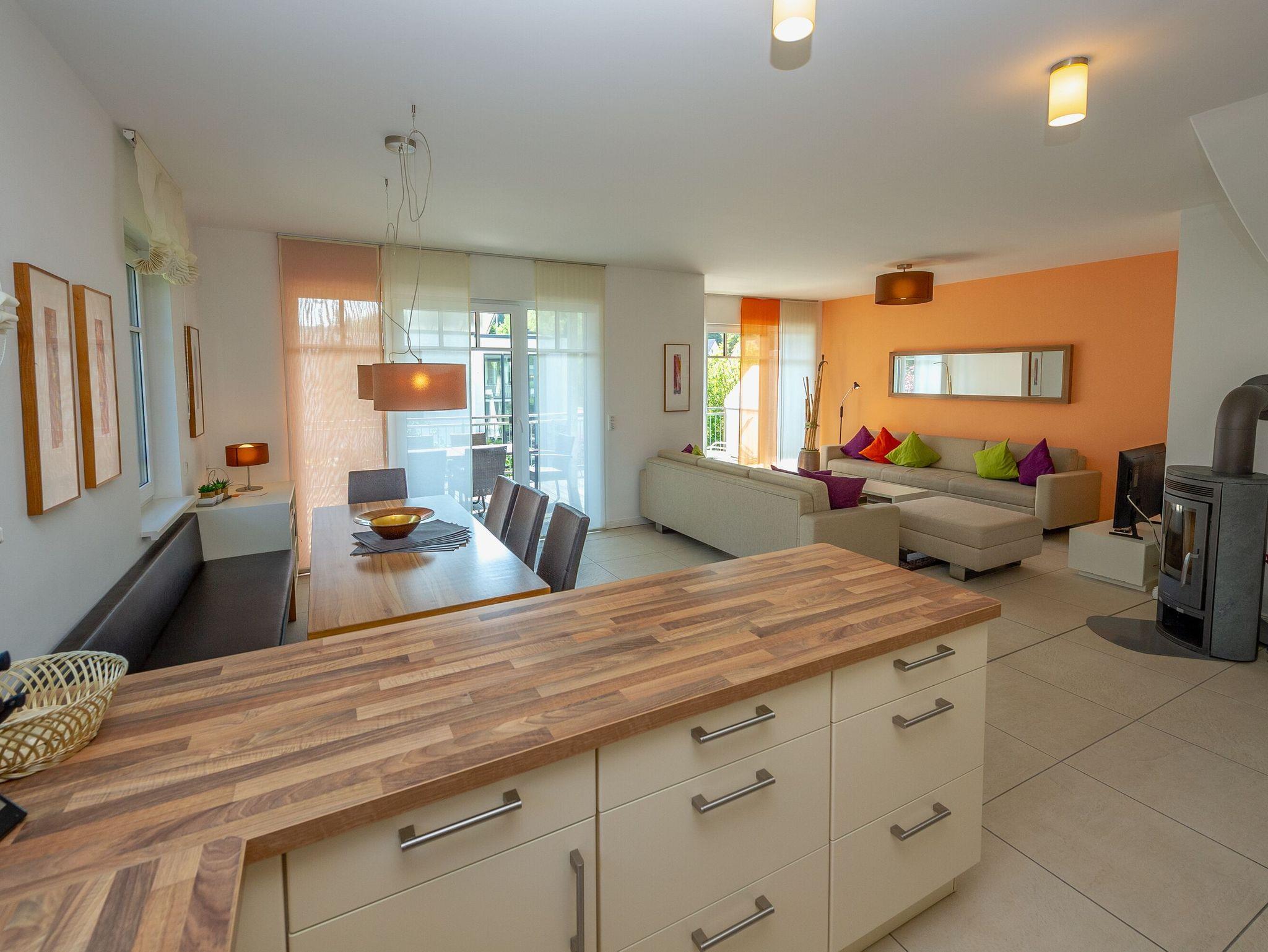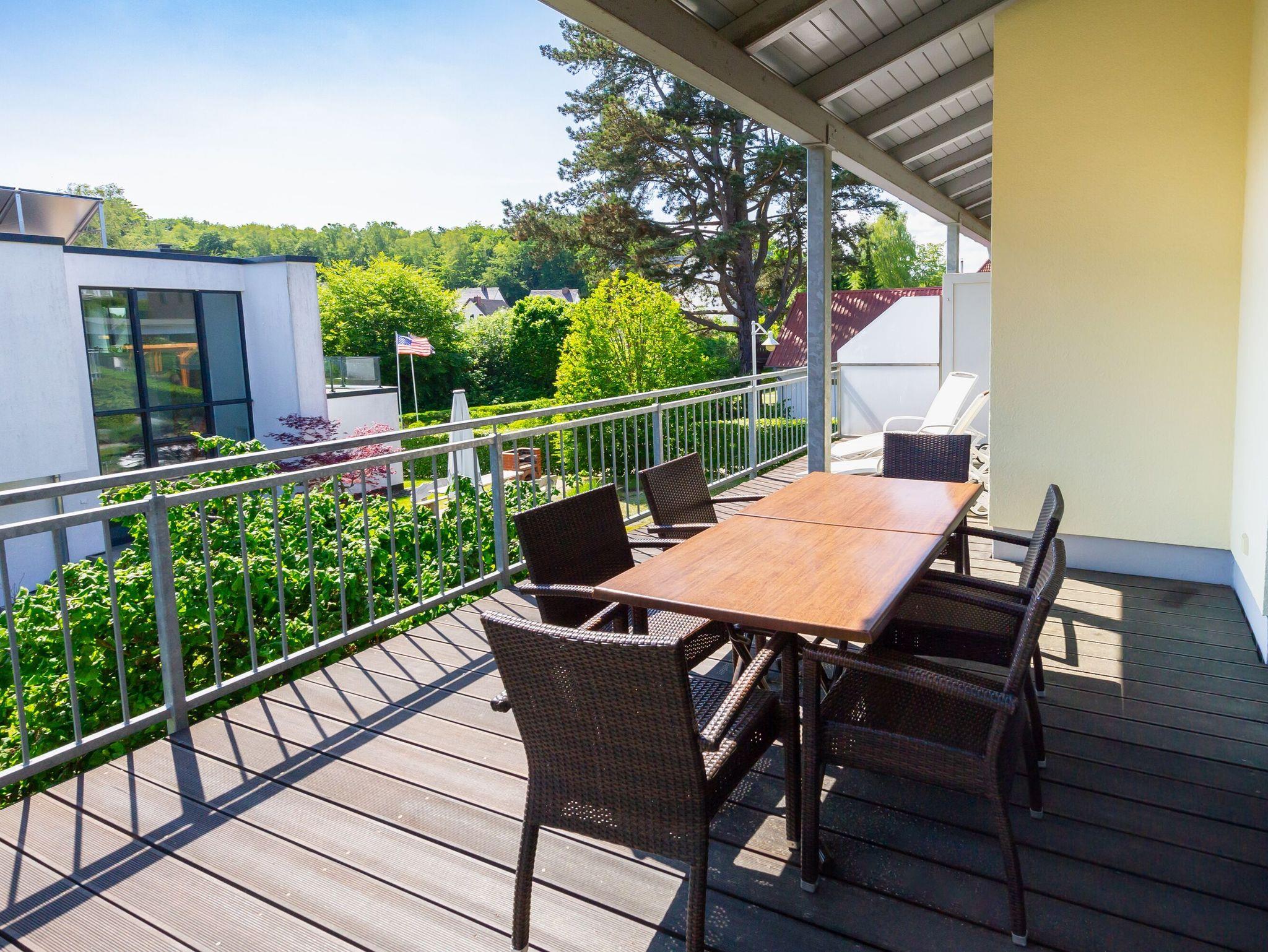 Moderne 100 m² Wohnung in Sellin mit Kamin, Hochterrasse und Sauna, ideal für erholsame Urlaubstage.