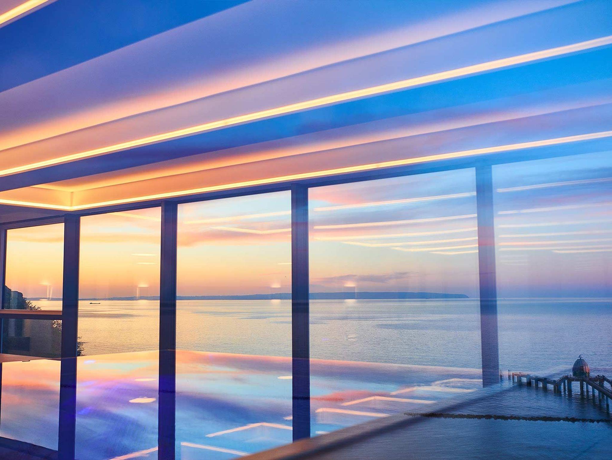 Jetzt mit Zugang zur Wellnessoase im Dachgeschoss der Villa First , Infinity-Innenpool mit 28 grad Wassertemperatur und atemberaubende Aussicht auf die Ostsee, 2 Saunen mit Blick auf die Kreidefelsen und Zugang zu der Dachterrasse mit Strandkörben (separat zubuchbar).