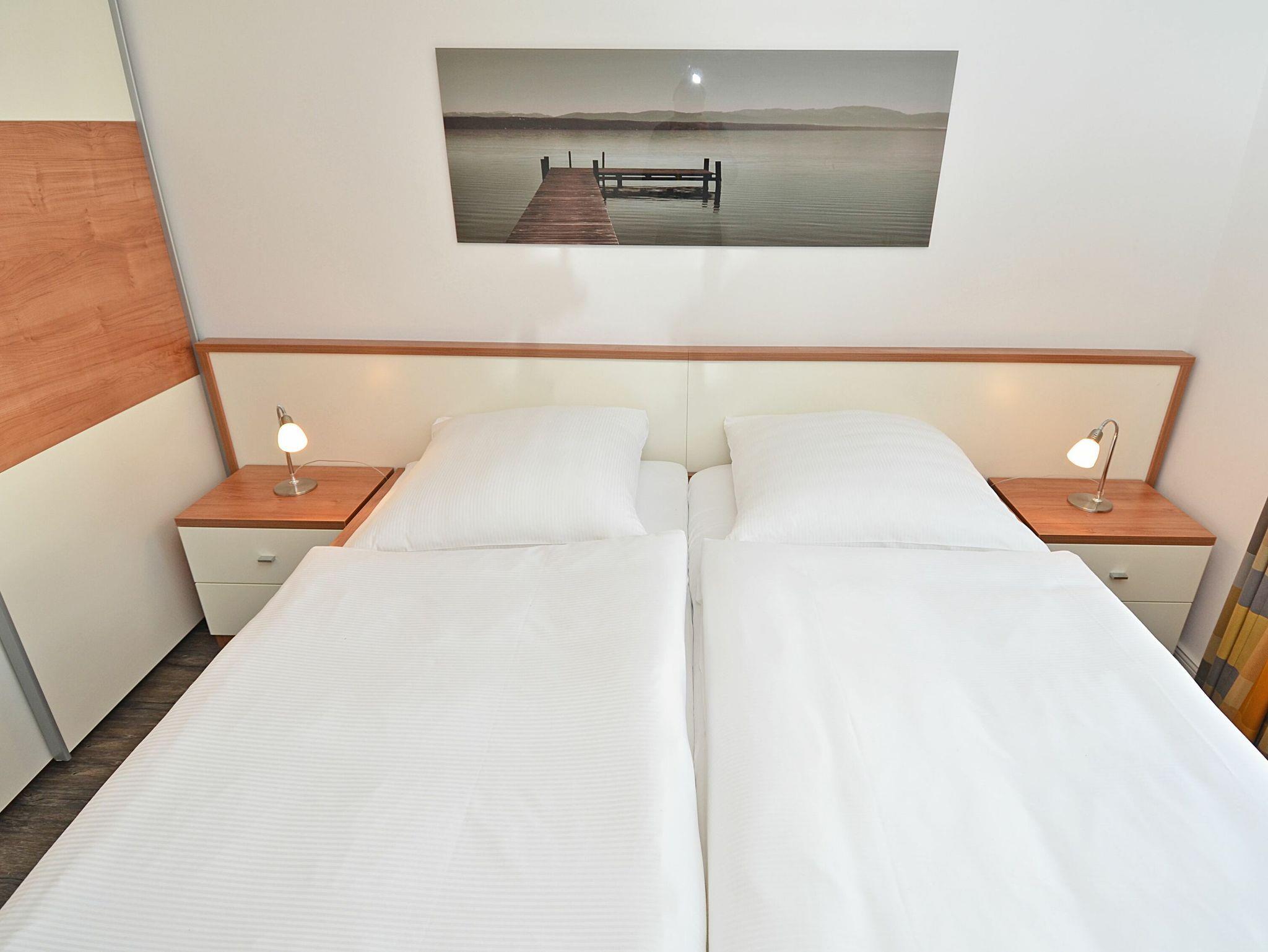 Eines der beiden Schlafzimmer verfügt über ein Doppelbett sowie einen weiteren Fernseher, das Andere über ein Einzelbett mit einem Rollunterbett sowie ausreichend Stauraum für Ihre Garderobe. Alle Betten sind mit komfortablen 7-Zonen-Kaltschaummatratzen ausgestattet.
