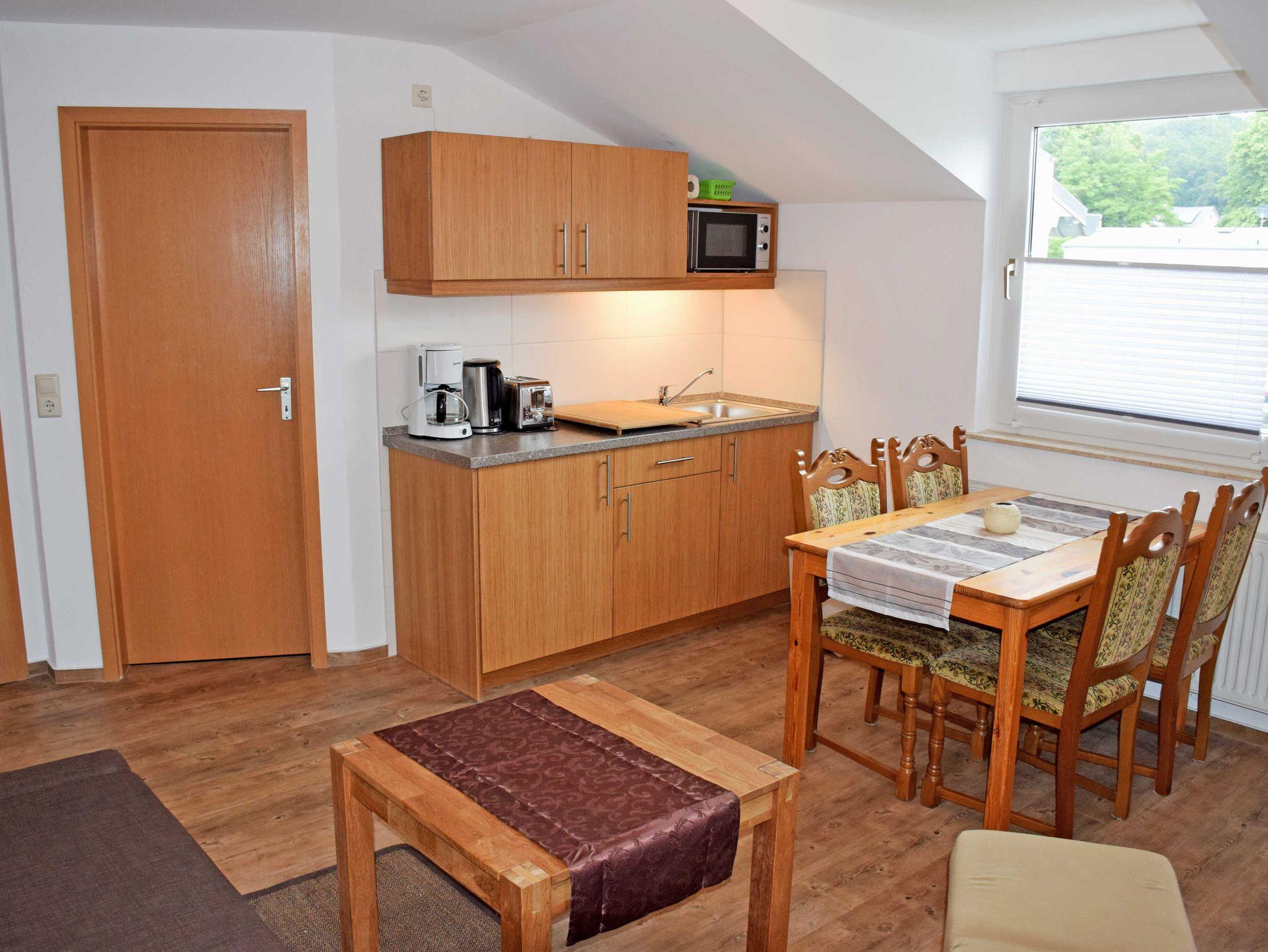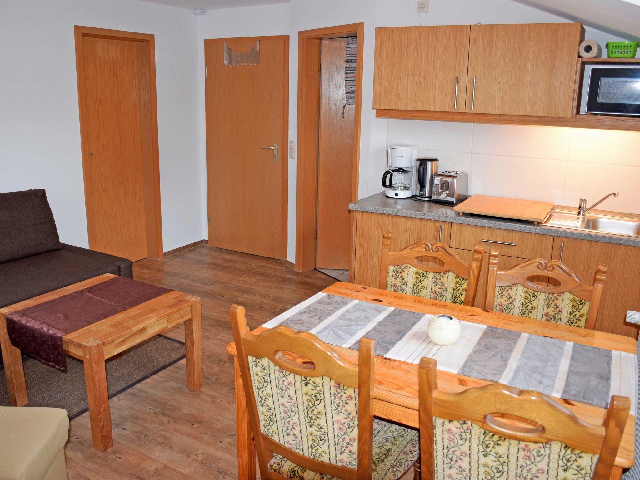 Das Ferienappartement ist ca. 45 qm groß, bietet Platz für maximal für 2 Erwachsene und zwei Kinder Platz. Das Appartement wurde liebevoll sowie komfortabel eingerichtet und befindet sich im ersten Obergeschoß. In diesem Appartement befindet sich ein Wohnzimmer mit einer Küchenzeile, einer Schlafcouch für zwei Personen sowie einem KInderbett mit Essecke sowie einem Schlafzimmer mit einem Doppelbett. Ein Kinderreisebettchen sowie ein Hochstuhl kann nur auf direkte Anfrage beim Vermieter gestellt werden.