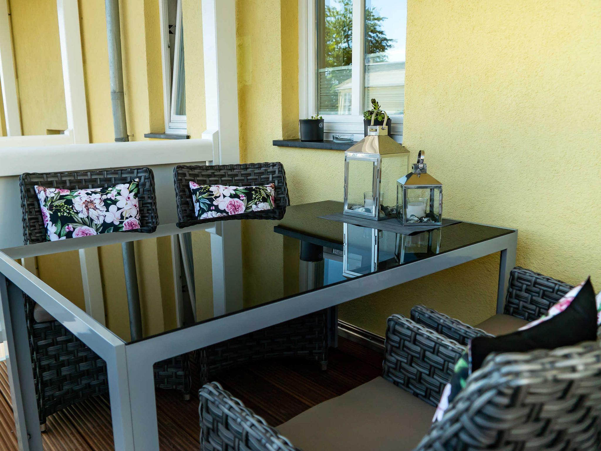 Komfortable Ferienwohnung mit Balkon in historischer Bäderstilvilla direkt an der Wilhelmstraße im Ostseebad Sellin.
