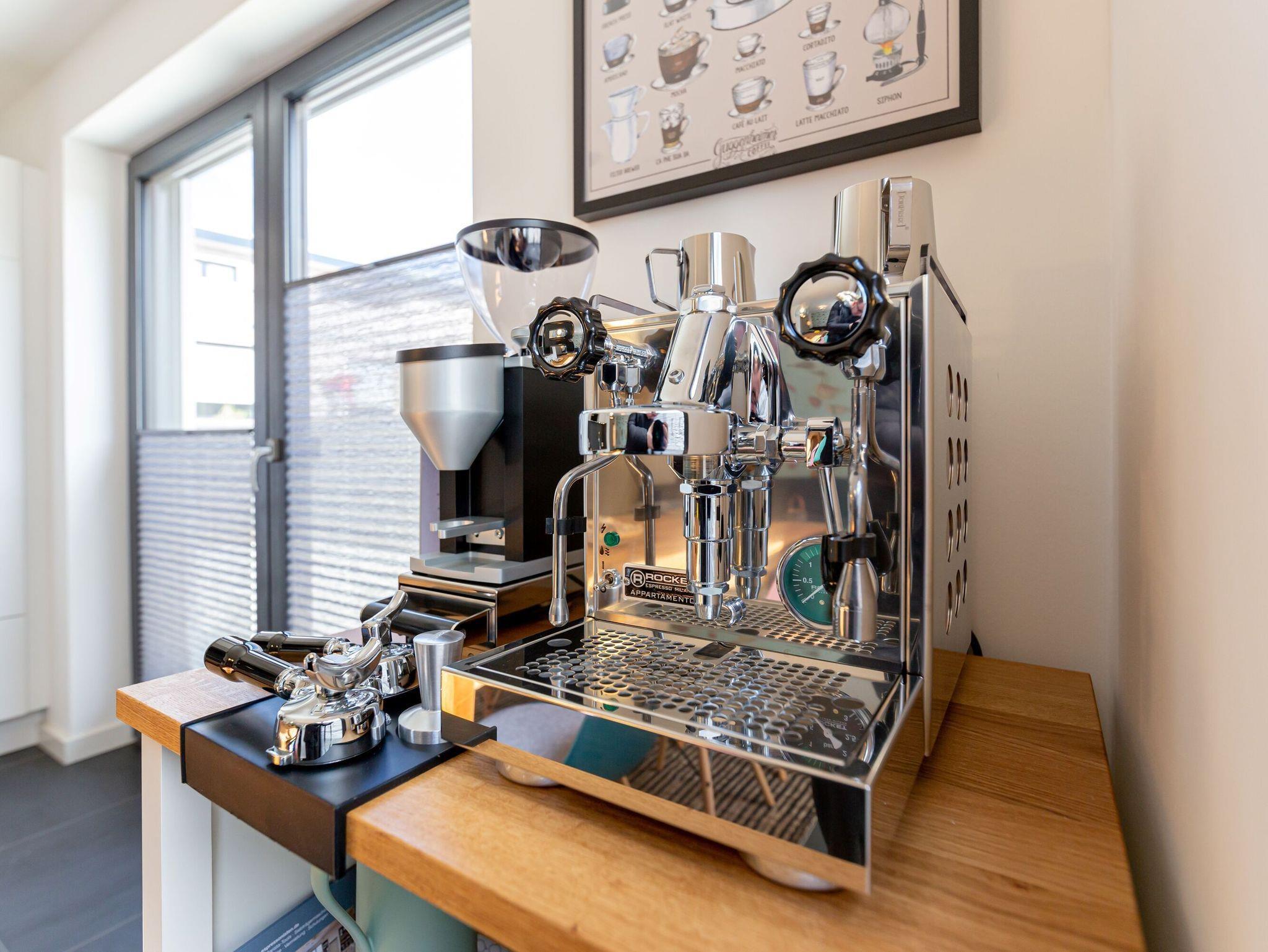 Außerdem stehen Ihnen in der Küche besondere Accessoires zur Verfügung. Seien es eine Moccamaster-Kaffeemaschine, ein Senseo-Automat oder eine Kaffeemahlmaschine, hier schmeckt das beliebte Heißgetränk in der wohnlichen Umgebung ausgezeichnet. Für Freunde der kulinarischen Unabhängigkeit befindet sich außerdem ein Backofen, ein 4 Felder Induktionskochfeld, zahlreiche Töpfe und Pfannen für gemütliche Kochabende in der schönen Küche.