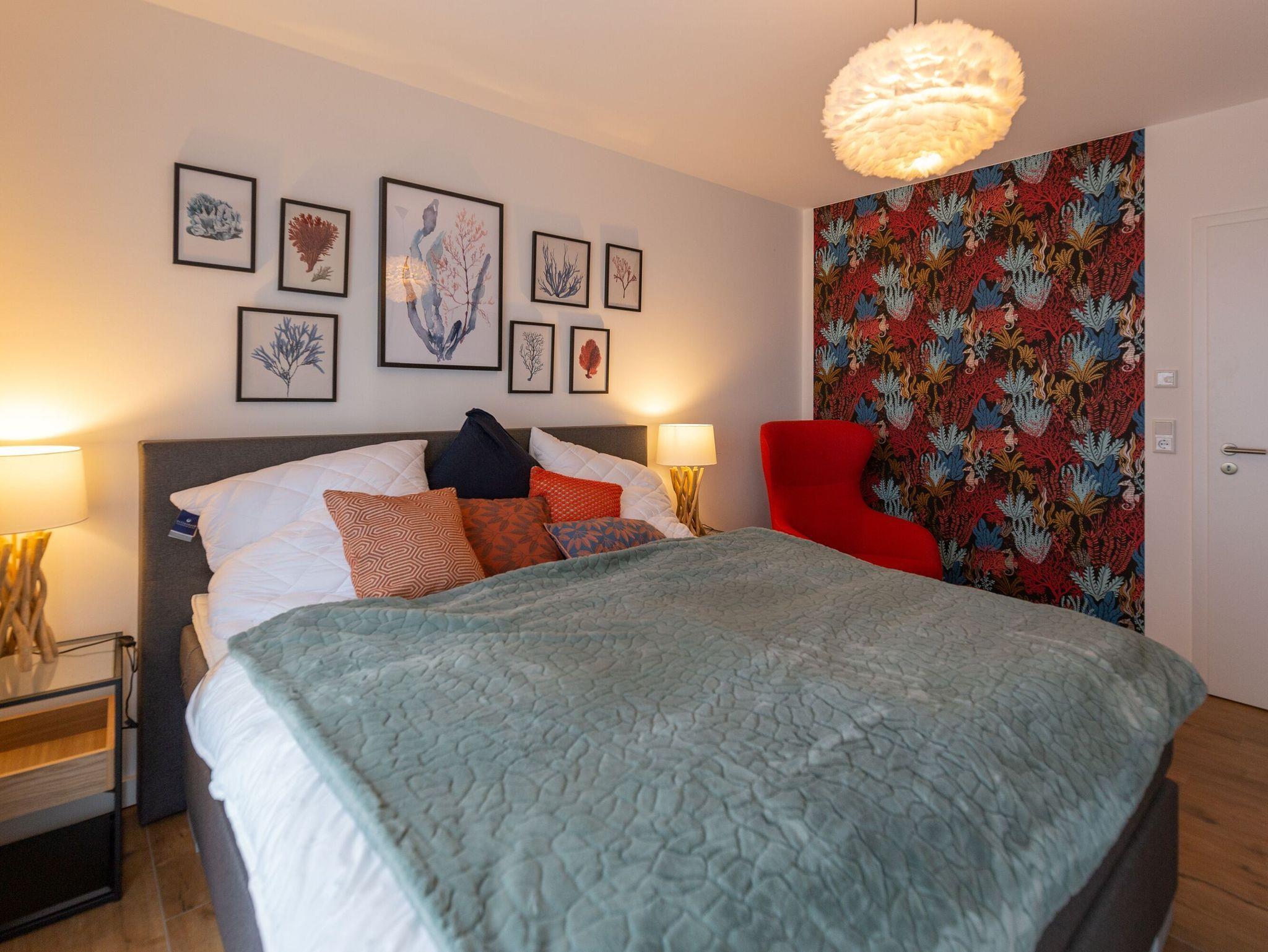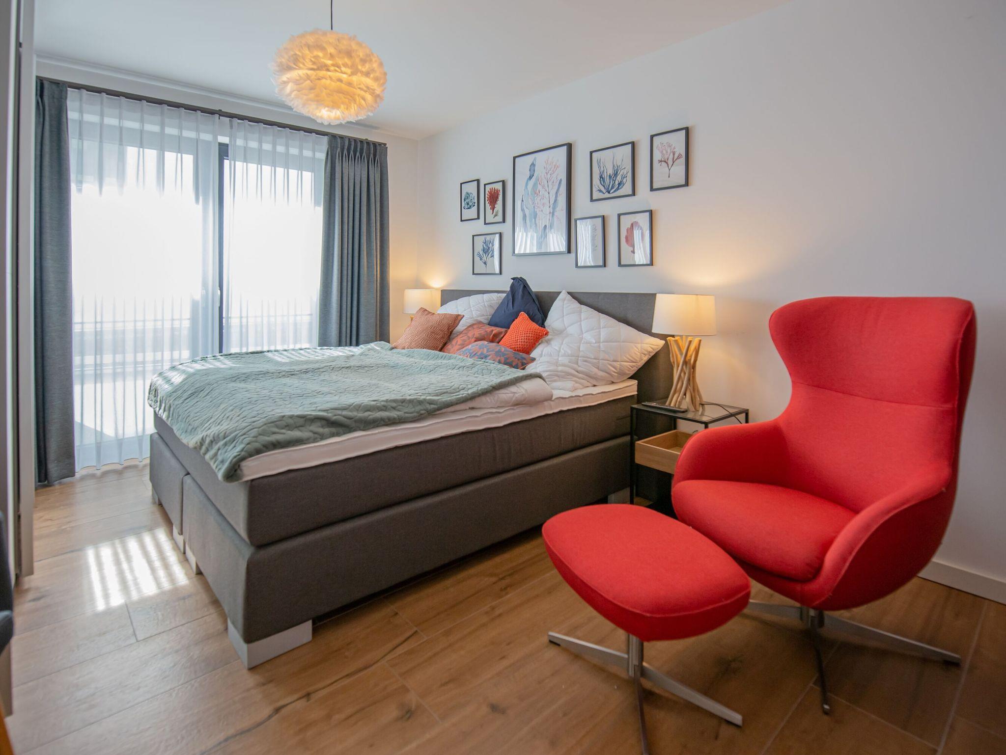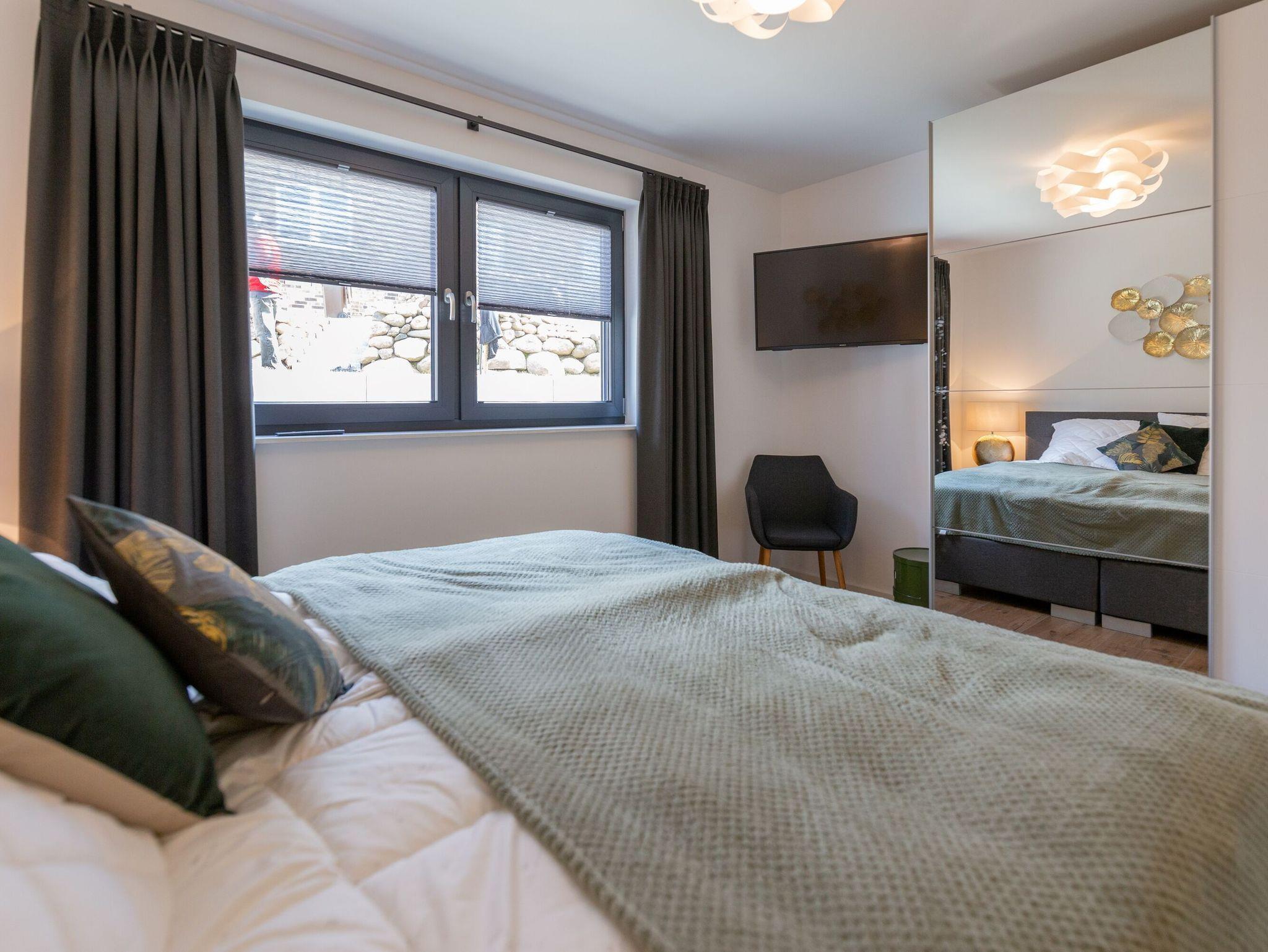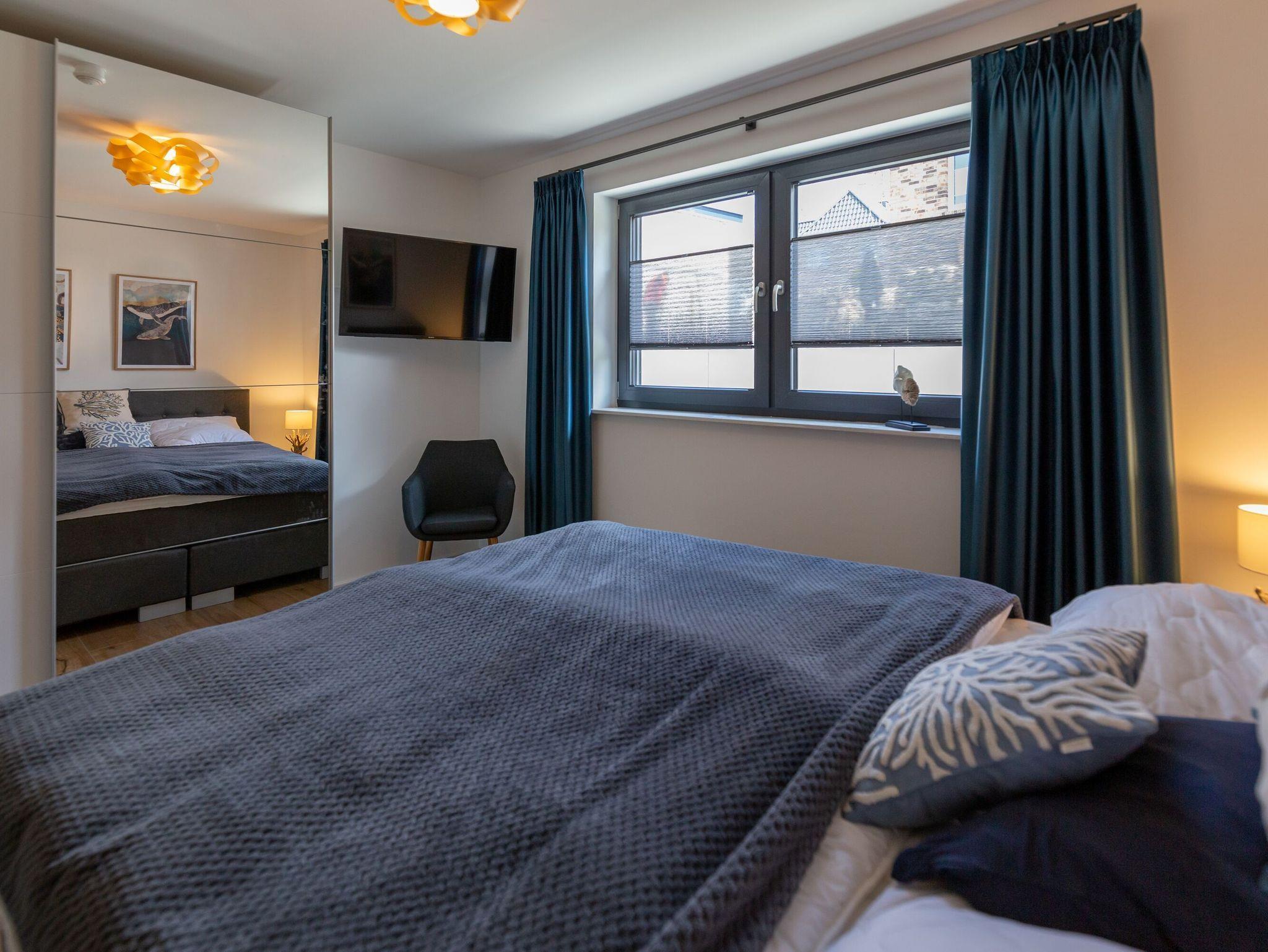 Drei moderne und gemütliche Schlafzimmer stehen Ihnen als Gäste in der Ferienwohnung Mare in Sellin zur Verfügung und sind mit jeweils einem großen Boxspringbett (180x200cm) ausgestattet. In allen Schlafzimmern befinden sich außerdem Kommoden und Kleiderschränke zur Verwahrung Ihrer Lieblingskleidungsstücke.