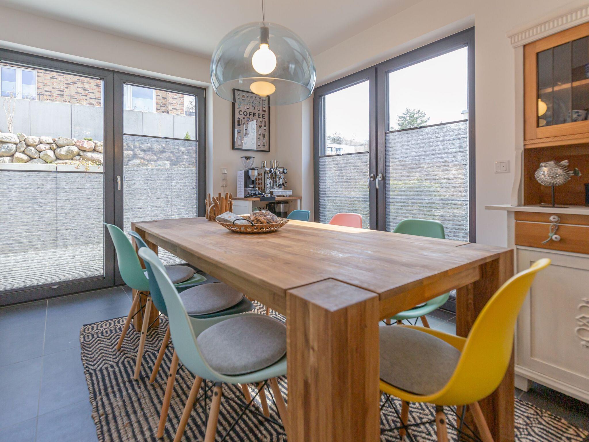 Den direkten Zugang zur Terrasse erhalten Sie über den Wohnbereich. Auf der herrlich großen Terrasse erwarten Sie bequeme Gartenmöbel. Ein Marken-Elektrogrill rundet das vielfältige Angebot gekonnt ab.
