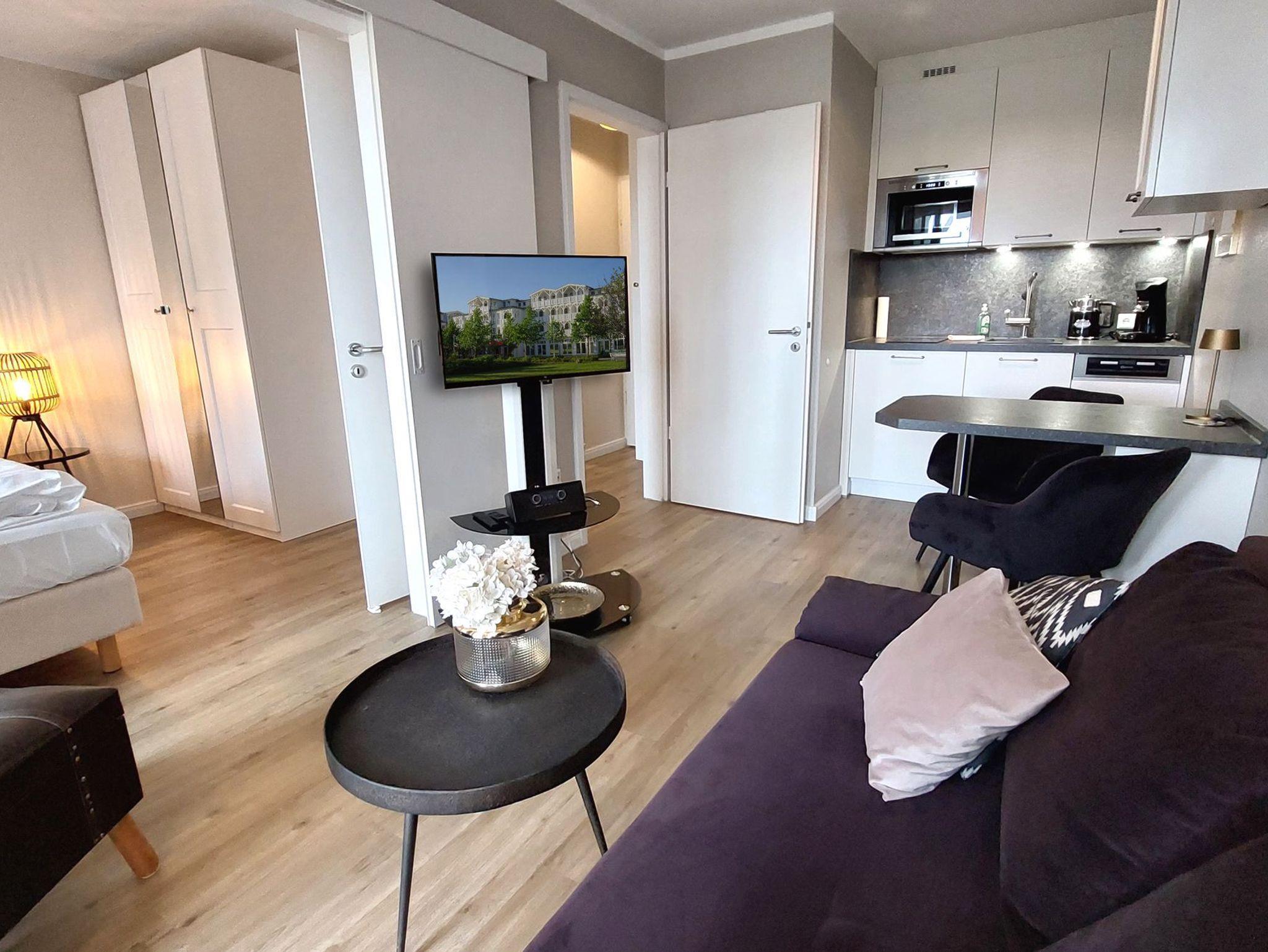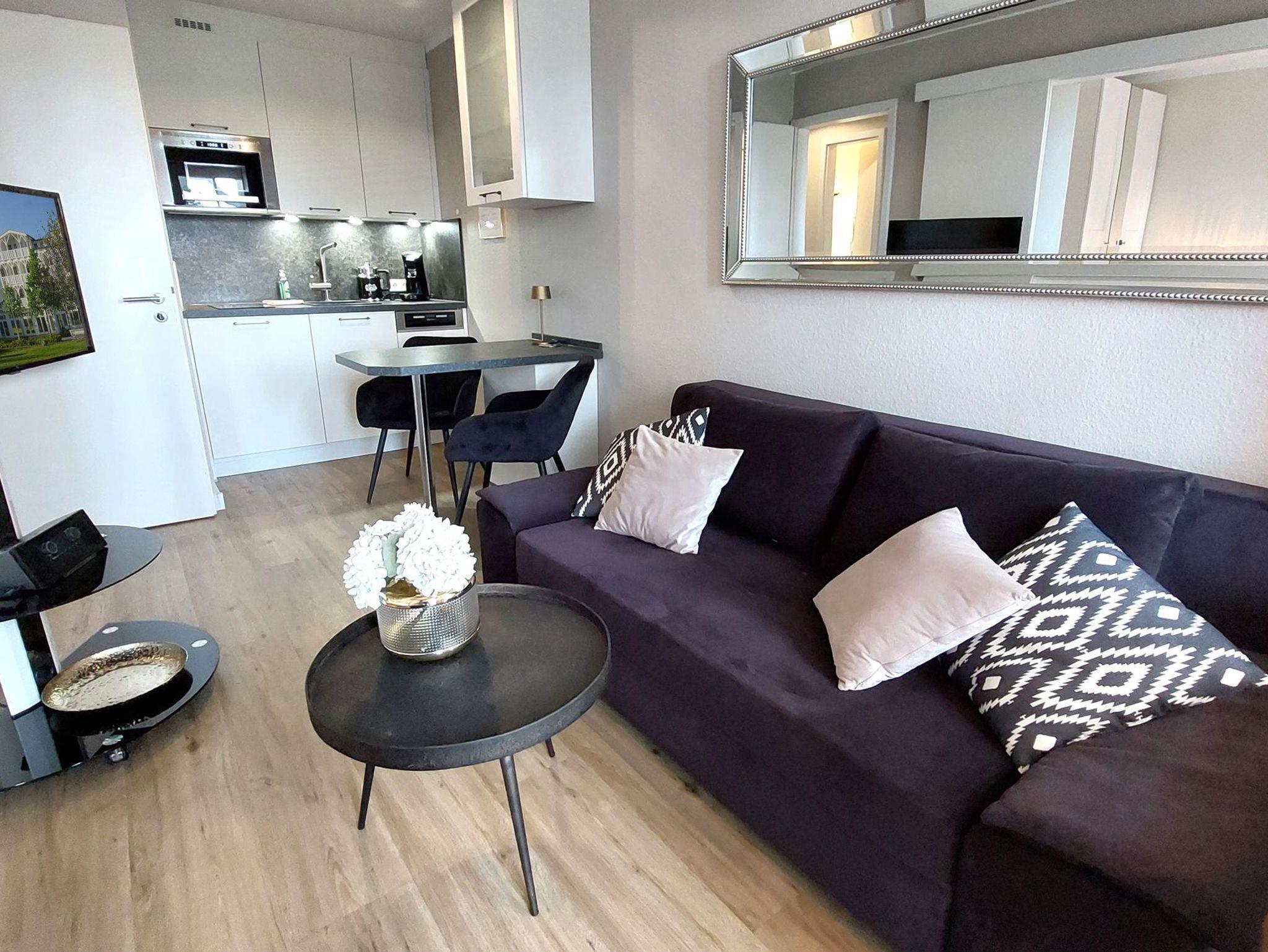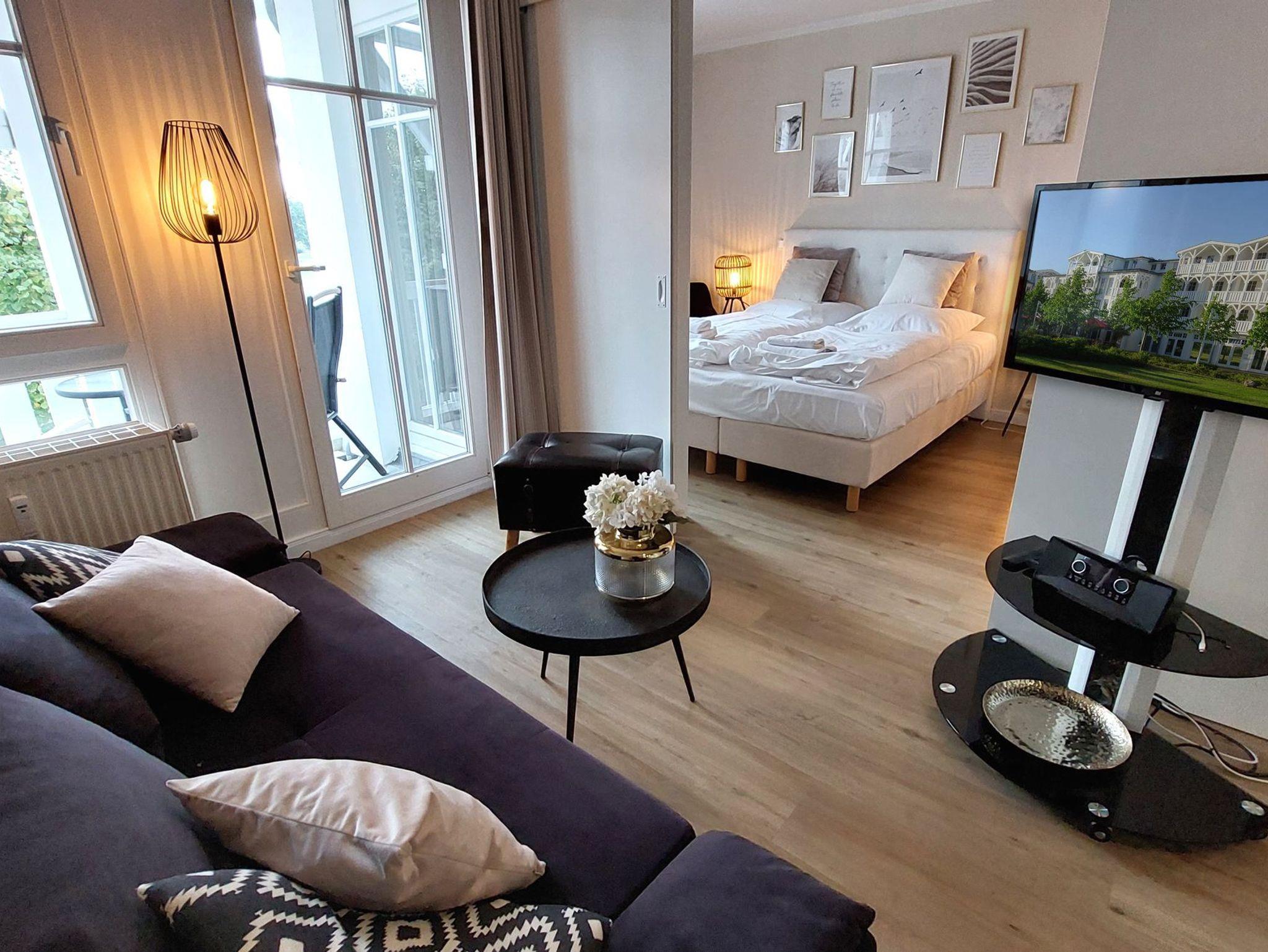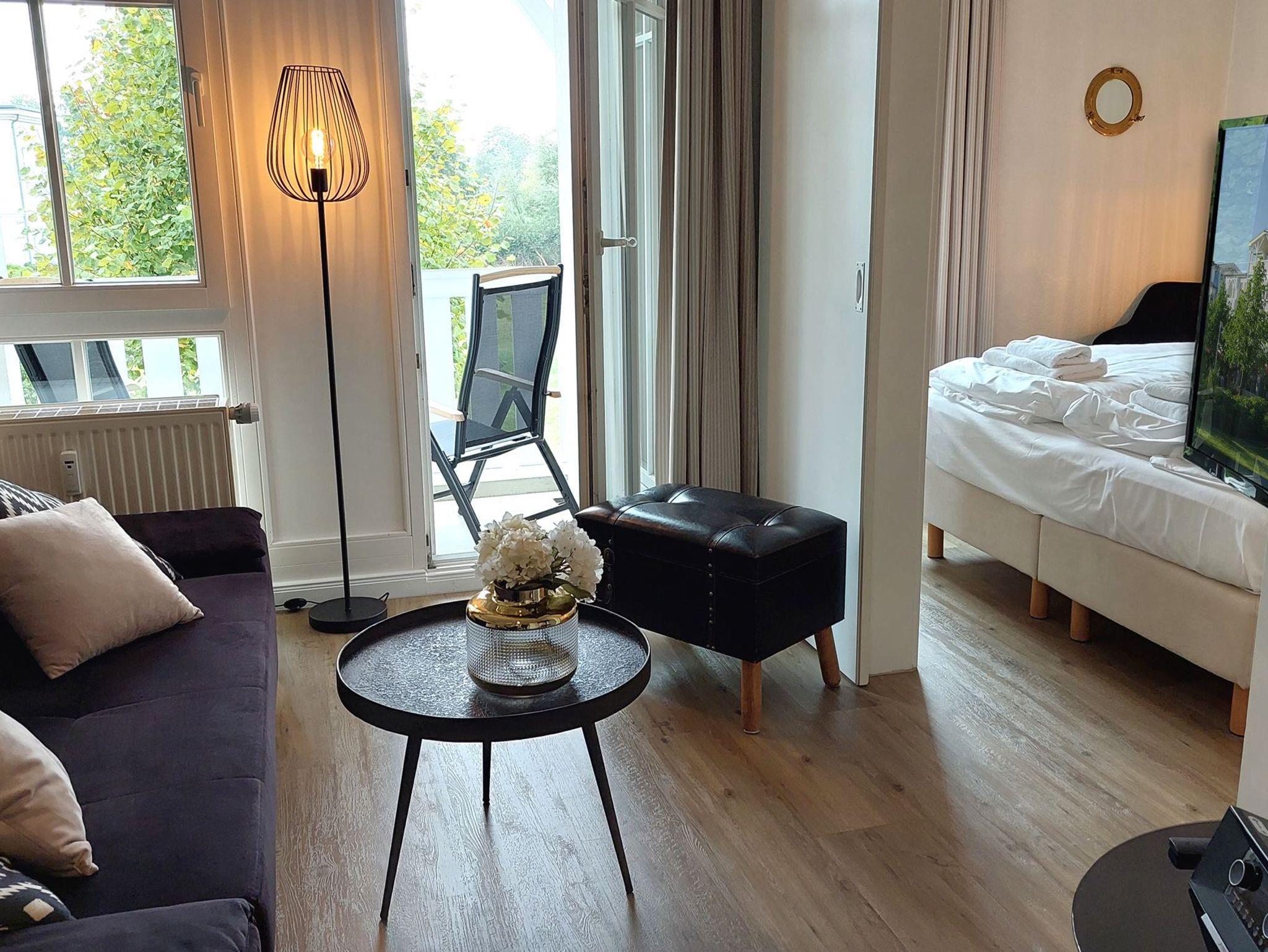 Die moderne 2-Raum-Nichtraucherwohnung Inselträumerei befindet sich im ersten Obergeschoss des Hauses Having im Seepark Sellin.