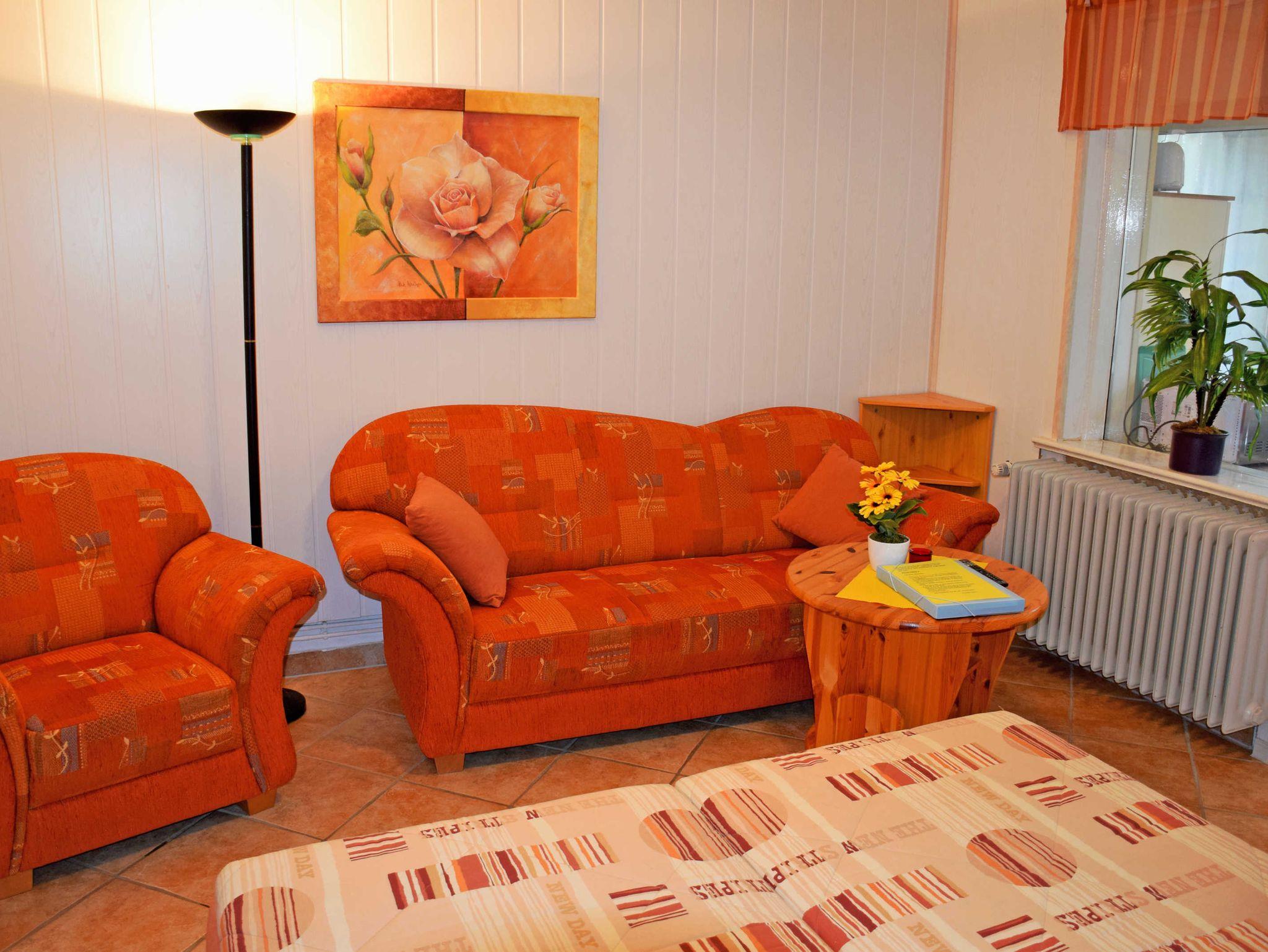 Diese im Untergeschoss des Haupthauses liegende Ferienwohnung (42 qm) ist modern und freundlich eingerichtet und verfügt über einen separaten Wohnungseingang. Sie bietet Platz für vier Gäste, ein kleines Kinderreisebett kann auf Wunsch hier zusätzlich aufgestellt werden. Im Wohnraum steht ein bequemes Doppelbett mit Nachttischen und Leselampen, eine Sitzecke mit Tisch und Sessel sowie Flachbild-TV und Radio. Im Schlafzimmer steht ein weiteres Doppelbett. Durch die Verwendung von Holz und warmen Farben ist es uns gelungen, hier ein angenehmes Ambiente zu schaffen in dem auch Sie sich wohlfühlen werden.