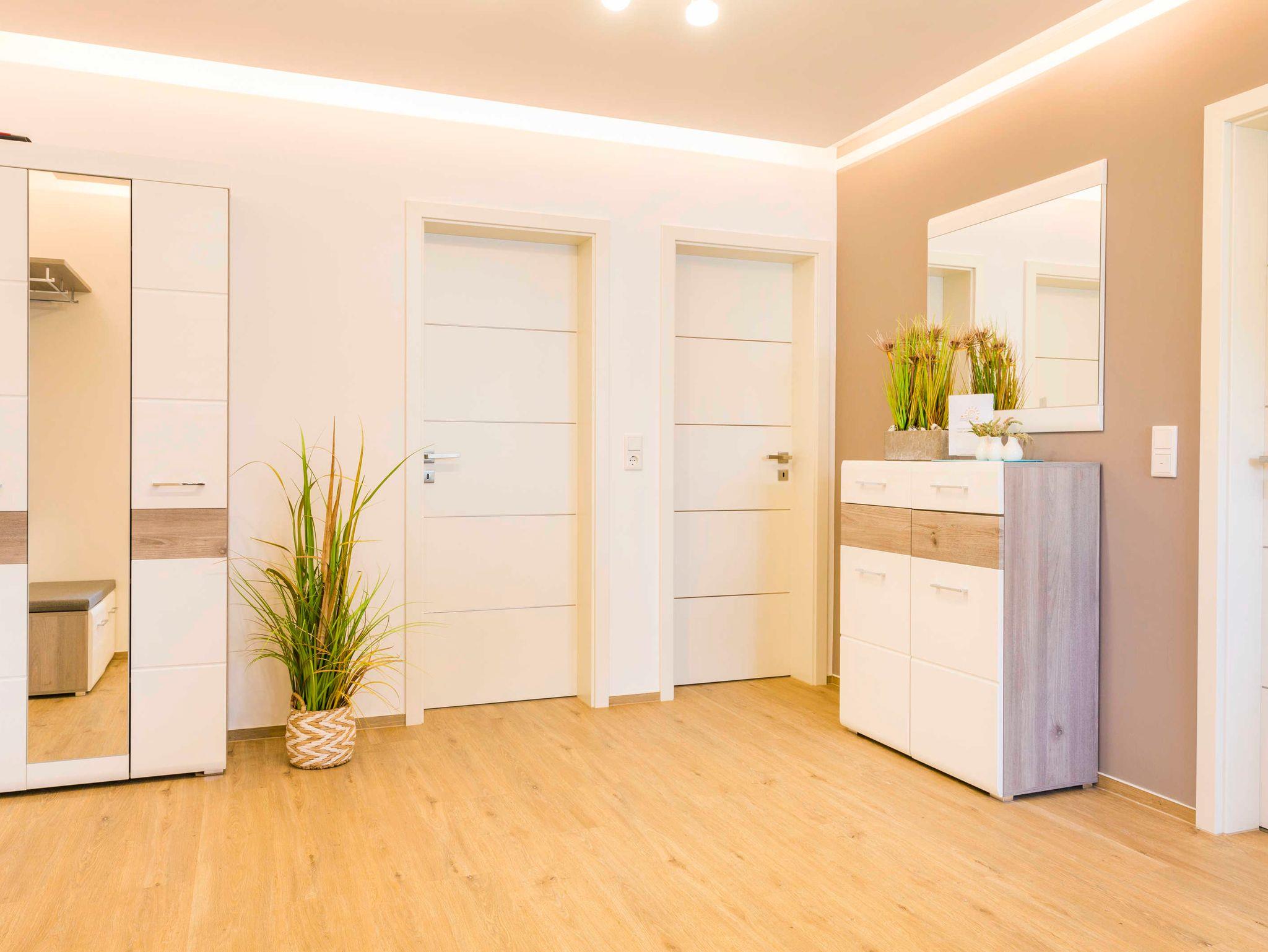 Alle Ferienwohnungen haben einen separaten Eingang. Im Erdgeschoß befindet sich vorn die ebenerdig zu erreichende Ferienwohnung Lachmöwe und daneben die über wenige Stufen zugängliche Ferienwohnung Silbermöwe.