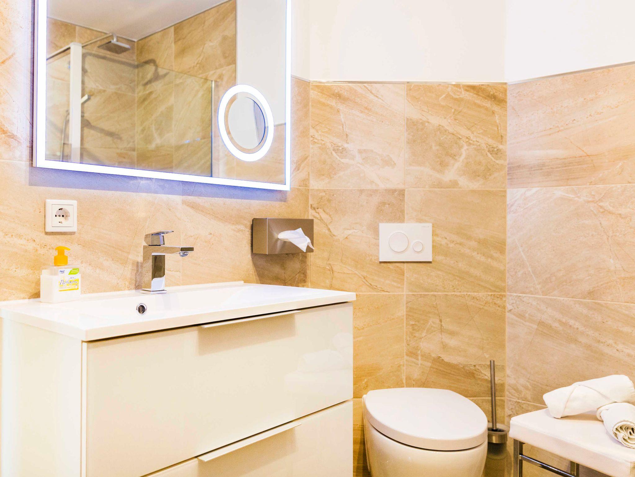 Natürlich gibt es auch einen Handtuchtrockner und einen Fön.