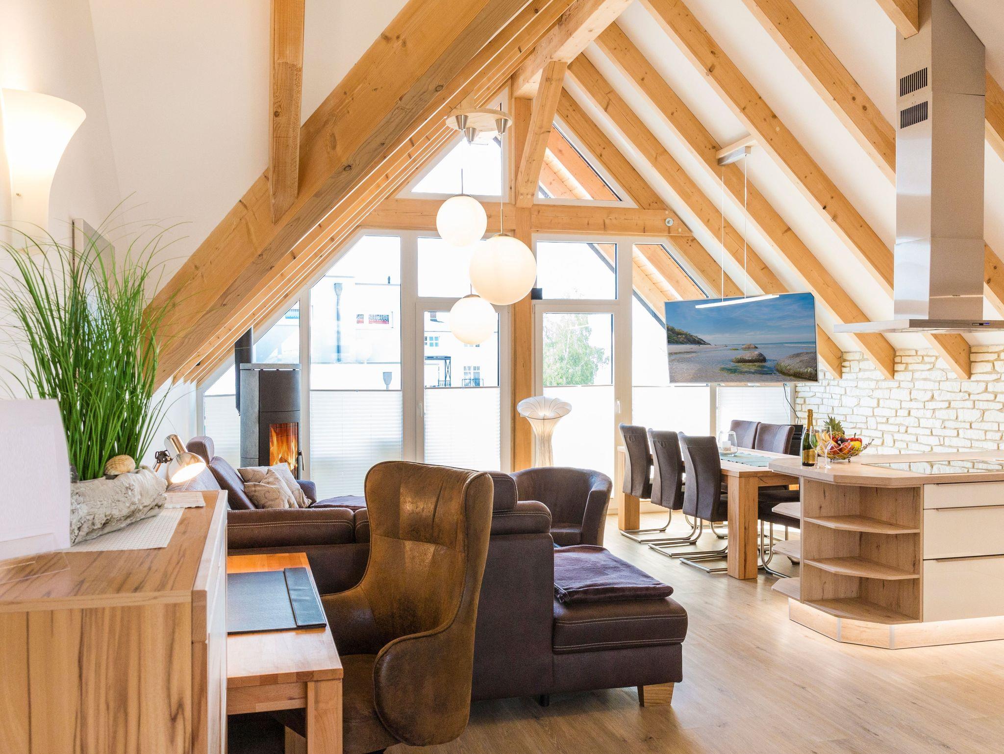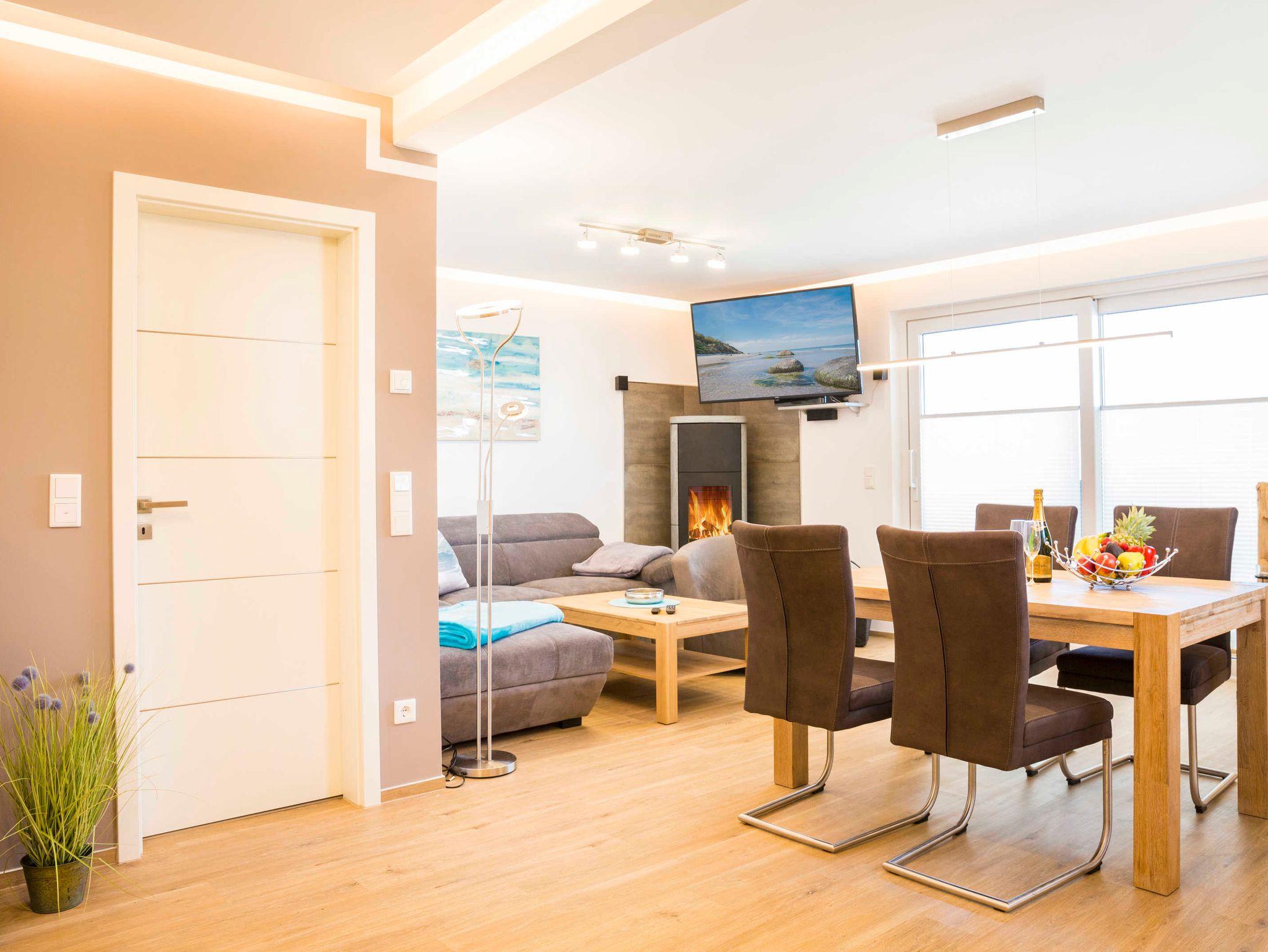 Das Haus Meeresleuchten in Sellin bietet moderne Ferienwohnungen mit Sauna, Kamin und kostenfreiem Zugang zur AHOI Erlebniswelt.