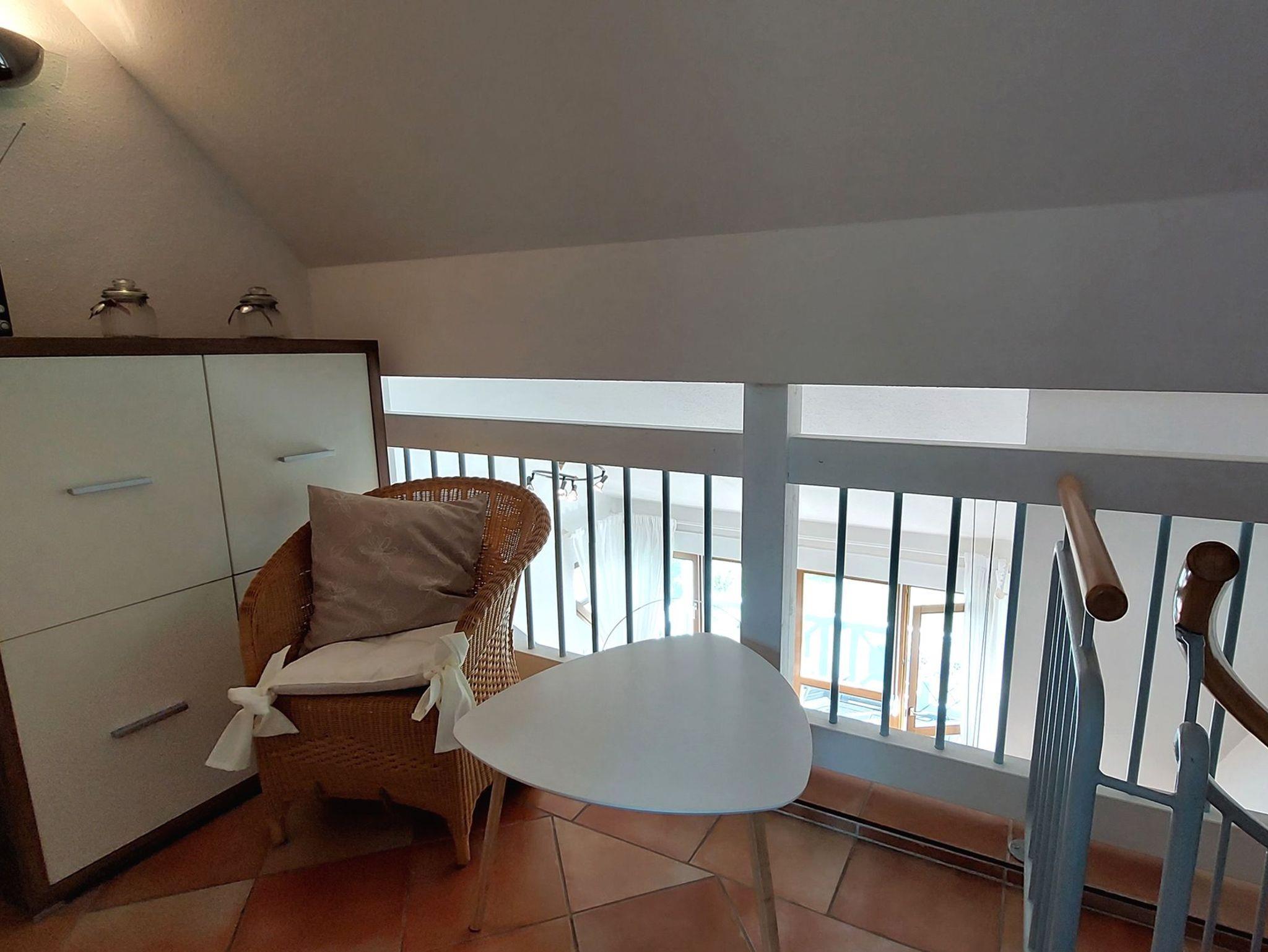 Ebenfalls im Obergeschoß kann man in hellen und gemütlichen Loggia verweilen.