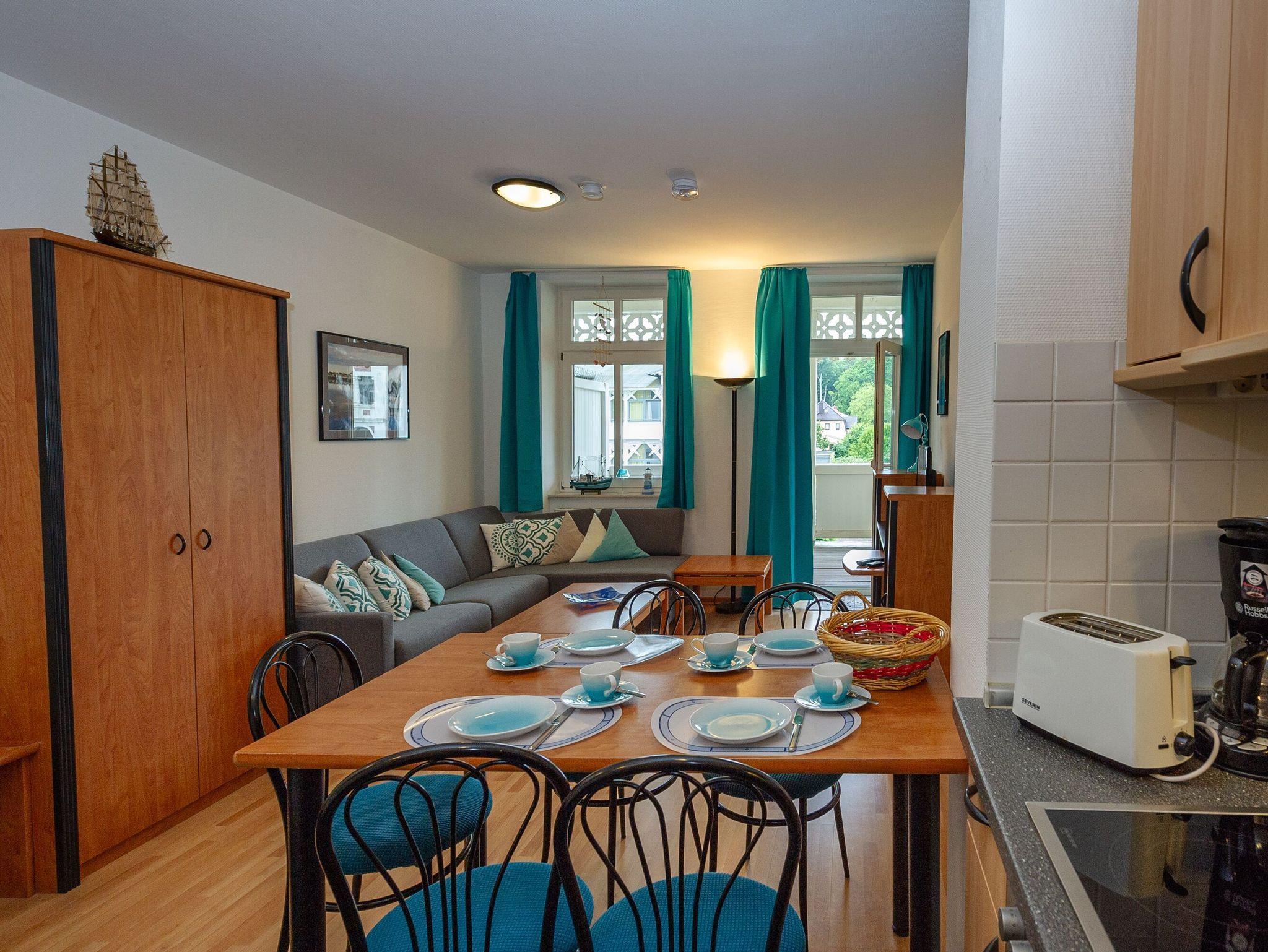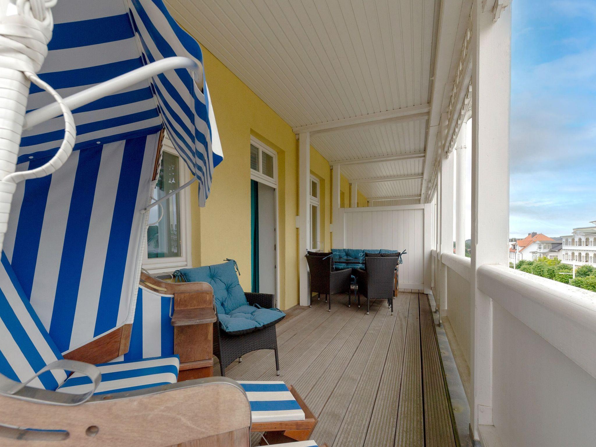 Gemütliches 2-Raum-Appartement mit großem Balkon und Strandkorb in Sellin, ideal für erholsame Tage nahe Hauptstrand und Zentrum.