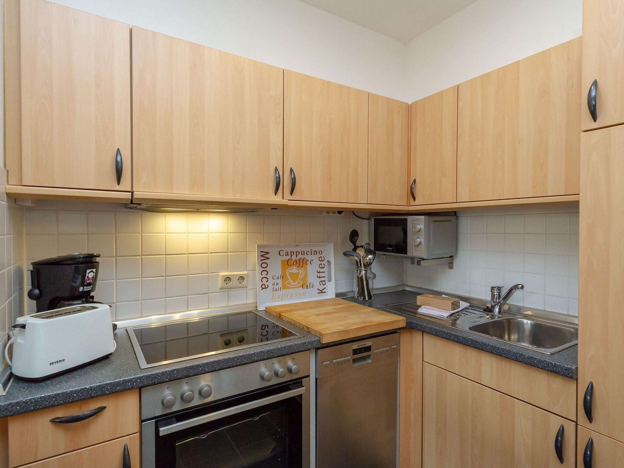 Der kombinierte Wohn- und Essbereich ist mit einer Schlafcouch, die als Aufbettung für zwei Personen genutzt werden kann, einem Flachbild-TV mit DVD-Player, einer Stereoanlage und einer kleinen Bücher- und Spieleauswahl ausgestattet. W-LAN ist kostenfrei verfügbar. In der offenen Küche finden Sie u.a. einen Kühlschrank mit Gefrierfach, eine Mikrowelle, einen Backofen, einen 4-Platten-Herd, eine Spülmaschine, eine Senseo-Kaffeemaschine, eine Filterkaffeemaschine, einen Toaster und weiteres Kleininventar, das die Küchenausstattung komplettiert.