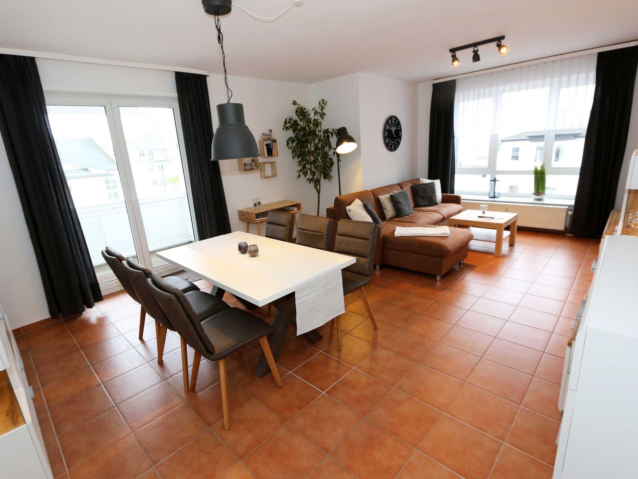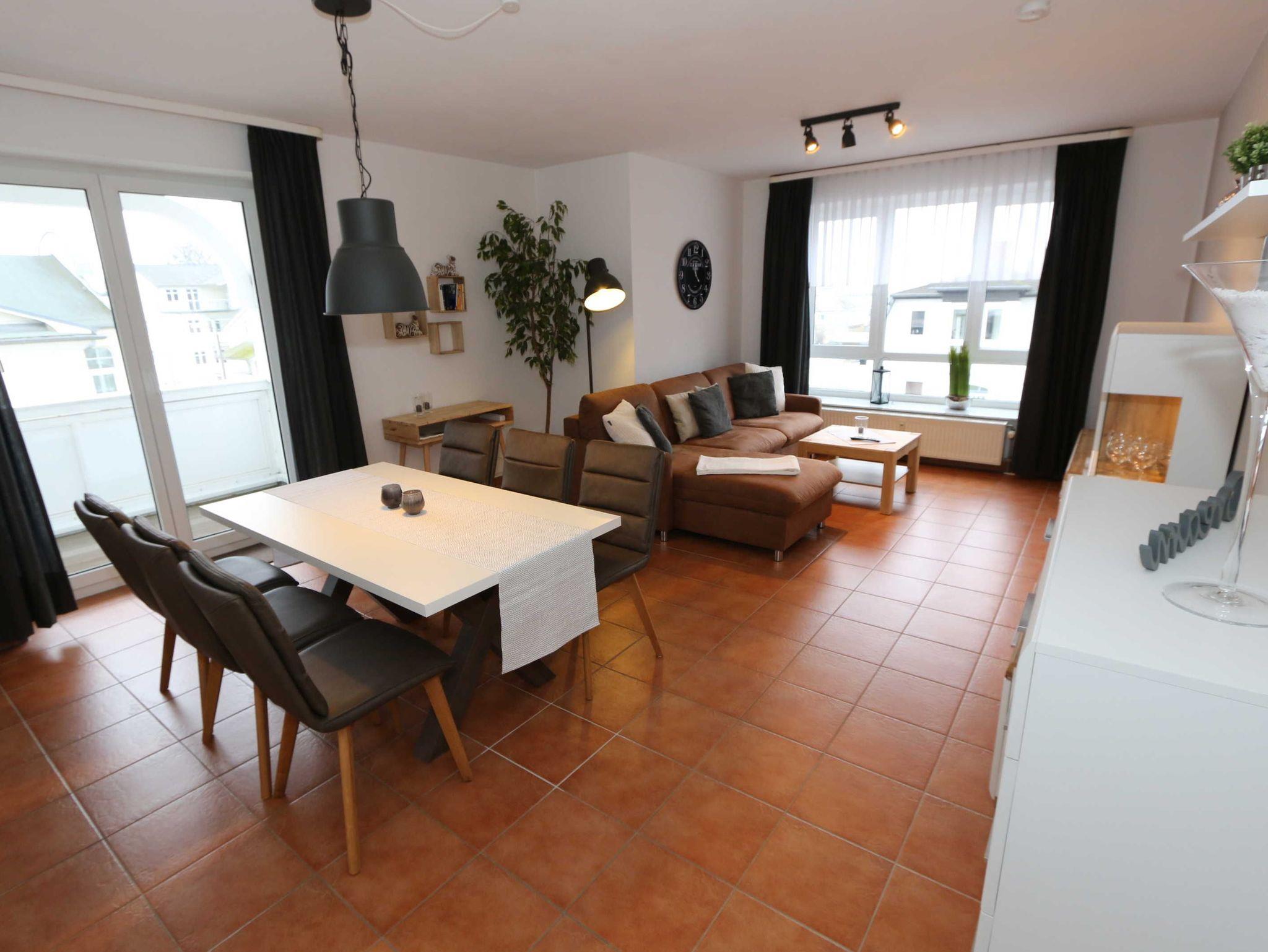Modernes Apartment mit Balkon nahe Ostseestrand und Seebrücke in Sellin, ideal für Radfahrer und Familien.