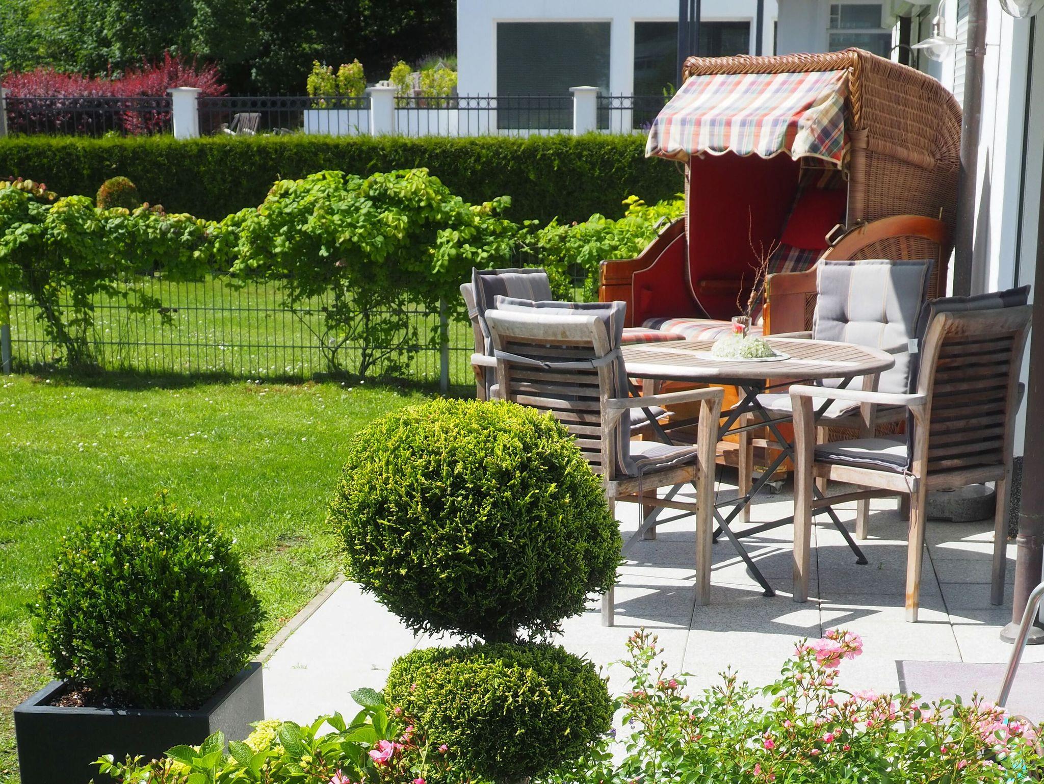 Die Nichtraucherwohnung im Erdgeschoss des Hauses hat eine Wohnfläche von ca. 70 m², ist sehr geschmackvoll eingerichtet und verfügt über zwei Terrassen. Von der möblierten Süd-West-Terrasse mit Garten und Strandkorb können Sie ganztägig die Sonne genießen. Die ebenfalls möblierte Süd-Ost-Terrasse lädt mit Blick auf die Ostsee zu einem sonnigen Frühstück ein.