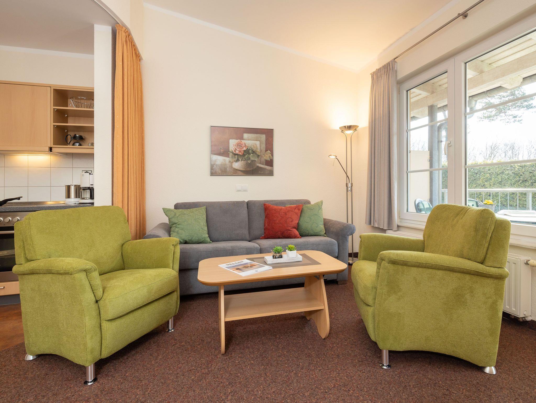 Die freundlich eingerichtete Wohnung 16 in der Ferienanlage Margaretha ist ca. 58 m² groß und für bis zu 4 Personen ausgelegt.