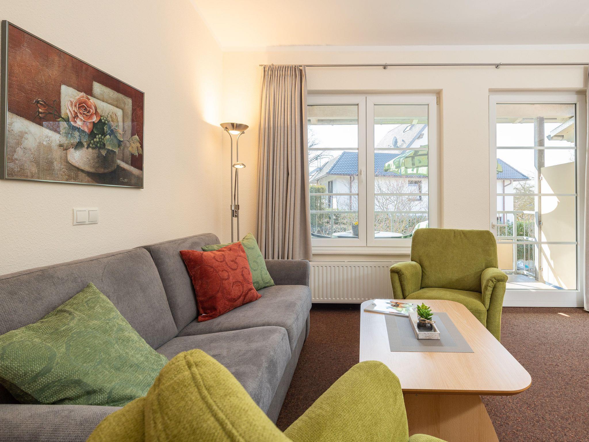 Die Ferienwohnung Margaretha in Sellin bietet helle 58 m² mit Balkon, WLAN und behindertenfreundlicher Ausstattung.