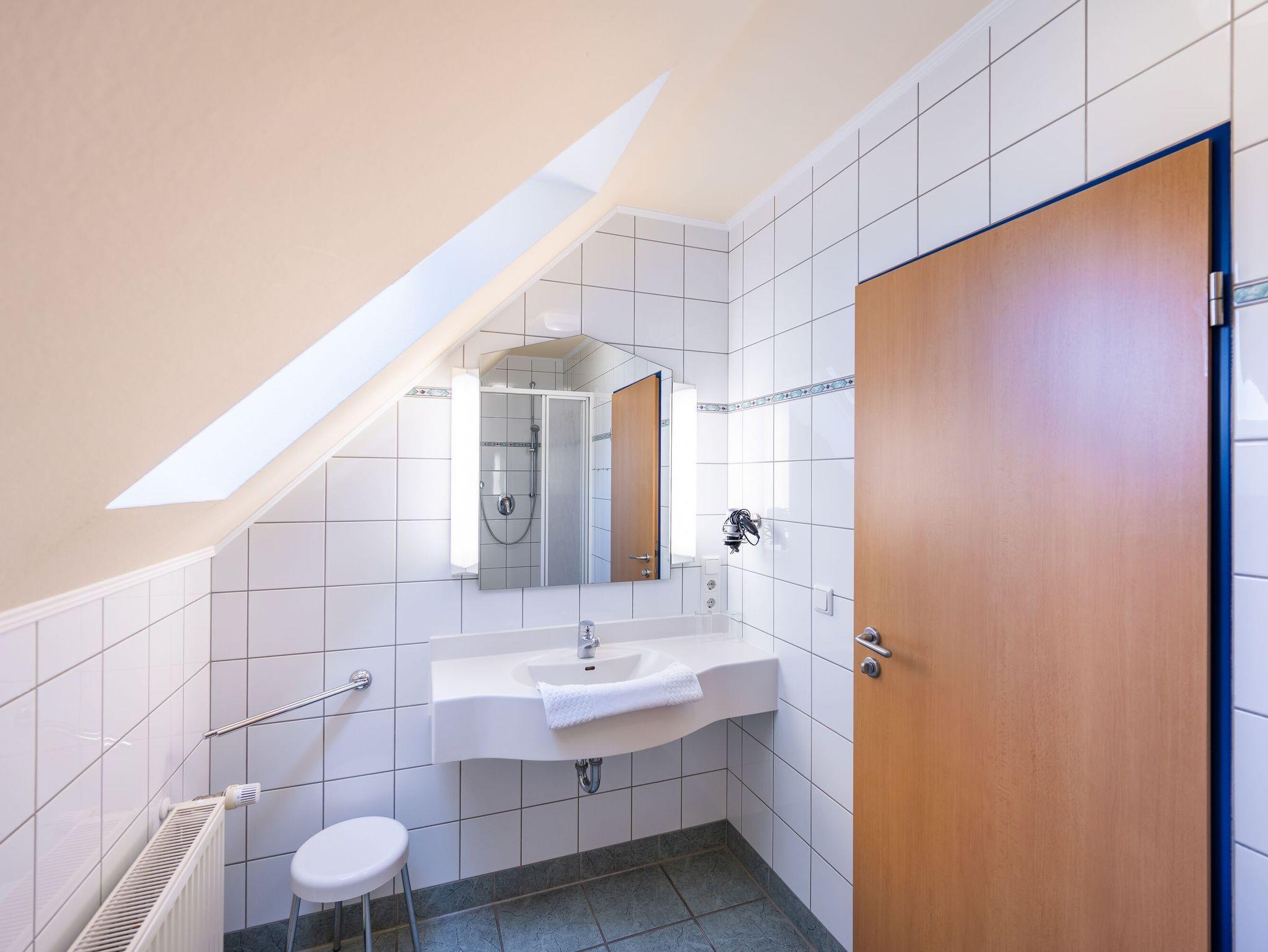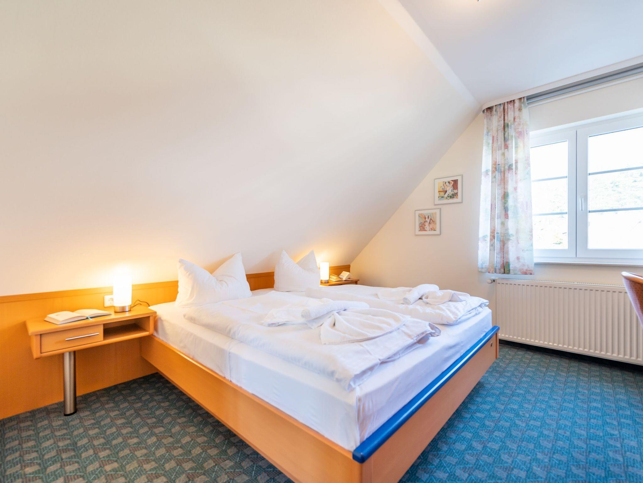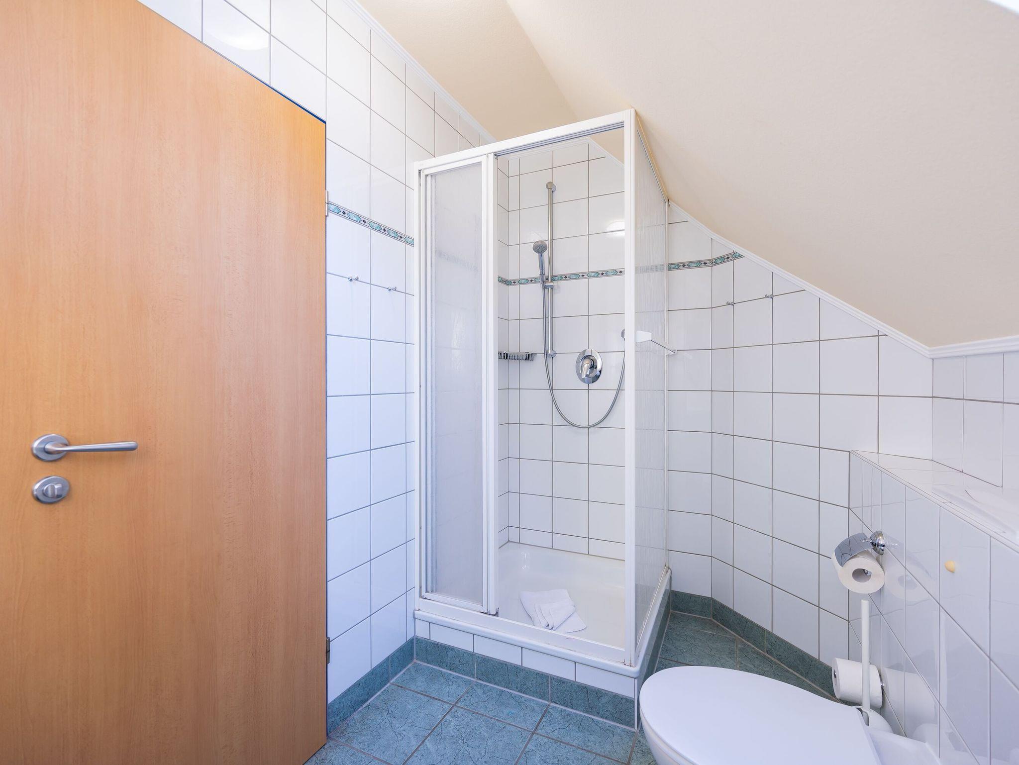 Im Schlafbereich steht ein komfortables Doppelbett, ein geräumiger Kleiderschrank und ein kleiner Schreibtisch bereit. Im Badezimmer mit Fenster befindet sich eine Dusche und ein WC.