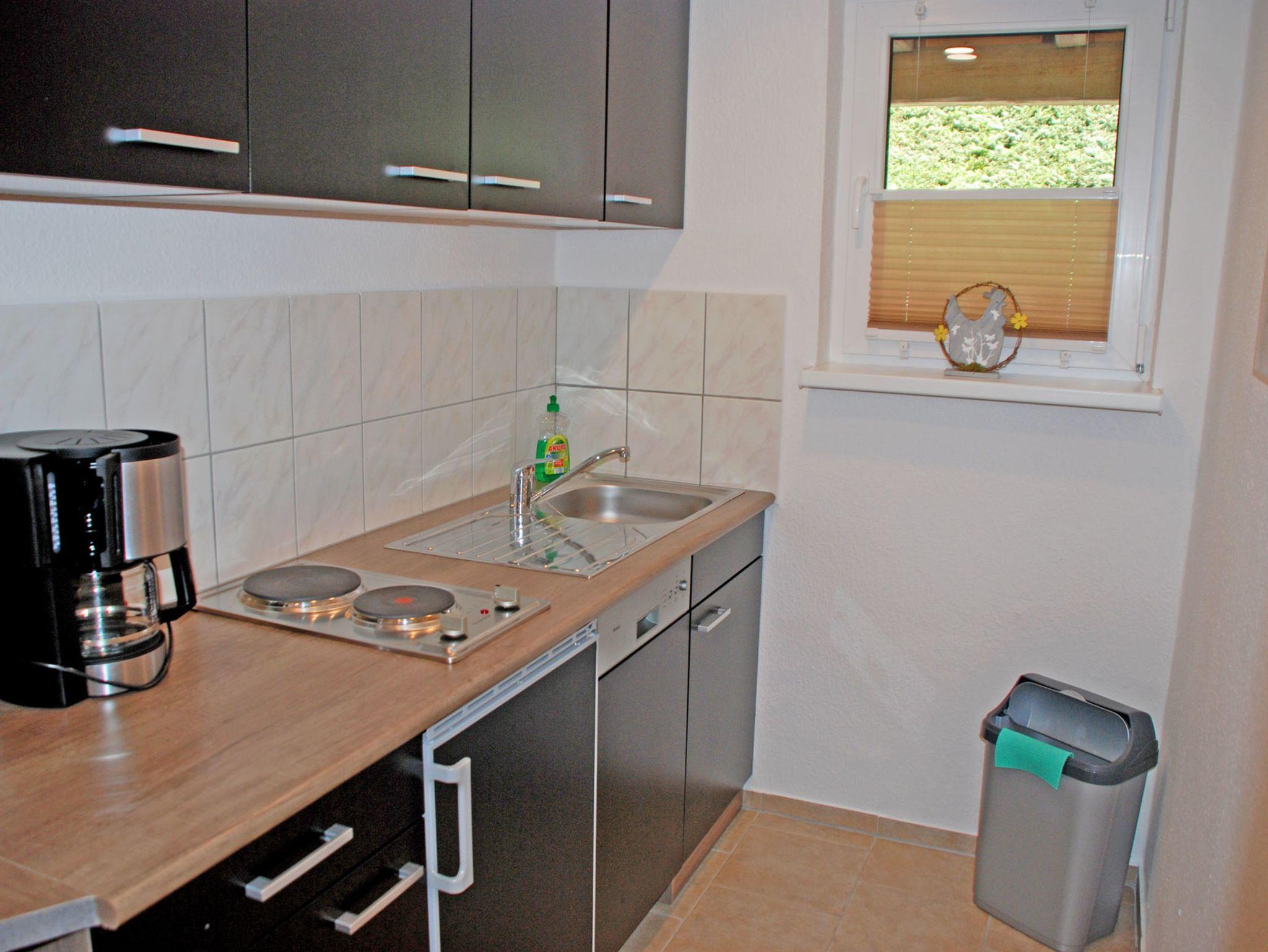 Die Soutterain-Ferienwohnung ist liebevoll eingerichtet und verspricht eine angenehme Wohlfühlatmosphäre. Sie verfügt über eine moderne Küch mit Kochplatten, Kaffeemaschine, Geschirrspüler, Wasserkocher, Toaster, Kühlschrank. Im Wohnbereich befindet sich jeweils ein Flachbildfernseher.