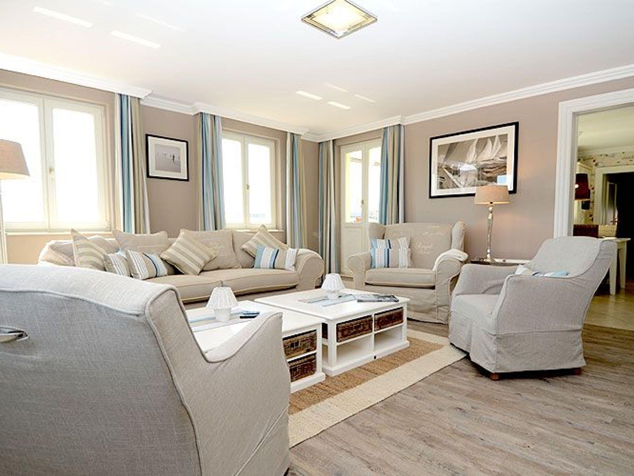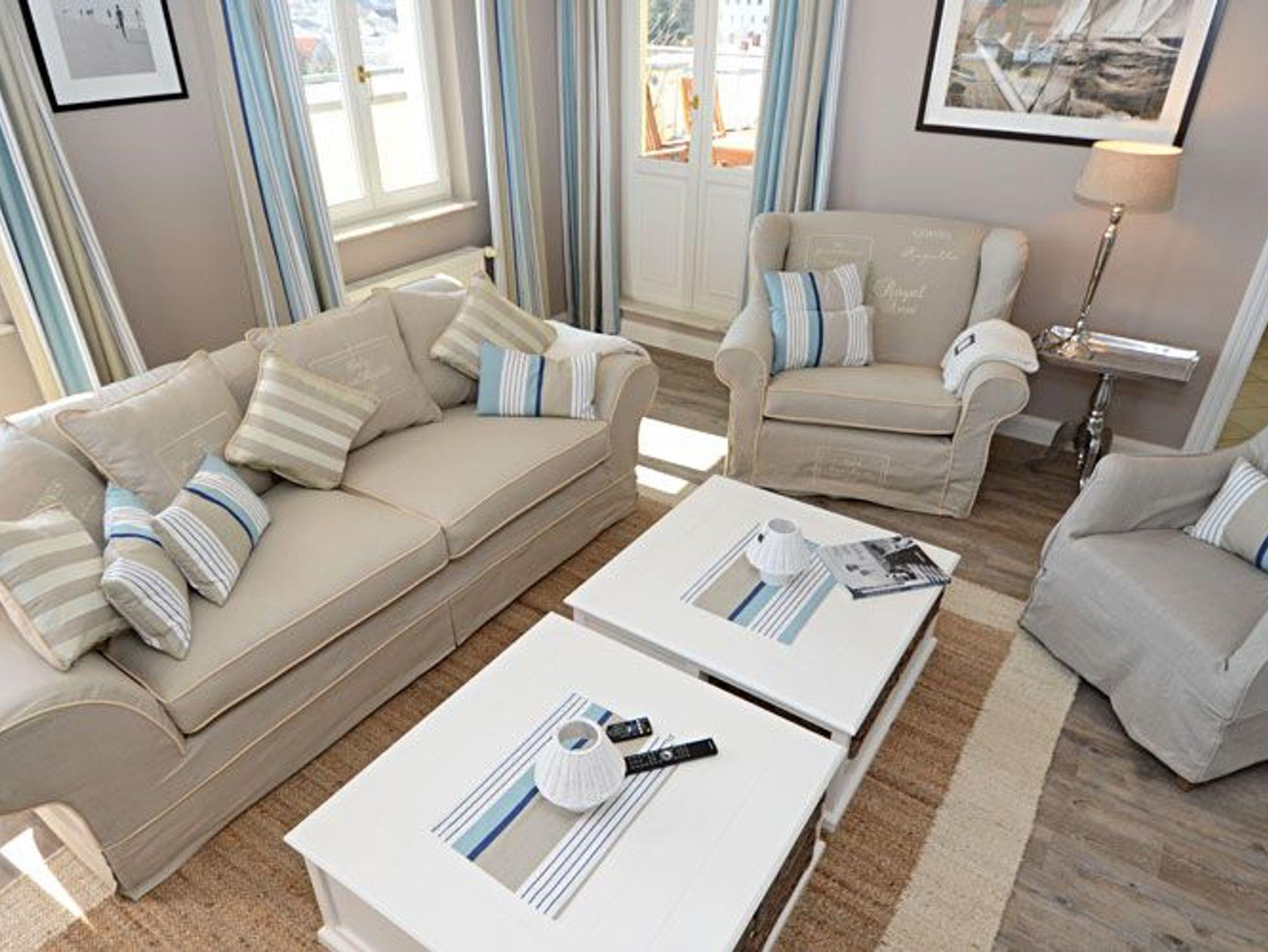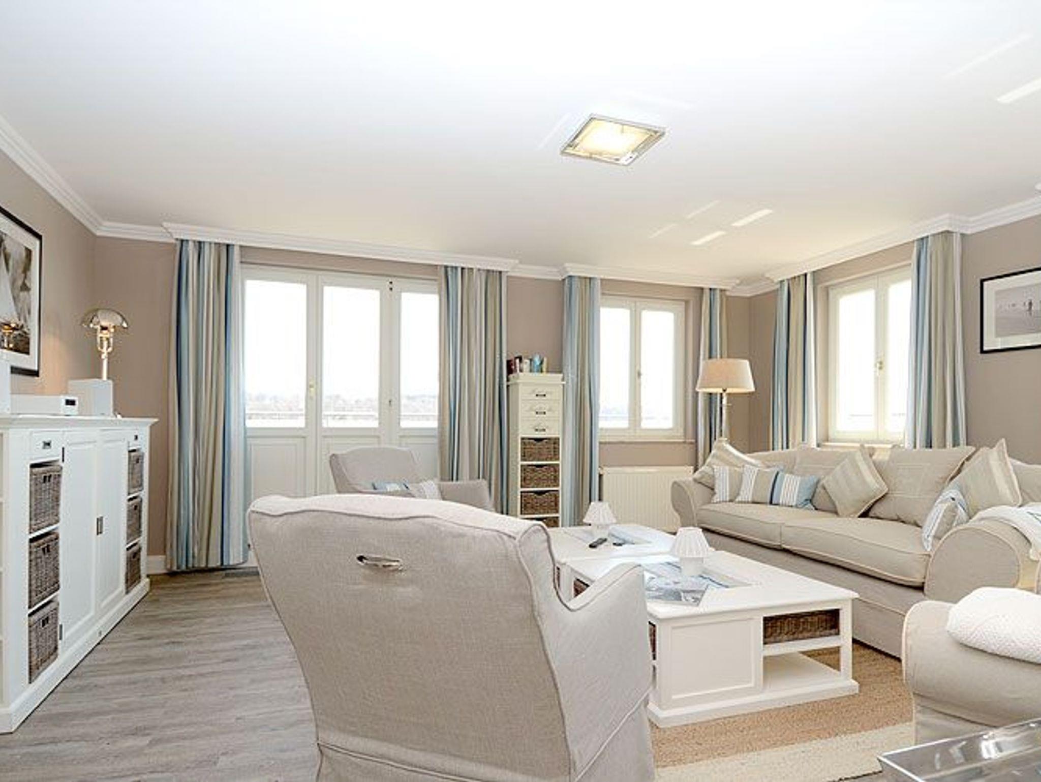 Wenn Sie für Ihr Wohlbefinden viel Raum brauchen, dann ist dieses Penthouse der ideale Ort für Ihren Urlaub. Die wunderschönen Landhausmöbel, ausgesuchte Stoffe und die warmen Erdtöne schaffen mit den leicht maritimen Akzenten ein ganz einzigartiges Wohlfühlambiente.