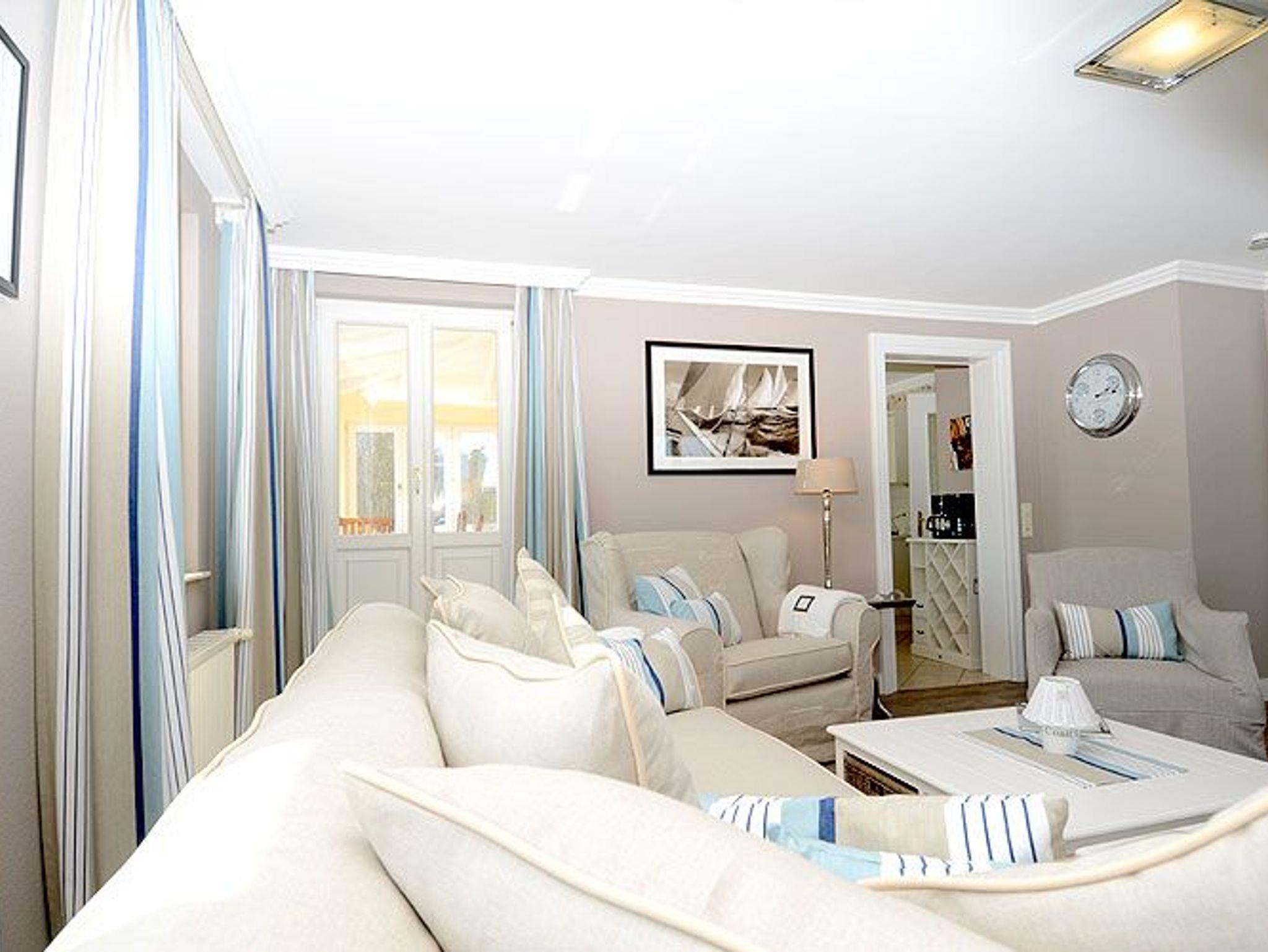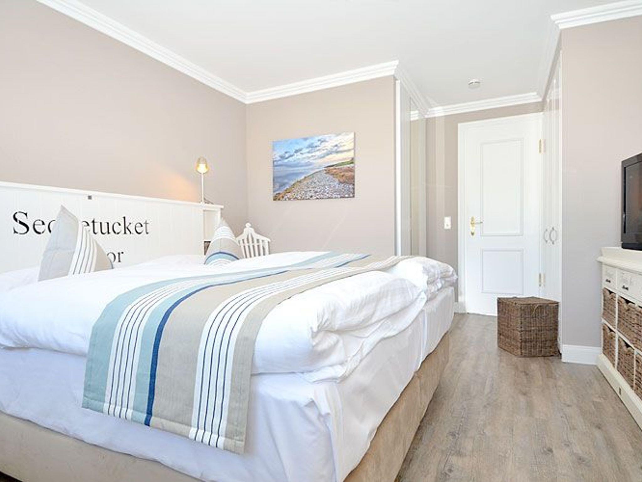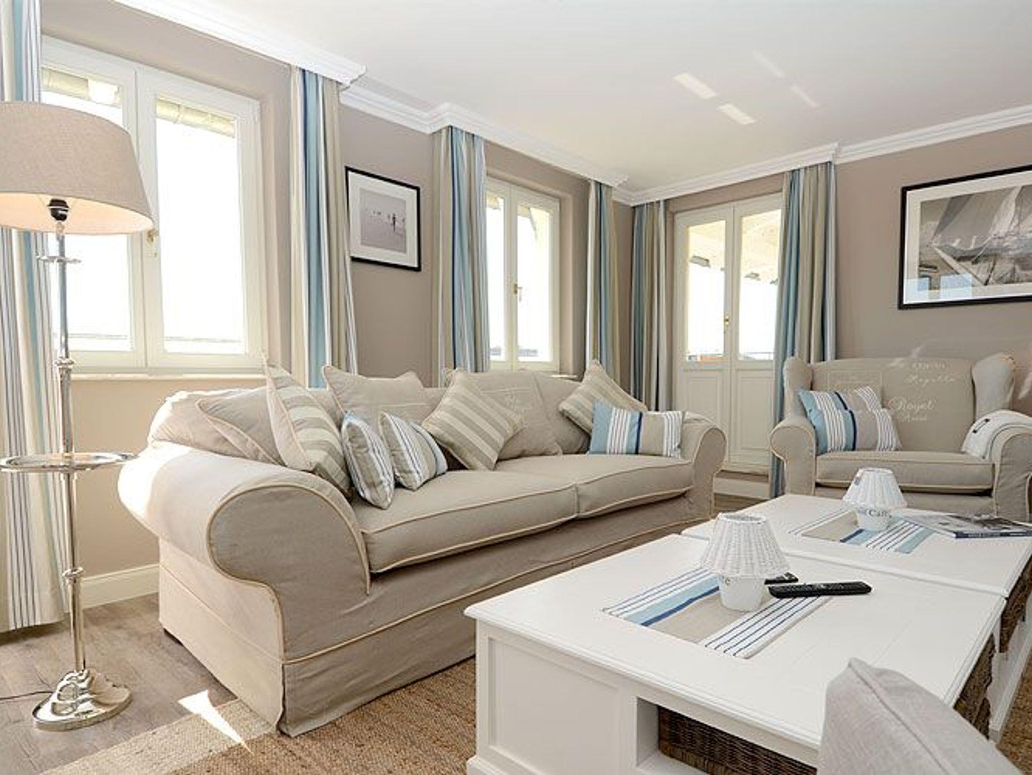 Wenn Sie für Ihr Wohlbefinden viel Raum brauchen, dann ist dieses Penthouse der ideale Ort für Ihren Urlaub. Die wunderschönen Landhausmöbel, ausgesuchte Stoffe und die warmen Erdtöne schaffen mit den leicht maritimen Akzenten ein ganz einzigartiges Wohlfühlambiente.