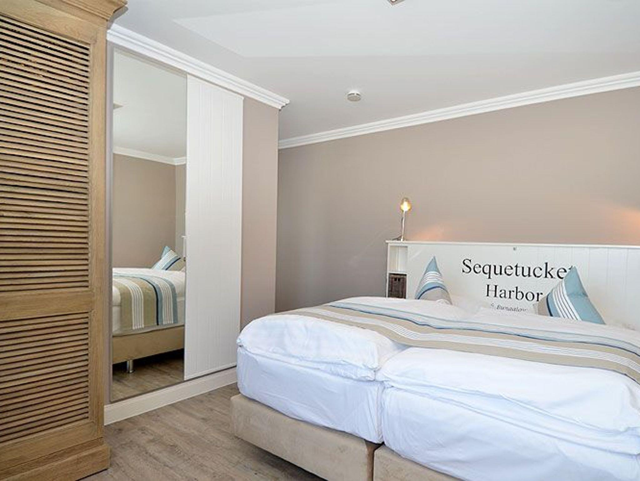 Die beiden Schlafzimmer mit 5 Star-Deluxe-Boxspring-Doppelbetten (1,80 x 2,00 m) verfügen jeweils über ein eigenes Bad einmal ein Bad mit Dusche und WC und einmal ein Bad mit WC, Badewanne und Erlebnisdusche mit Massagedüsen.