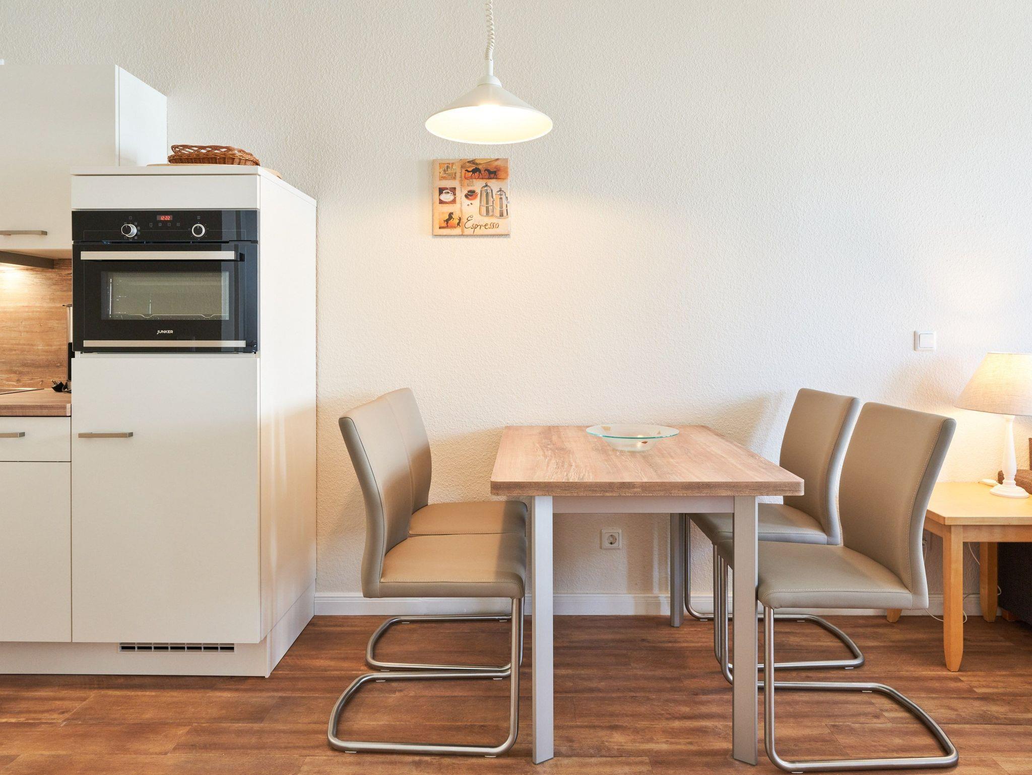 In der gemütlichen Wohnung erwartet Sie ein TV-Flachbild, auf dem Sie sich entspannt zurücklehnen können. Für eine gute Tasse Kaffee steht Ihnen eine Kaffeemaschine zur Verfügung. Auch eine Mikrowelle und ein Geschirrspüler gehören zur Ausstattung. Die Bettwäsche ist bereits inklusive und auf dem Balkon können Sie die frische Ostseeluft genießen. Die offene Wohnküche lädt zum gemeinsamen Kochen und Essen ein.