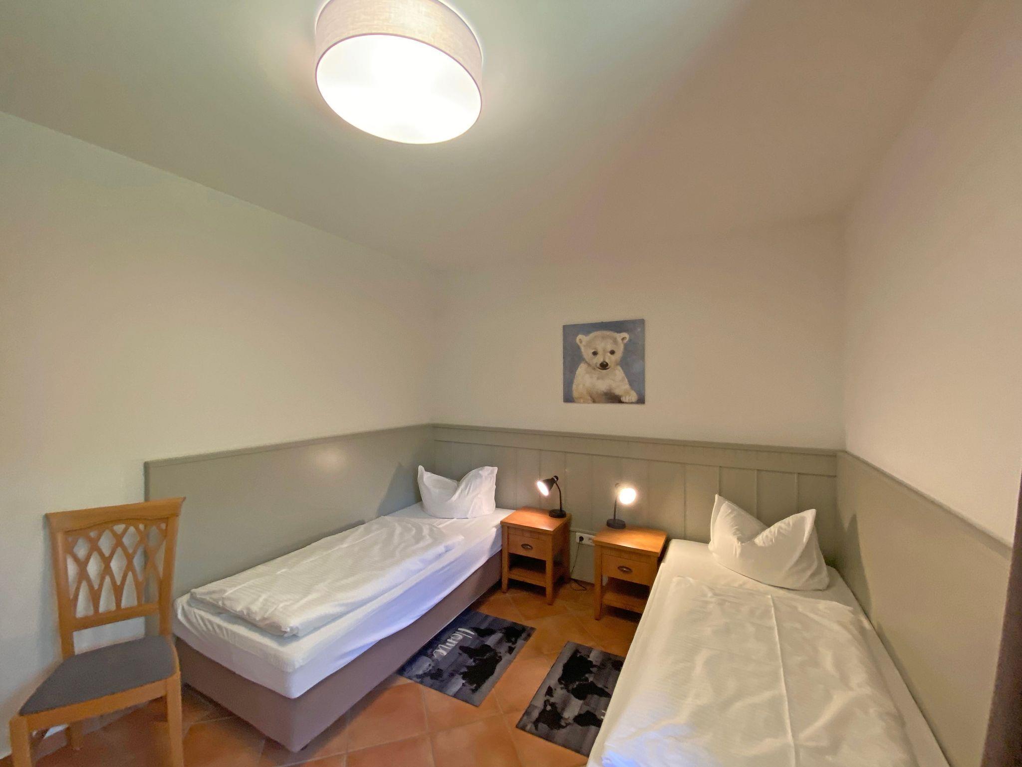 Die Nichtraucherwohnung mit ca. 77qm besticht durch ihre komfortable Raumaufteilung. Die im Parterre liegende Ferienwohnung Nr.02 bietet ausreichend Platz für 2 bis 4 Erwachsene + 1 Kleinkind bis 3 Jahre im Kinderreisebett. Im Wohnbereich wird die Unterhaltungstechnik durch einen modernen 42 Zoll LCD-TV und ein CD bzw. Blu-Ray-Player abgerundet. Auch im Urlaub müssen Sie nicht auf einen Internetanschluss (W-LAN) verzichten. Dieser ist für Sie inklusive. Für die Gemütlichkeit wurde der Wohnbereich mit Massivmöbeln, einer Stehlampe, zwei Sessel und zwei Couchen ausgestattet. Die bestuhlte und große Terrasse (Süden) mit einem Sonnenschirm können Sie vom Wohnbereich erreichen. Sie lädt bei einem Glas Wein zum Entspannen ein. Die angrenzende Küchenzeile verfügt über eine Spülmaschine, eine Mikrowelle, Ceranfeld mit Backofen, Kühlschrank mit Eisfach, Wasserkocher, Toaster, Kaffeemaschine und diverse Küchenutensilien. Bei Ihren Mahlzeiten können Sie vom Esstisch aus den Blick auf den Selliner See genießen. Das 1. Schlafzimmer wurde mit einem Doppelbett (1,80m x 2,00m), Nachtischablagen sowie einen Kleiderschrank ausgestattet. Das 2. Schlafzimmer verfügt über 2 Einzelbetten (0,90m x 2,00m) auch als Doppelbett stellbar, Nachttischablagen und einen Kleiderschrank. Im Tageslichtbad können Sie in einer Badewanne relaxen. Durch eine separate Dusche, einen großen Waschtisch, einen Fön und ein WC wird der Sanitärbereich abgerundet. Fensterläden und Vorhänge dienen zum Verdunkeln der Räumlichkeiten. In allen Räumlichkeiten finden Sie Nachtspeicheröfen. Im Abstellraum finden Sie unter anderem einen Wäscheständer, zwei Sonnenliegen sowie Reinigungsutensilien. Haustiere sind nicht erlaubt. Ein PKW-Stellplatz Nr.02 befindet sich direkt auf dem Grundstück. Ihre mitgebrachten oder geliehenen Fahrräder können Sie nach Verfügbarkeit im abschließbaren Fahrradraum unterstellen. Die Erstausstattung eines Wäschepaketes (komplette Bettwäsche, 1 Duschhandtuch, 1 kleines Handtuch) können Sie bis 14 Tage vor Anreise gegen einen Aufpreis dazu buchen oder durch eigene ergänzen. Ab 2 gebuchten Paketen erhalten Sie einmalig 1 Geschirrhandtuch und 1 Duschvorleger hinzu.