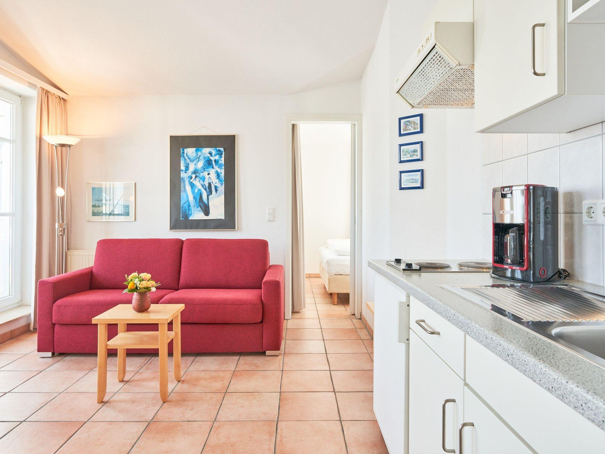 Gemütliche Ferienwohnung im Seepark Sellin mit Balkon, moderner Ausstattung und idealer Lage nahe Strand und Einkaufsmöglichkeiten.