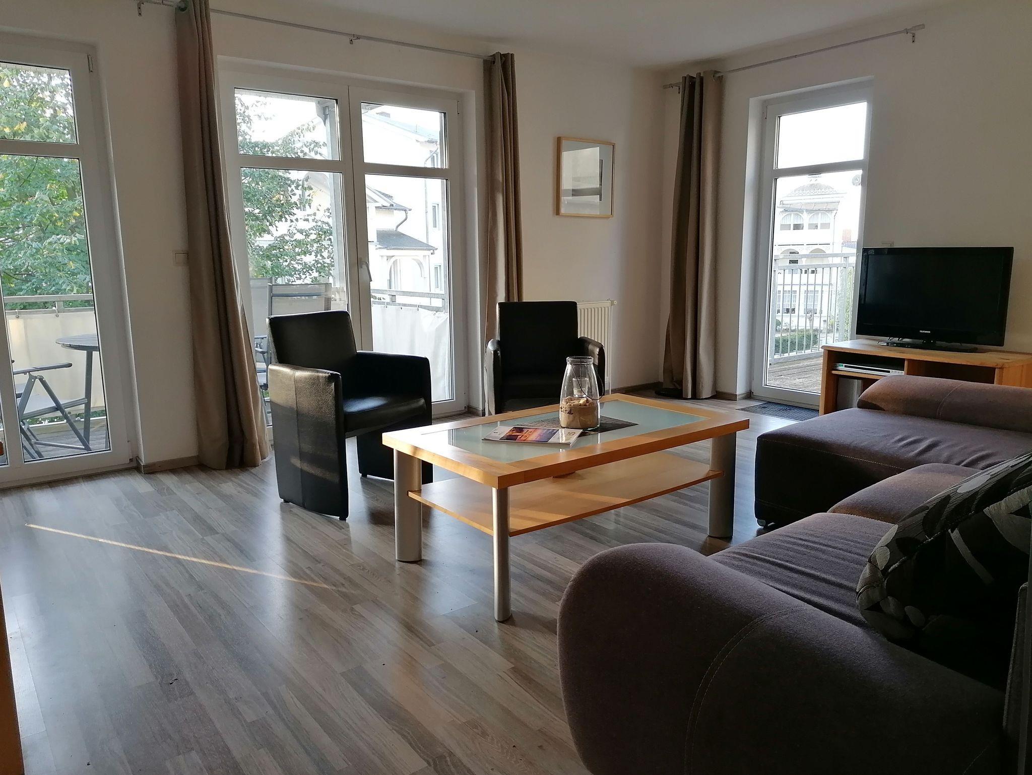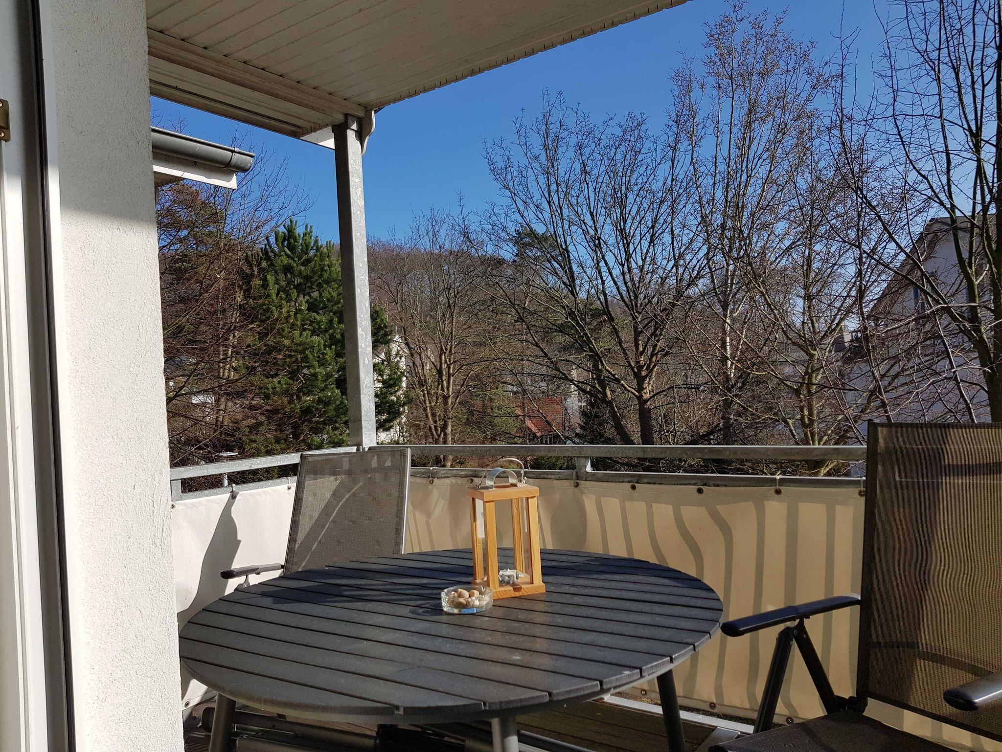 Geräumige 2-Zimmer-Ferienwohnung mit Balkon und großer Dachterrasse nahe Kurpark und Ostseestrand.