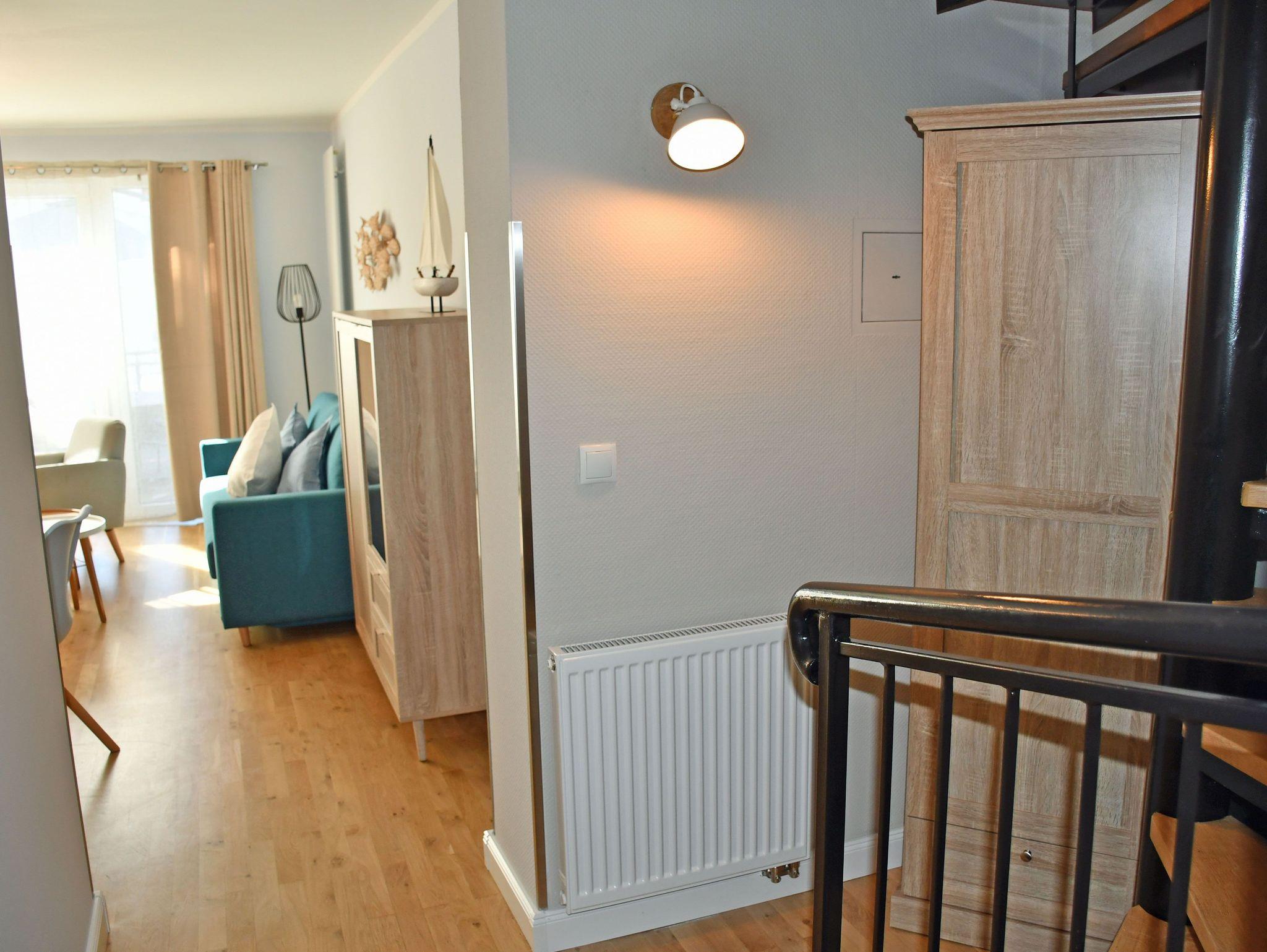 Unsere Maisonett-Ferienwohnungen bieten Platz für 5 Gäste und ein Kind bis 3 Jahre im Kinderreisebett, sie wurden 2022 komplett renoviert und neu im modernen nördlich maritimen Stil eingerichtet.