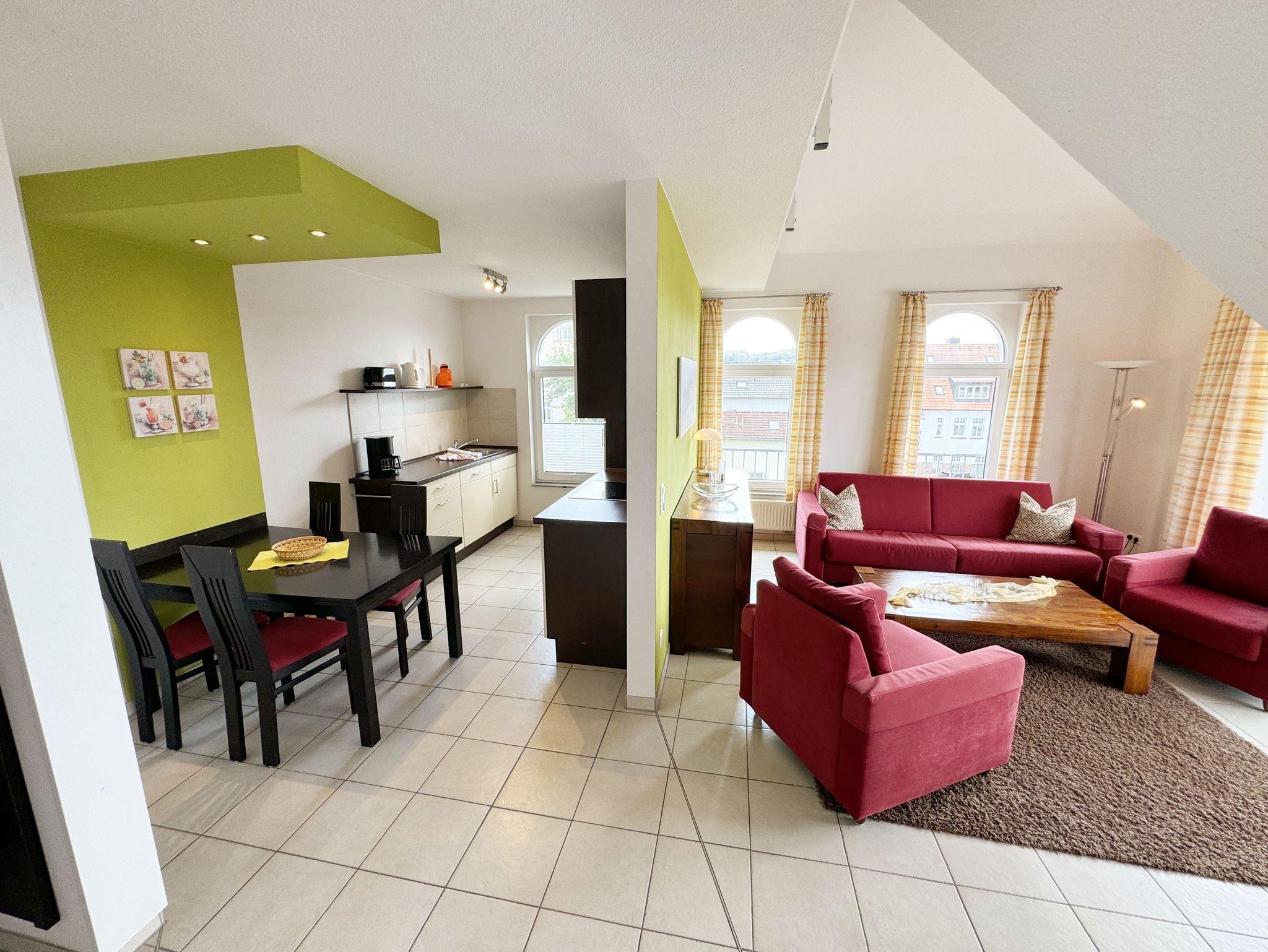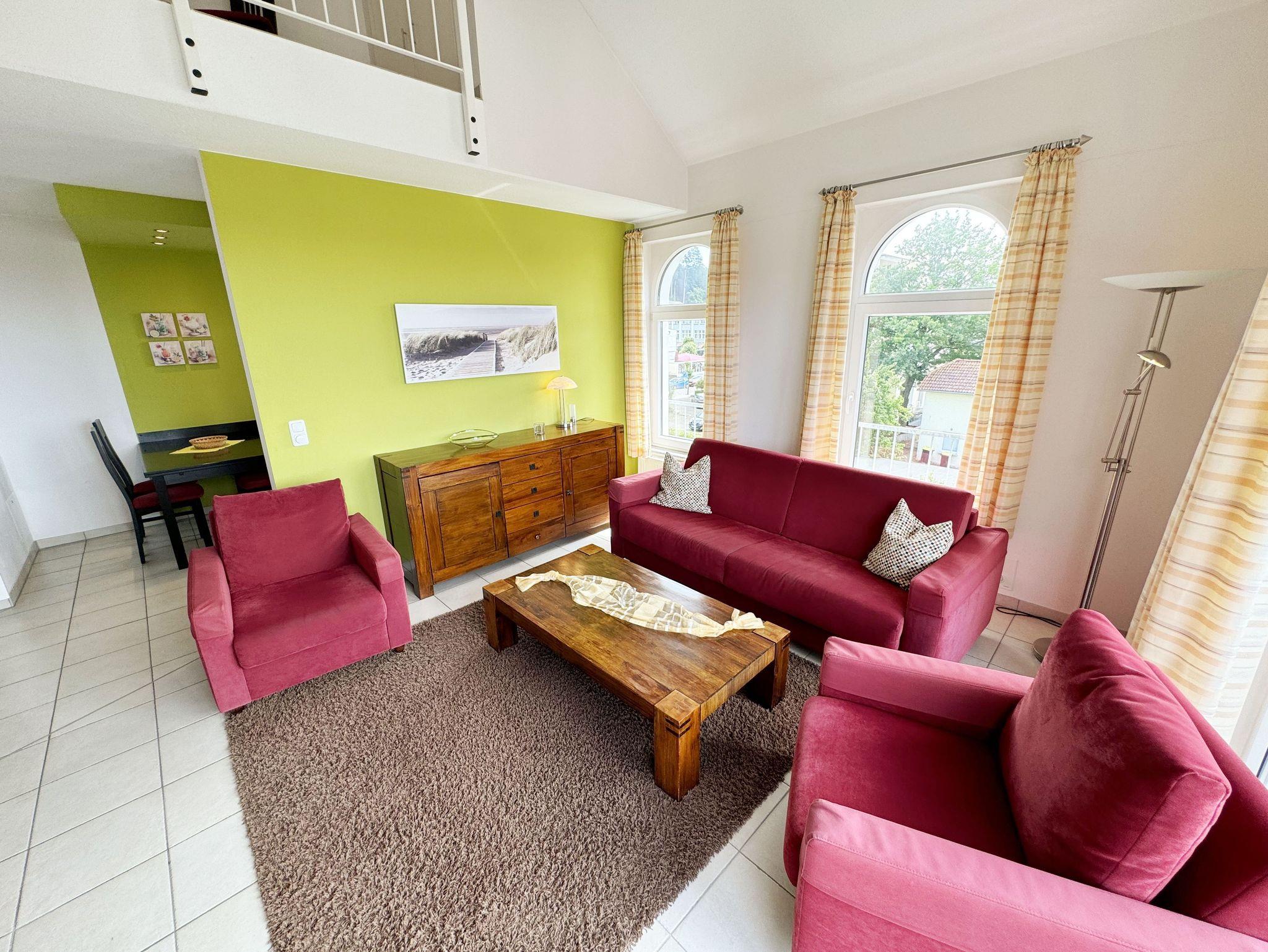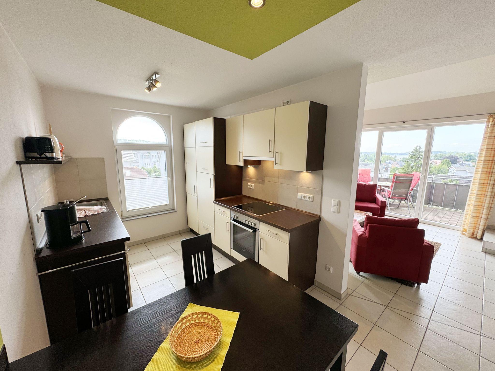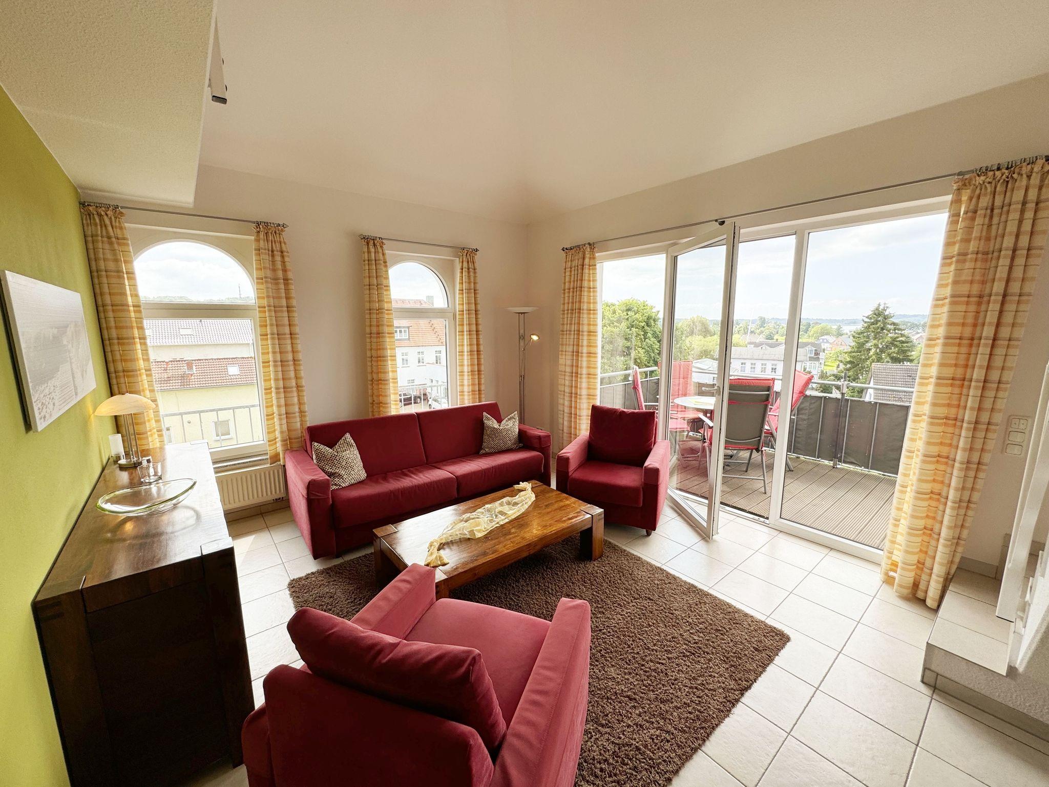 Modernes Ferienapartment mit Balkon und Panoramablick im Ostseebad Sellin, nahe Strand und Seebrücke.
