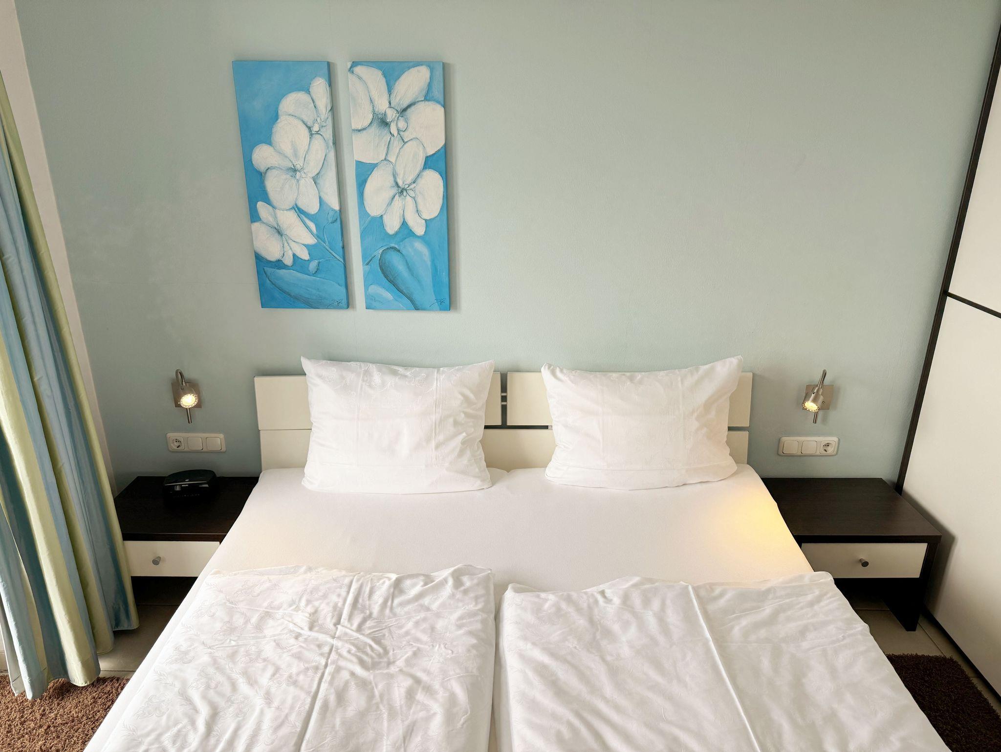 Die großzügige und lichtdurchflutete Maisonette / Ferienwohnung Nr. 10 bietet Ihnen ausreichend Platz für max. 4 Erwachsene. Die Wohnung befindet sich im Obergeschoss und ist bequem per Fahrstuhl von der Tiefgarage aus zu erreichen. Die Wohnung ist als Nichtraucherwohnung deklariert und erstreckt sich mit Ihren 72 qm über 2 Etagen. Der sehr gemütliche eingerichtete Wohnbereich ist der Dreh- und Angelpunkt der Wohnung. Hier befindet Sie eine hochwertige Couch, 2 Sessel, Couchtisch, eine Leselampe sowie einem Smart-TV (32 Zoll) mit DVD-Player/Heimkino und Internetanschluss per WLAN (inklusive). Angrenzend an den Wohnbereich finden Sie eine moderne und komplett ausgestattete Küchenzeile mit Geschirrspüler, Mikrowelle, Kühlschrank mit Eisfach, Ceranfeld, Backofen, Kaffeemaschine, Toaster, Wasserkocher, diversen Küchenutensilien und einen Holzesstisch mit 5 Stühlen. Das 1. Schlafzimmer finden Sie auf der gleichen Ebene wie den Wohn- & Essbereich. Das Schlafzimmer verfügt über ein Doppelbett (1,80m x 2,00m) mit verstellbaren Lattenrosten, Nachtischkonsolen, Verdunklungsmöglichkeit und großem Kleiderschrank mit Spiegel. In dem 1. Bad finden Sie eine Dusche, WC, Waschtisch, Kosmetikspiegel, Fön, Fußbodenheizung und einen Handtuchtrockner für Ihren alltäglichen Gebrauch, wieder. Um Ihren Urlaubstag in Ruhe ausklingen zu lassen, erreichen Sie vom Wohnbereich den begehbaren Süd-Westbalkon mit herrlichem Blick auf das Ostseebad Sellin. Durch die im Wohnbereich vorhandene Treppe gelangen Sie in das 2. Schlafzimmer, wo Sie ein Doppelbett (1,80m x 2,00m) mit verstellbaren Lattenrosten, Nachtischkonsolen, Verdunklungsmöglichkeit, Smart-TV und großem Kleiderschrank mit Spiegel wiederfinden. Angrenzend befindet sich das 2. Bad mit Dusche, WC, Waschtisch, Handtuchtrockner und einer Fußbodenheizung. Im Gemeinschafskeller können Sie gegen einen Aufpreis die gemeinschaftliche Waschmaschine und den Trockner nutzen. Die Wertmarken können Sie auf Nachfrage während Ihres Urlaubes erwerben. Die Erstausstattung eines Wäschepaketes (komplette Bettwäsche, 1 Duschhandtuch, 1 kleines Handtuch) können Sie bis 14 Tage vor Anreise gegen einen Aufpreis dazu buchen oder durch eigene ergänzen. Ab 2 gebuchten Paketen erhalten Sie einmalig 1 Geschirrhandtuch und 1 Duschvorleger hinzu. Ein eigener Pkw-Stellplatz Nr. 10 und ein Fahrradraum gehören zur Wohnung und befinden sich in der hauseigenen Tiefgarage (Einfahrtshöhe 2,10 m). Haustiere sind in der Wohnung nicht erlaubt.