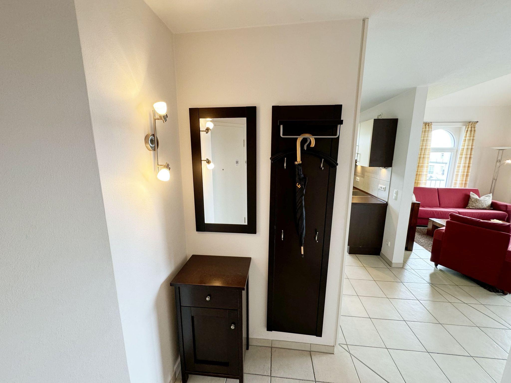 Das Ferienapartment Wohnung 10 selbst, dass Sie bequem über einen Aufzug erreichen, befindet sich im zweiten Obergeschoss der Dependance. Vom großzügigen Balkon der Wohnung haben Sie einen wunderschönen Panoramablick über das Ostseebad.