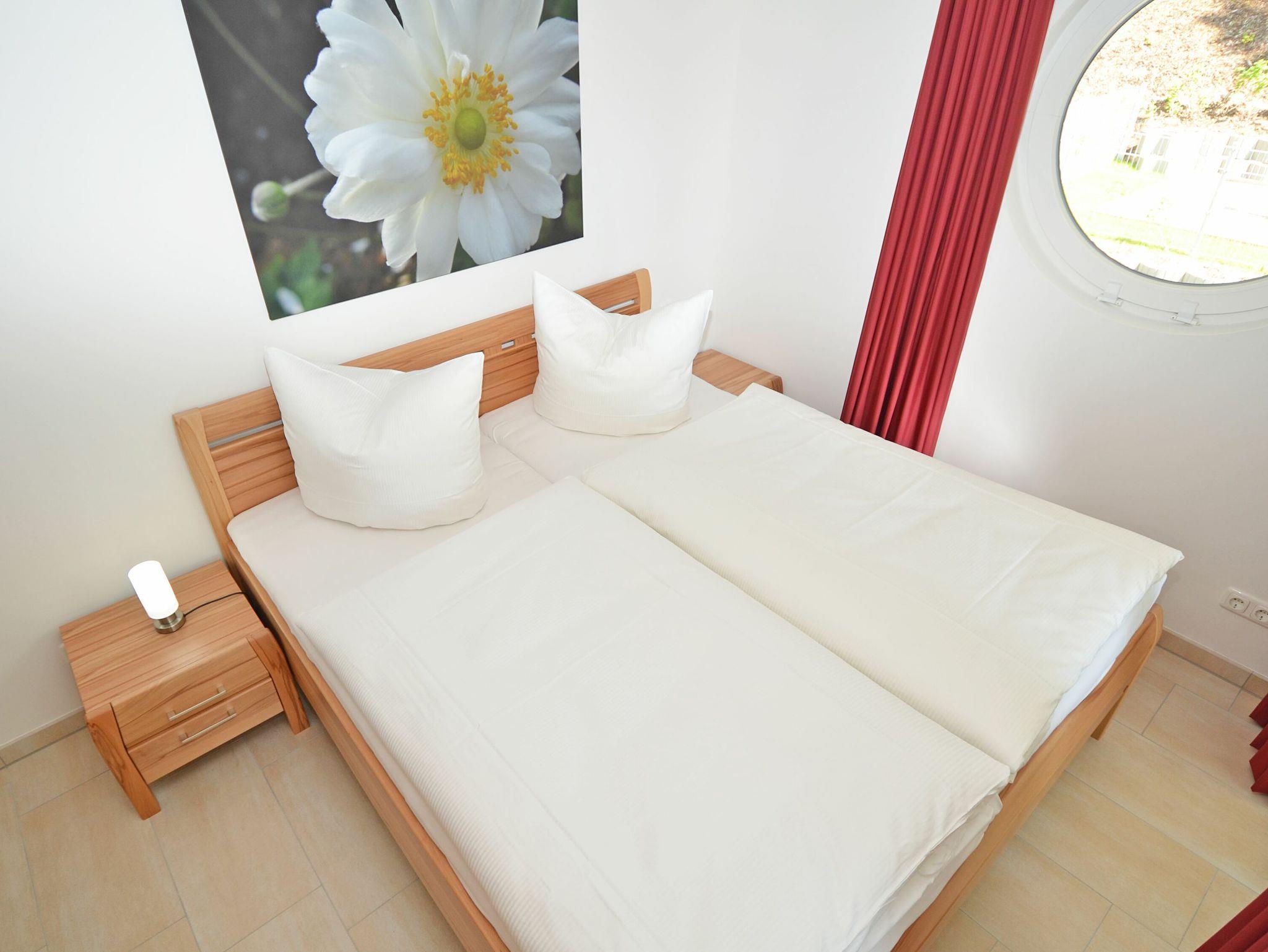 Die beiden Schlafzimmer verfügen je über ein gemütliches Doppelbett (1,80x2,00m) in Komforthöhe sowie ausreichend Stauraum für Ihre Garderobe. Eines der Schlafzimmer verfügt zusätzlich noch über einen Fernseher. Beide Schlafzimmer sind mit Verdunklungsvorhängen ausgestattet. Von einem der Schlafzimmer haben Sie zusätzlich direkten Zugang zu einer der beiden Dachterrassen.