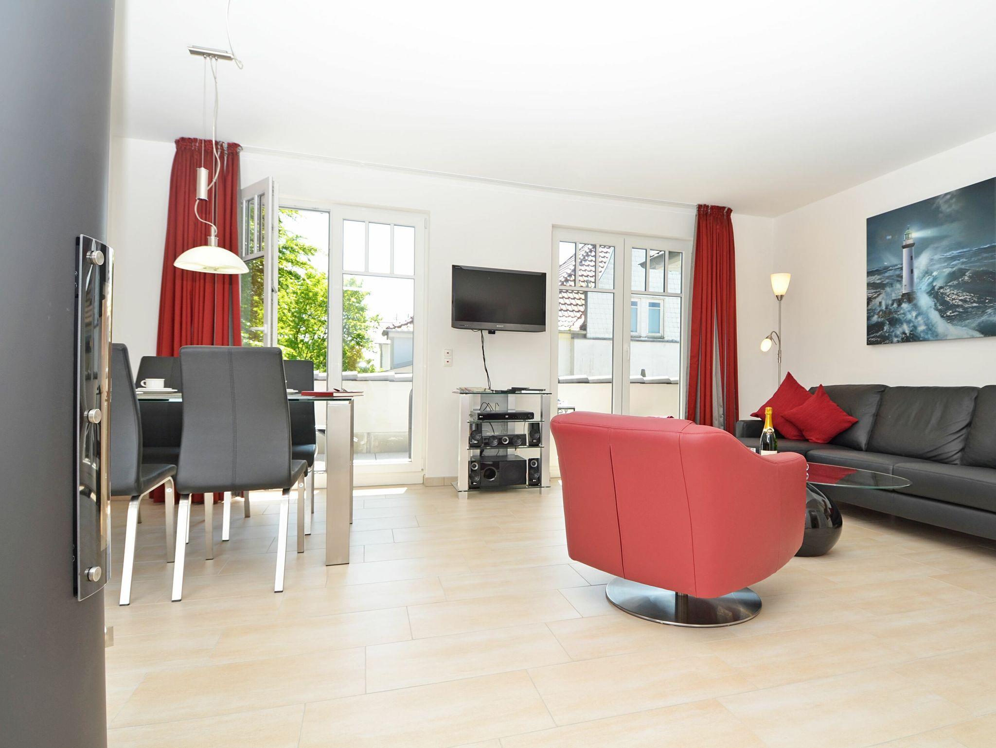 Die Villa Rosa Wohnung 18 in Sellin bietet 84 m² Wohnfläche mit zwei Dachterrassen und modernem Komfort.