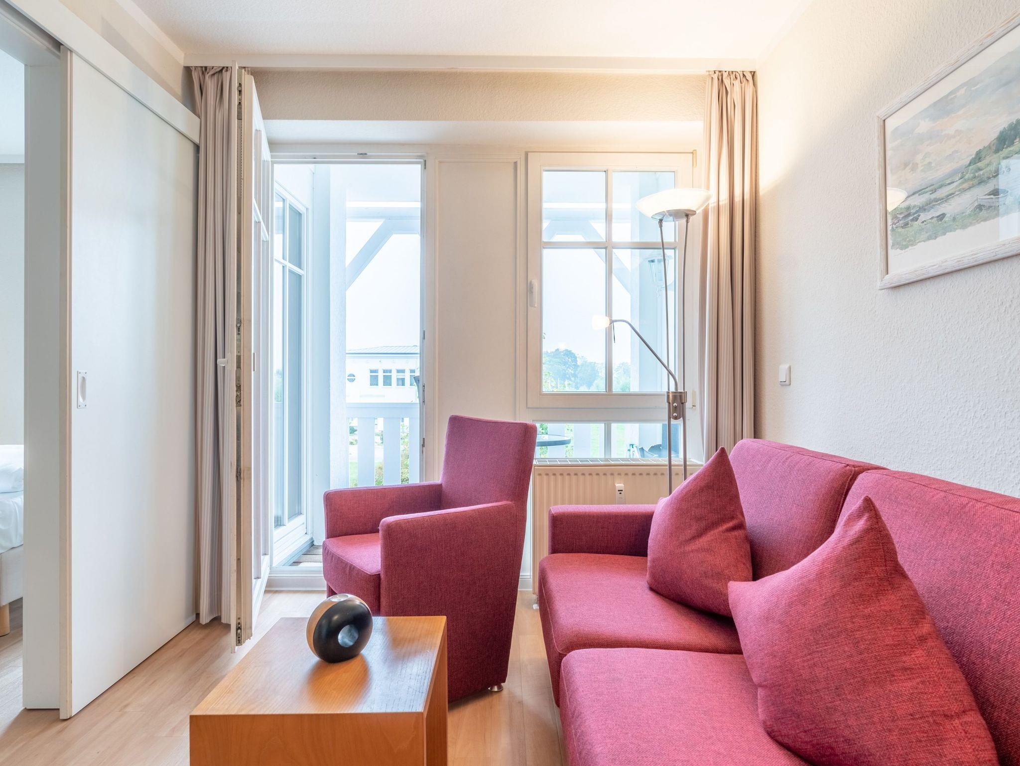 Gemütliche Ferienwohnung im Seepark Sellin mit Balkon, WLAN und kostenfreiem Schwimmbadzugang.