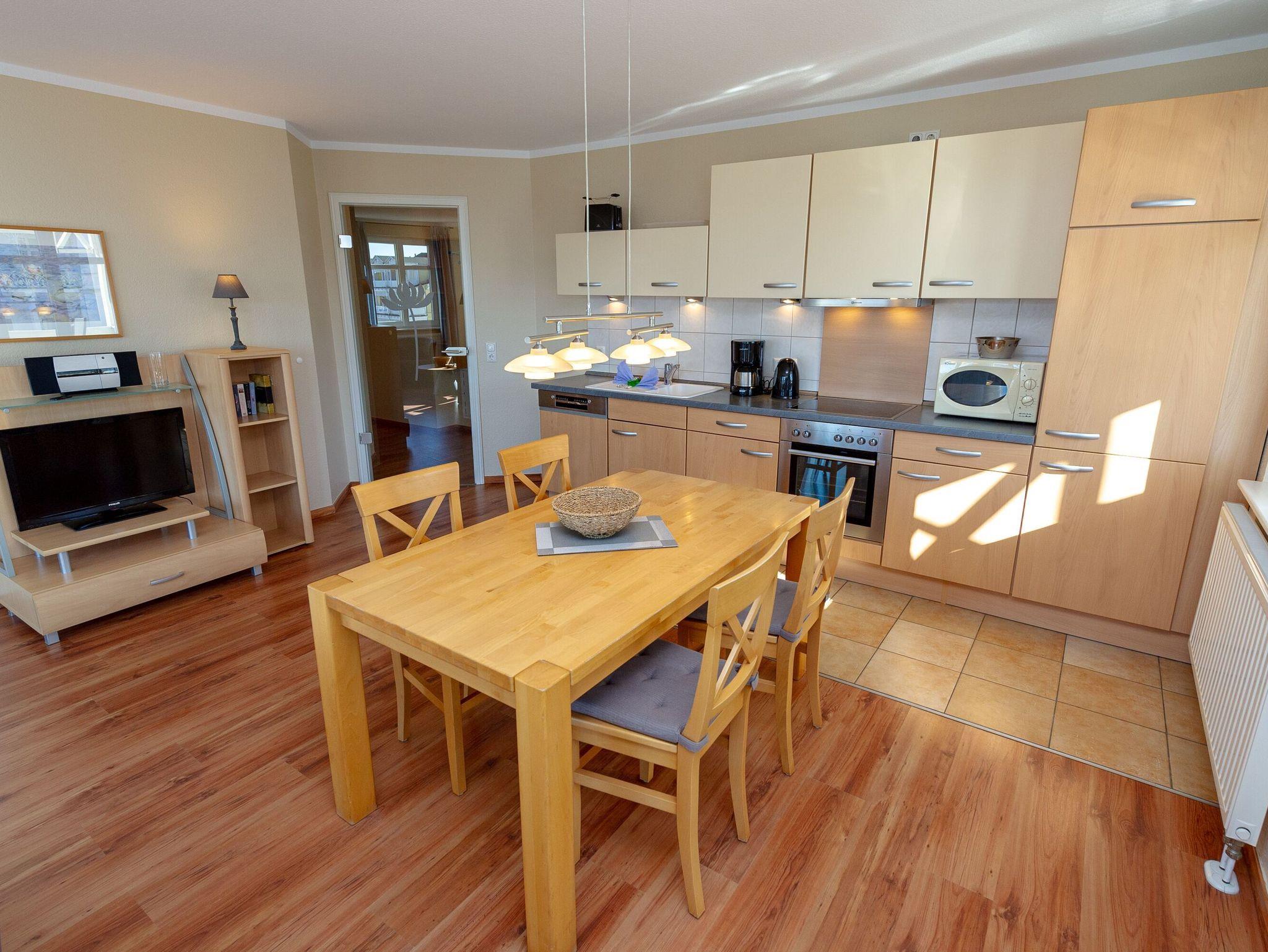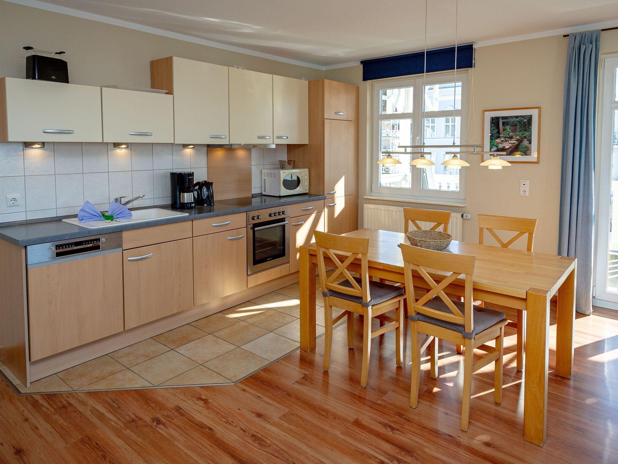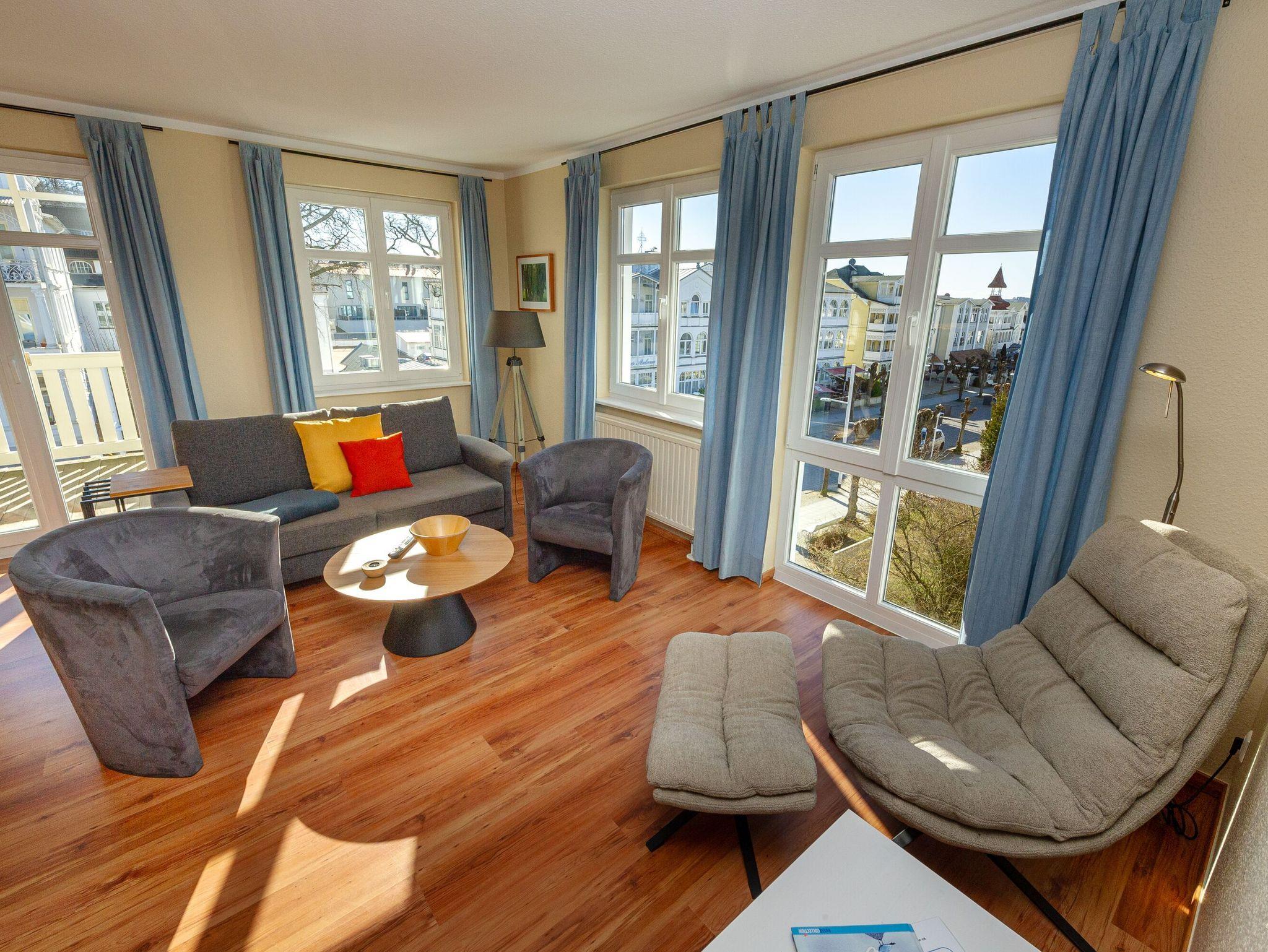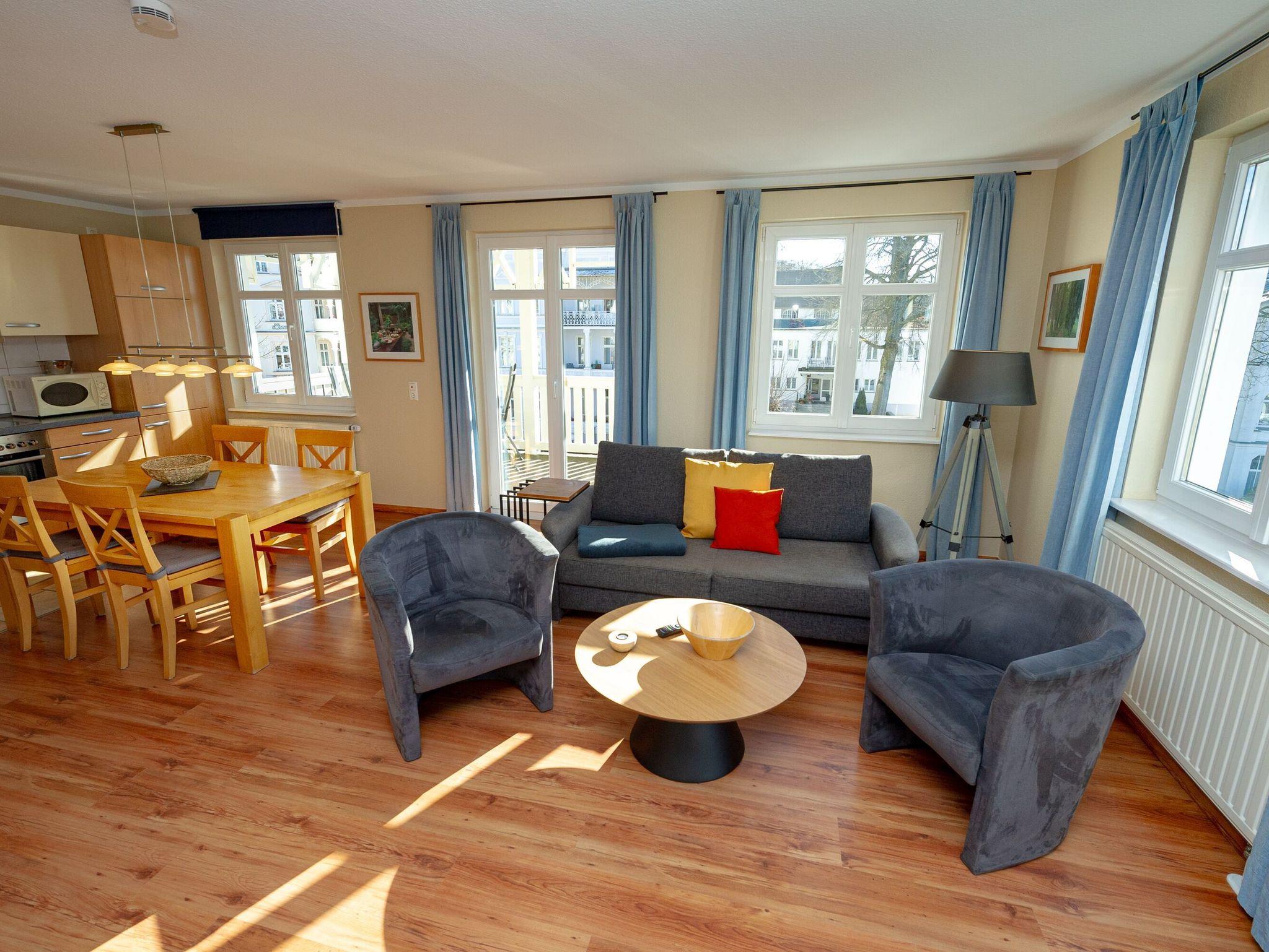 Modernes 3-Raum-Appartement in Sellin mit großem Balkon, WLAN und kostenfreiem Parkplatz, ideal für bis zu 6 Personen.