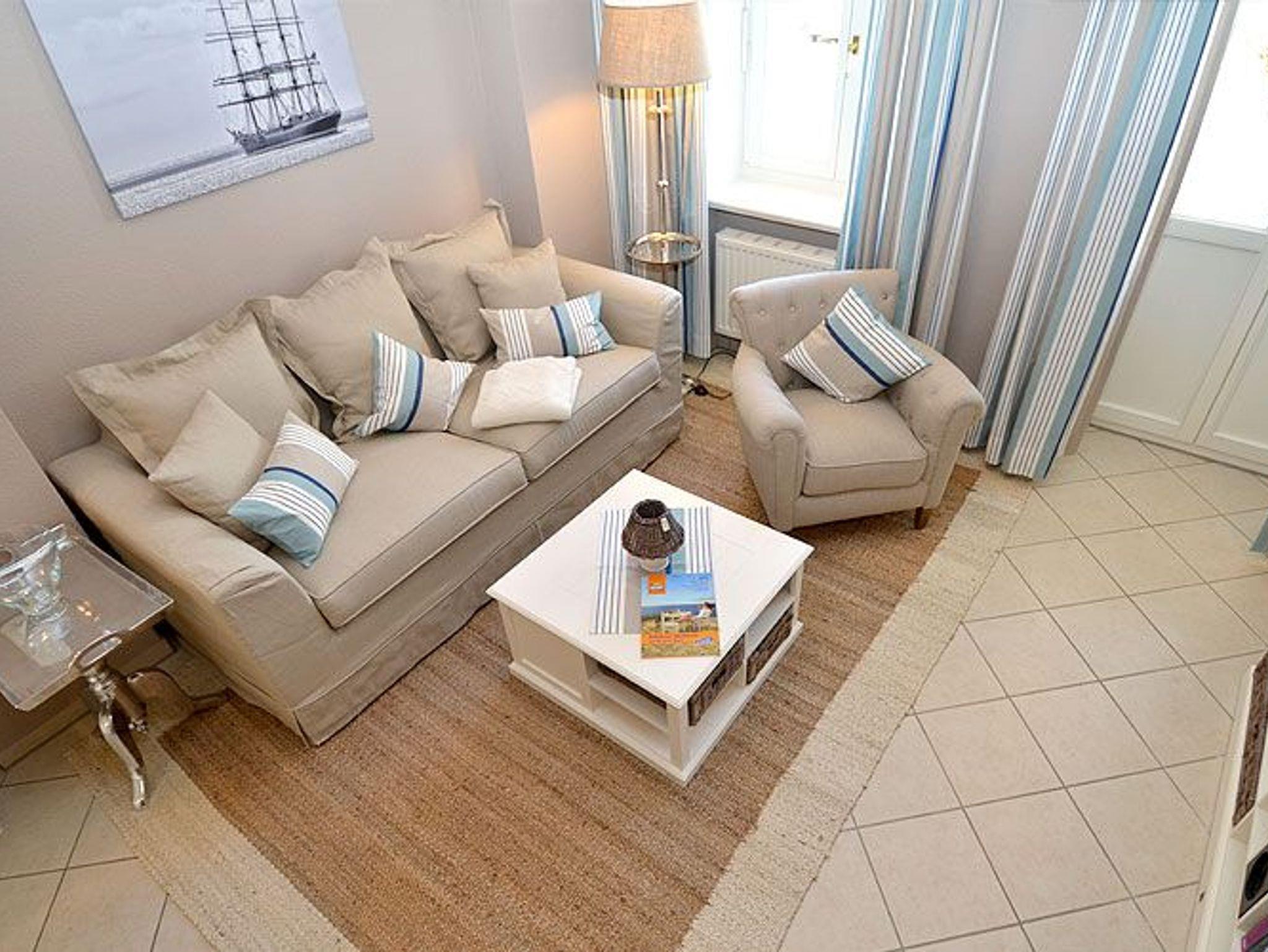 Dieses ca. 40 m² große, stilvoll eingerichtete 2-Raum-Appartement begrüßt Sie im 1. Obergeschoss und hat einen 12 m² möblierten Balkon nach Norden. Wunderschöne Landhausmöbel, ausgesuchte Stoffe und warme Erdtöne schaffen zusammen mit leicht maritimen Akzenten ein ganz einzigartiges Wohlfühlambiente. Die gesamte Nichtraucherwohnung ist gefliest bzw. mit Designerboden in Vintage-Oak-Optik versehen.